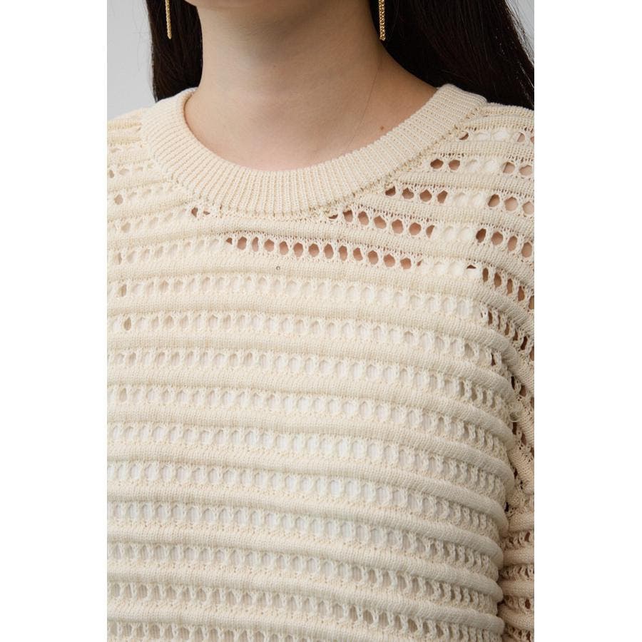 立体感のあるタック編みとメッシュ編みの組み合わせがポイントのニットです。