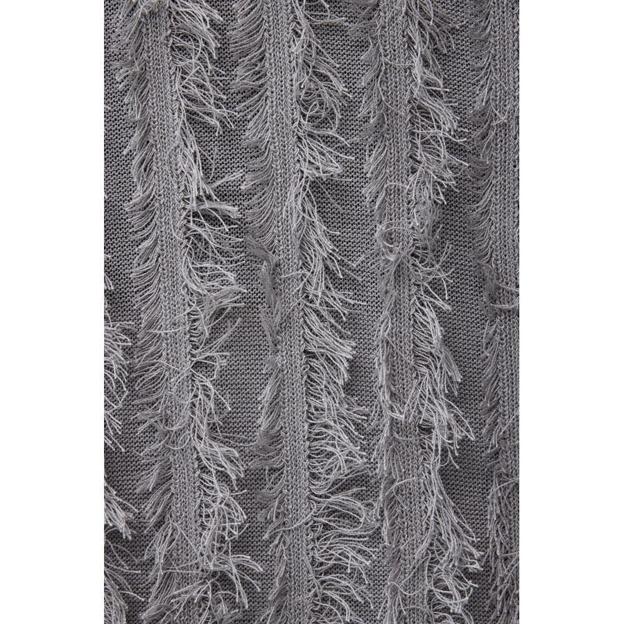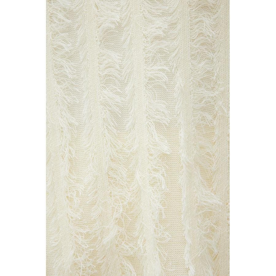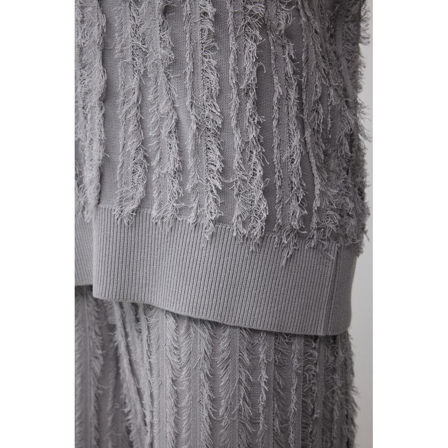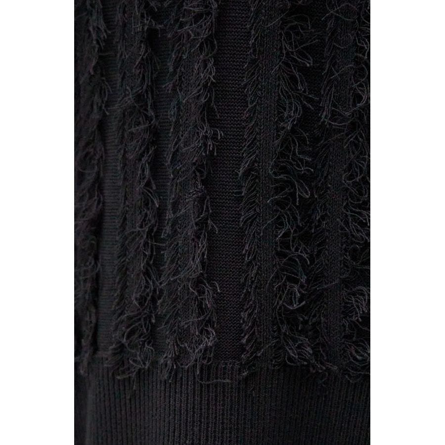 糸を渡らせた箇所をハンドでカットすることでフリンジを作成した手の込んだニットです。