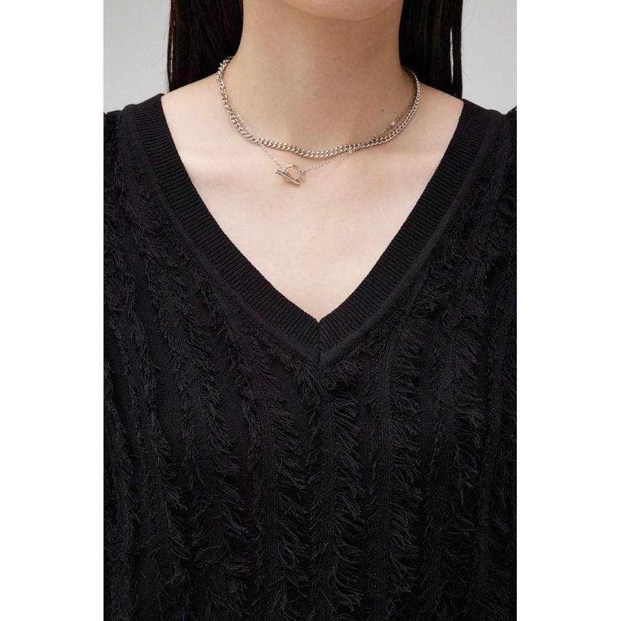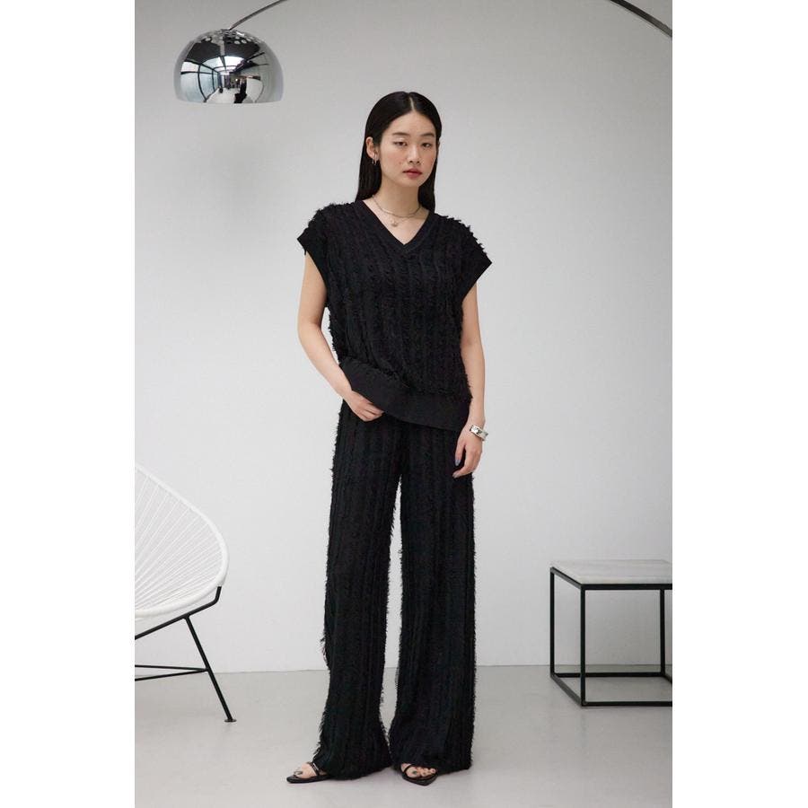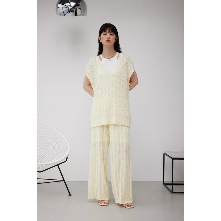■商品(デザイン)ポイント:シアー感のあるフリンジデザインがポイントのニットベストです。