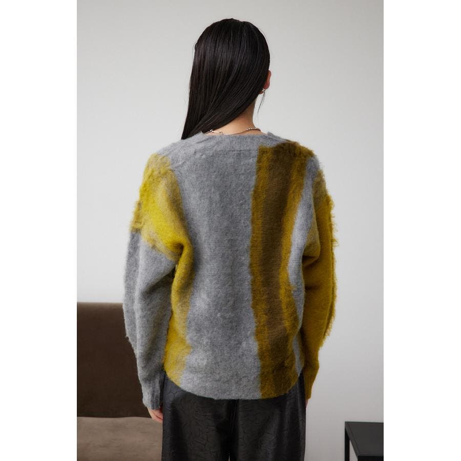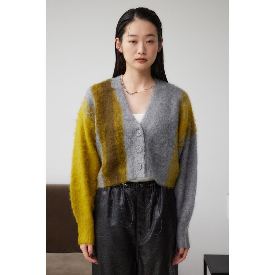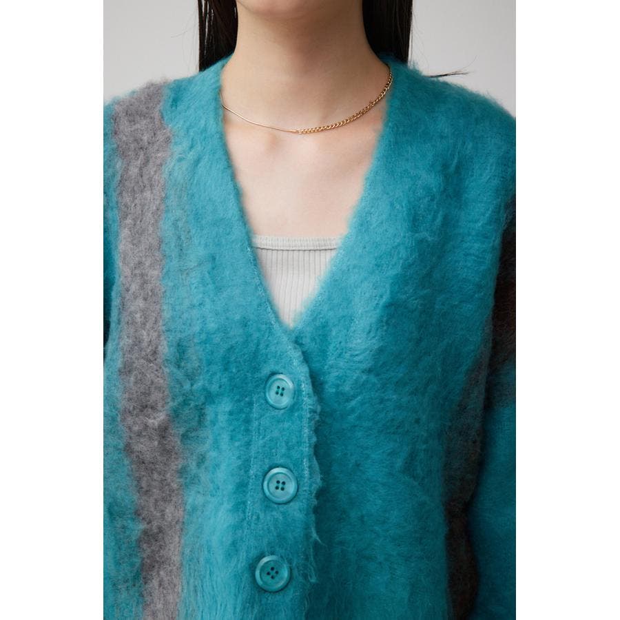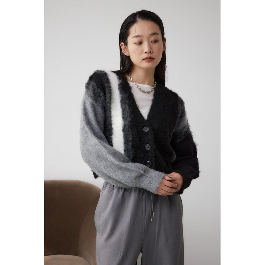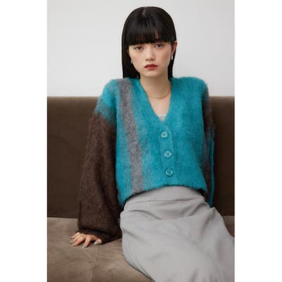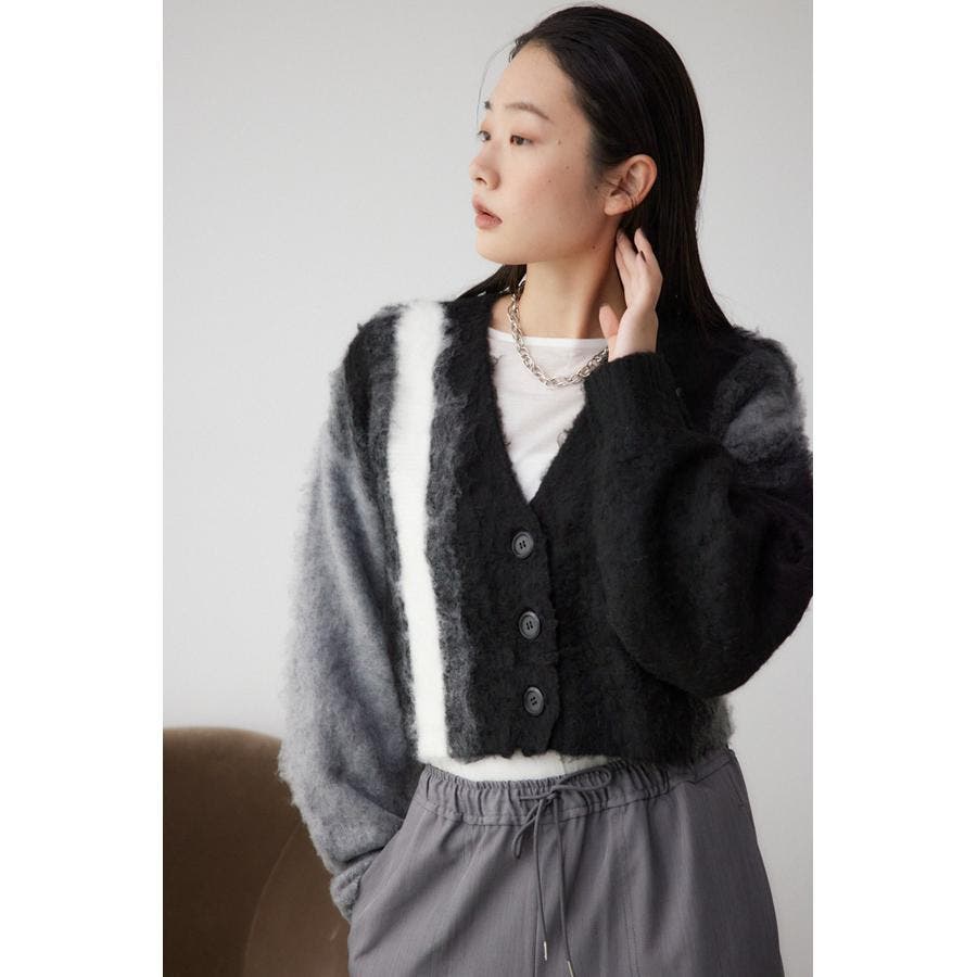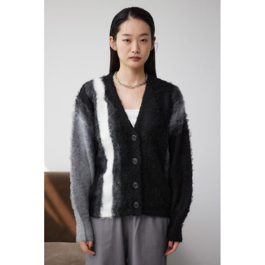 長めの毛吹き感がトレンドライクな印象に仕上げてくれるニットカーディガンです。