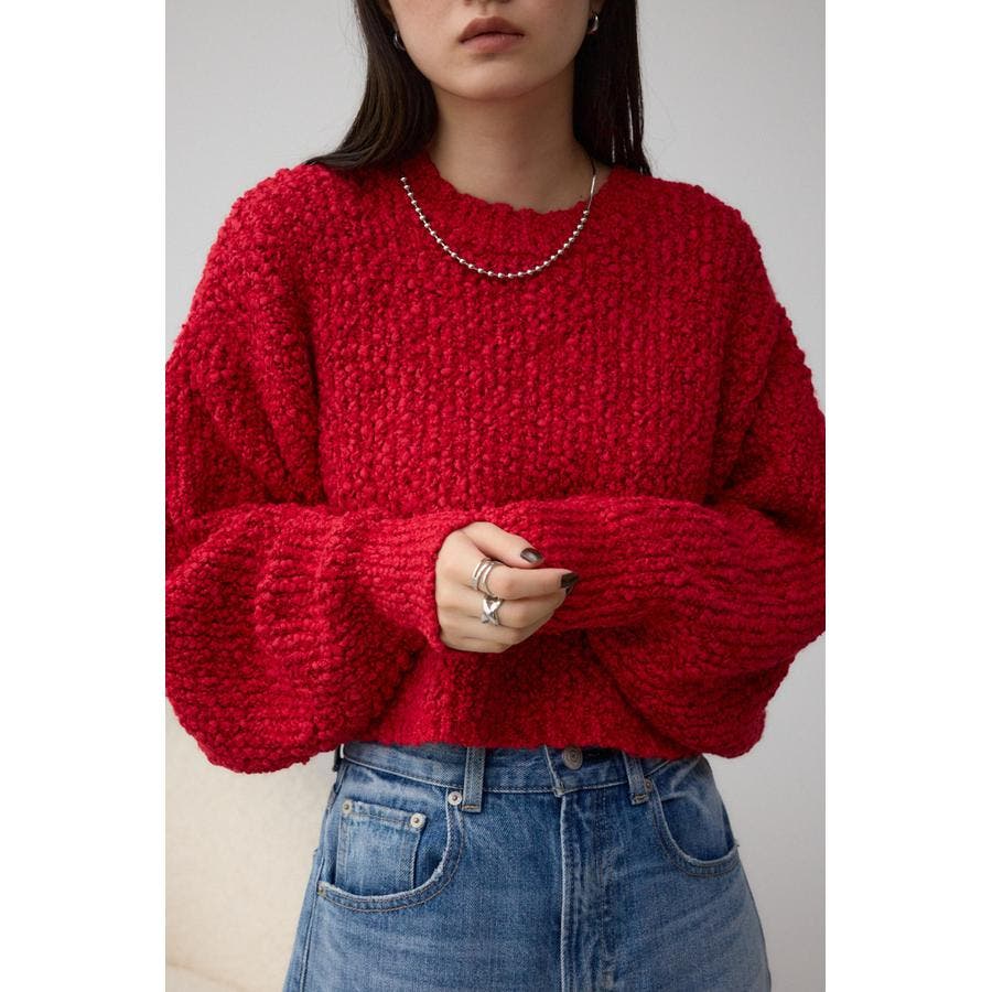 しなやかなモール糸の凹凸感がポイントのブークレニットです。