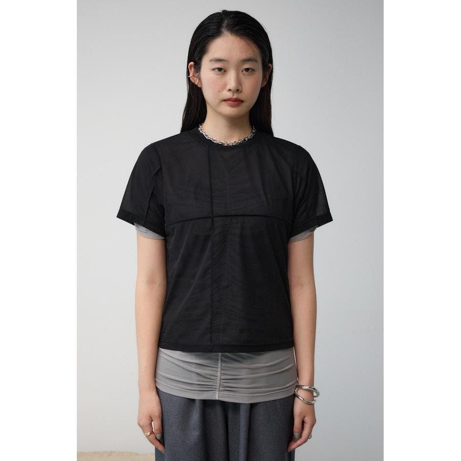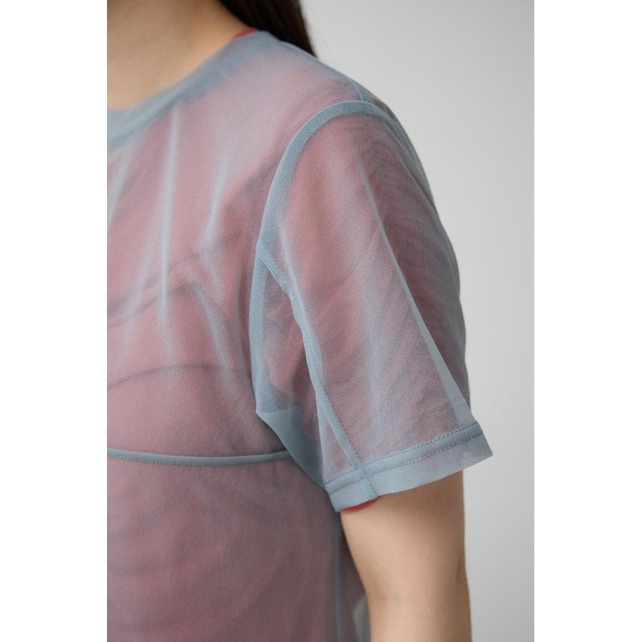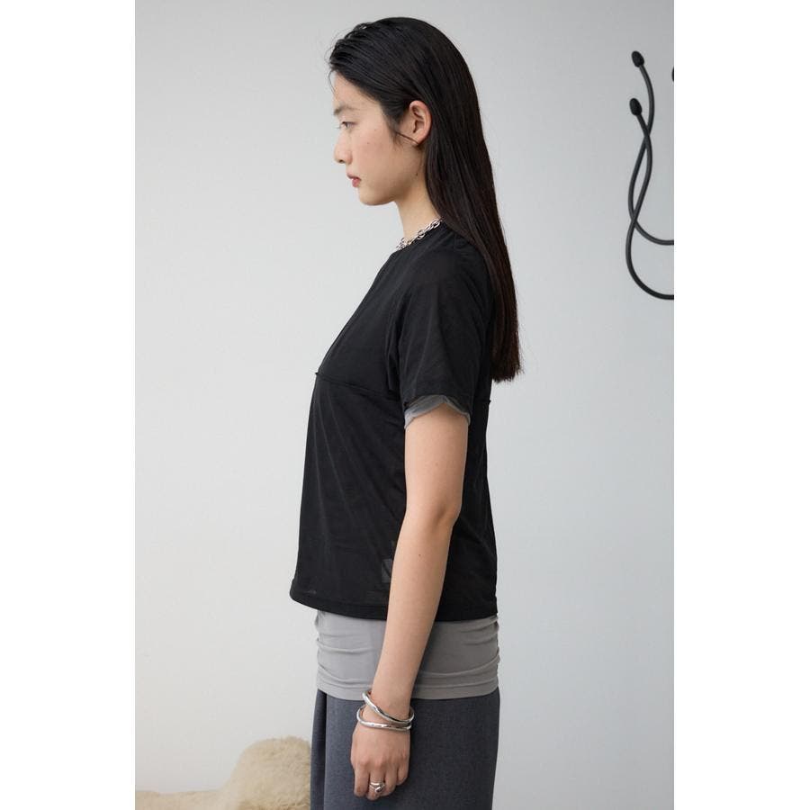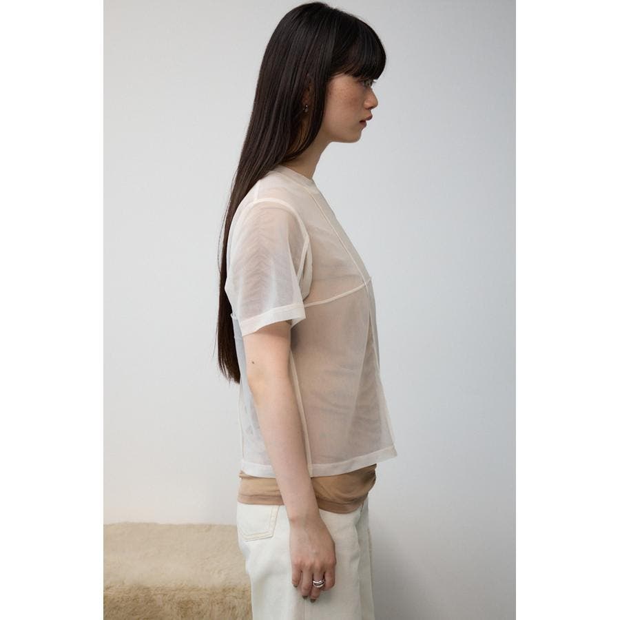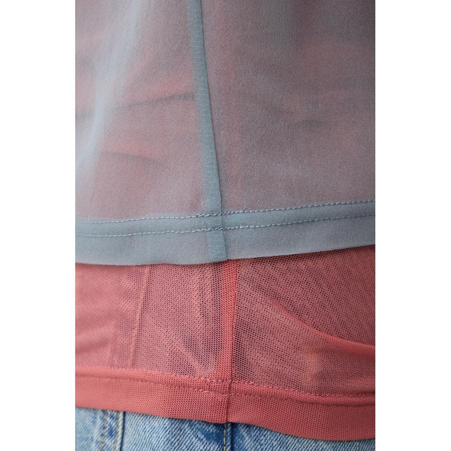 透け感のある素材を2枚重ね、独特な奥行を演出したレイヤードトップス。