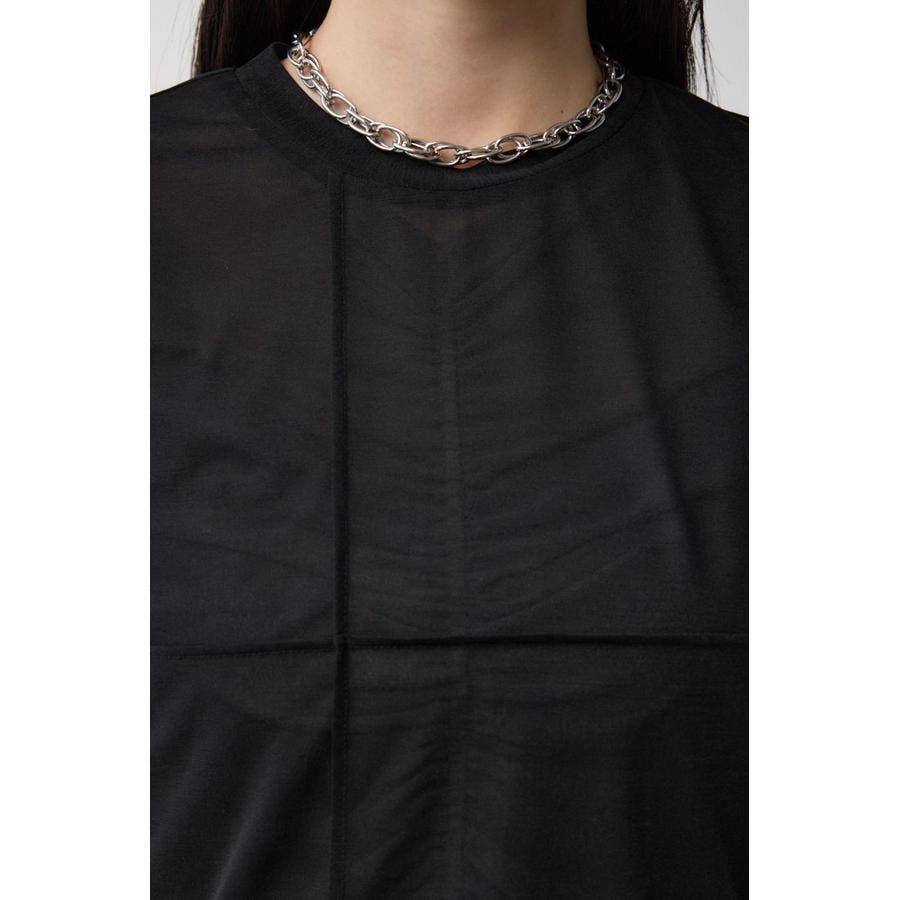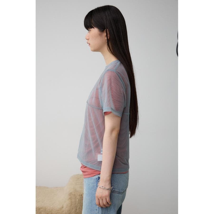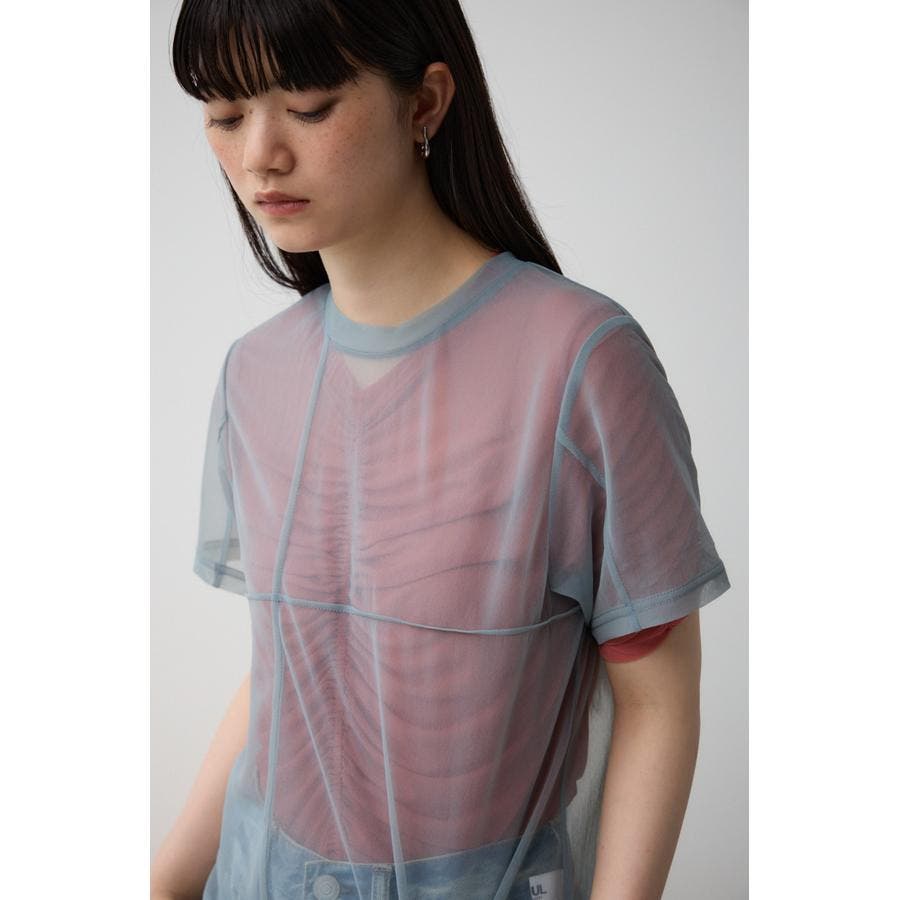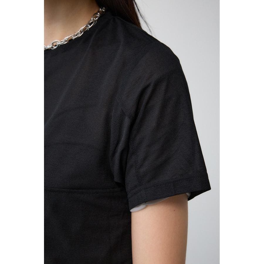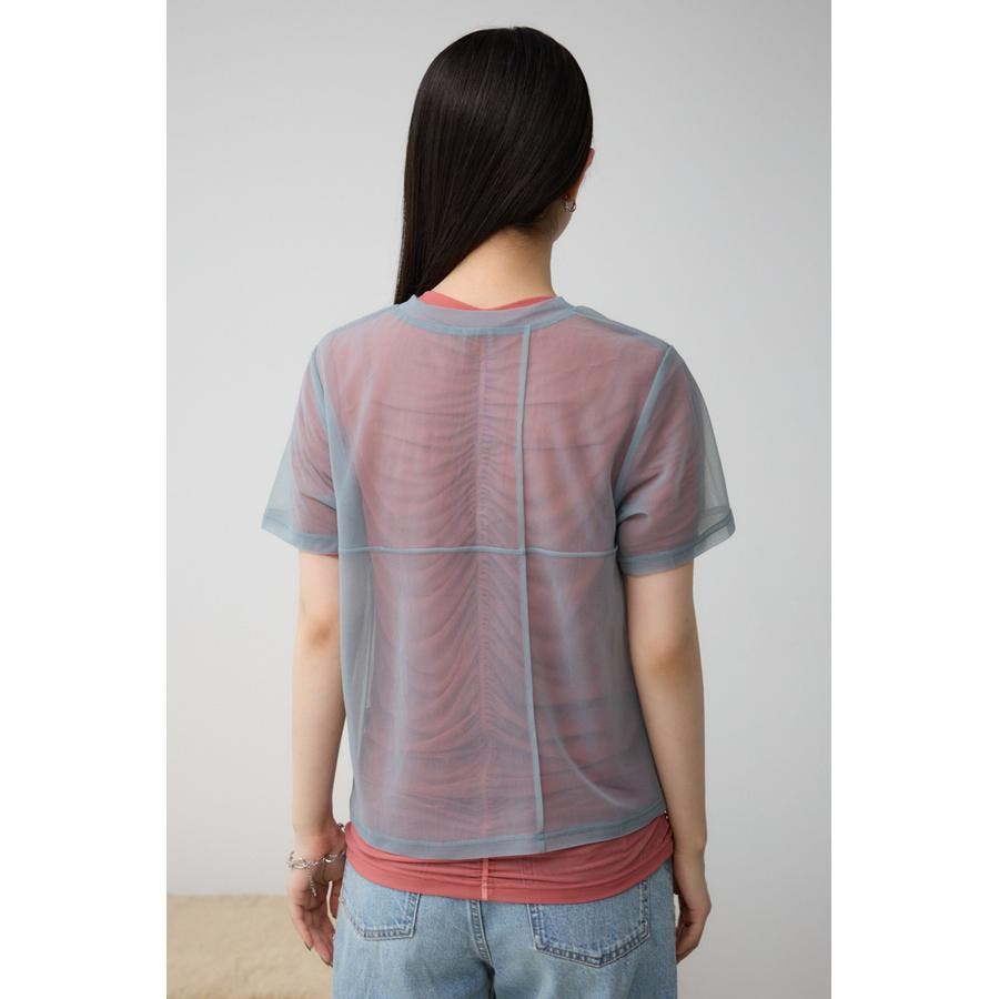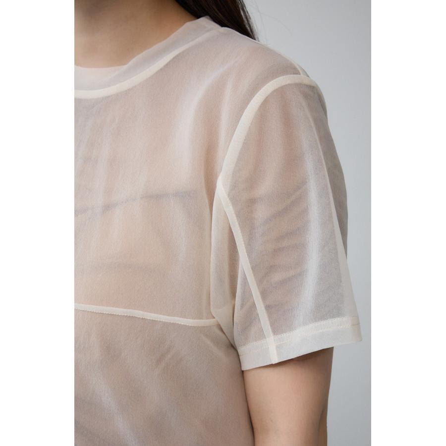 透け感のある素材を2枚重ね、独特な奥行を演出したレイヤードトップス。
