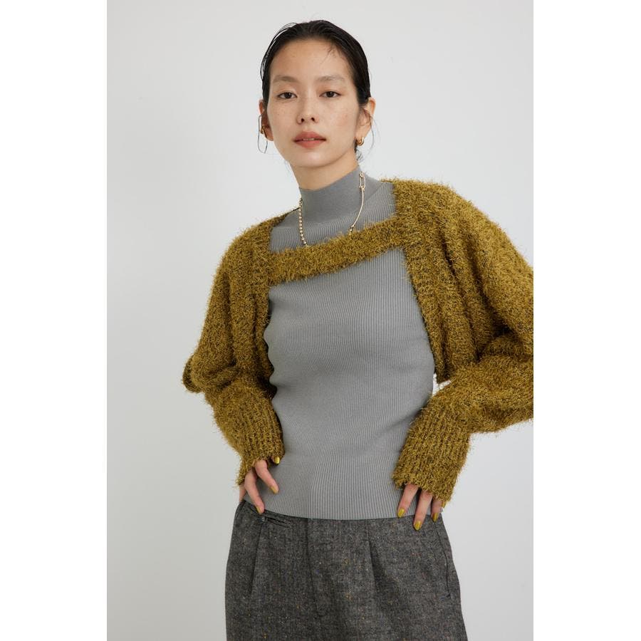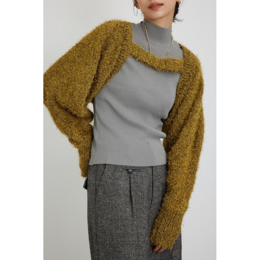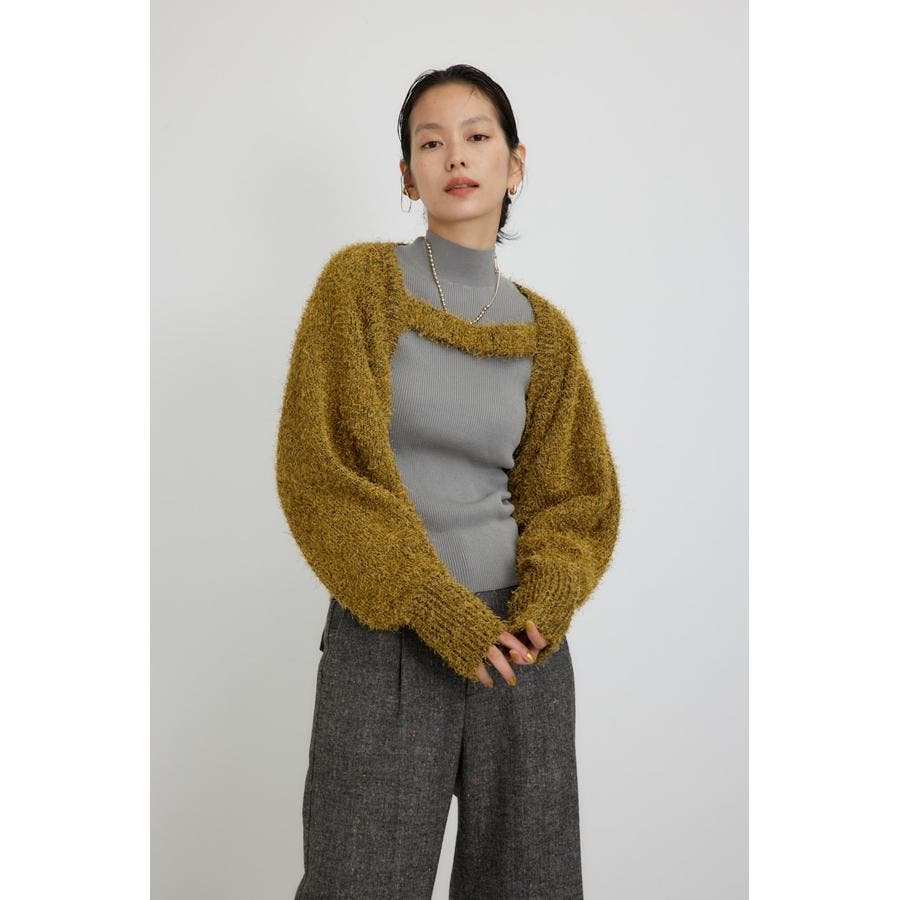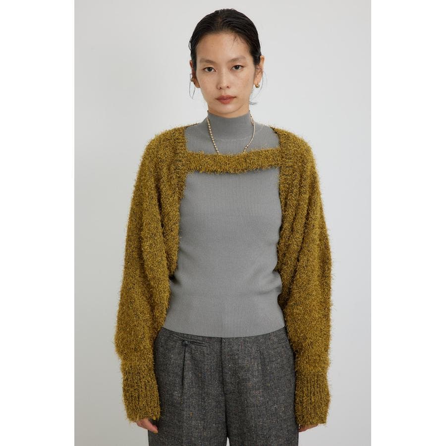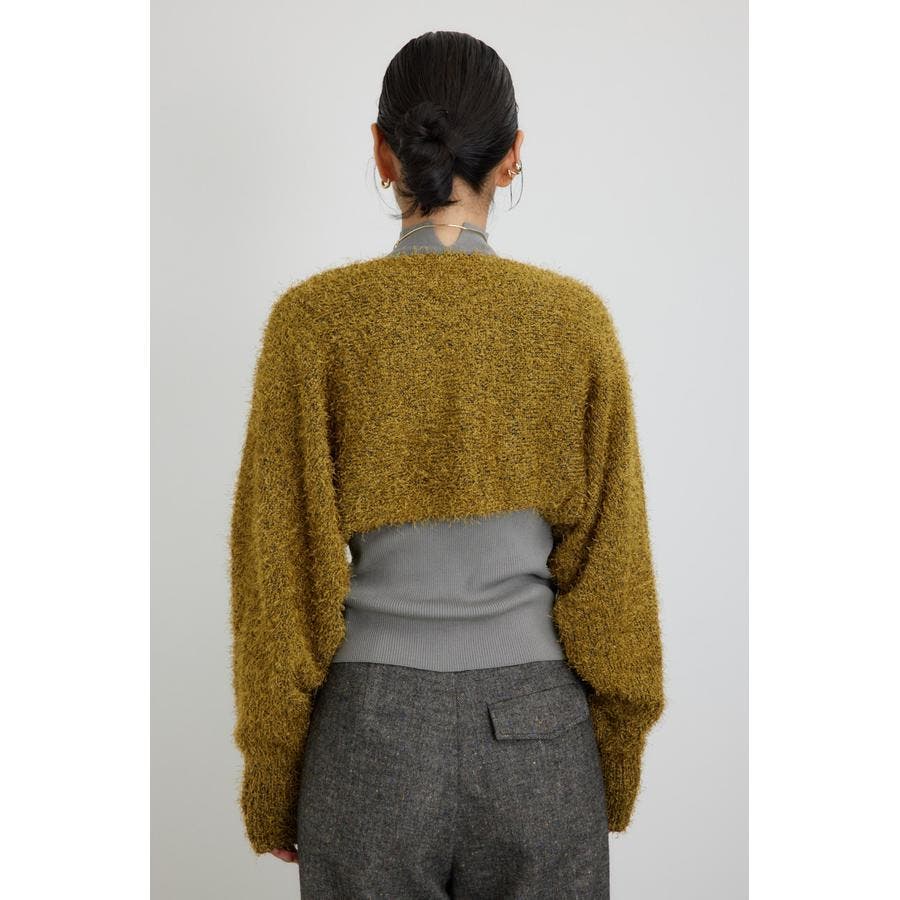 ■素 材:アウターのボレロは、ポリエステルのモール糸とシャギーヤーンを引き揃えてざっくりとローゲージで編んだ毛足のある素材感。