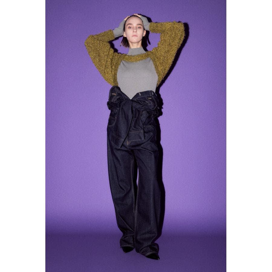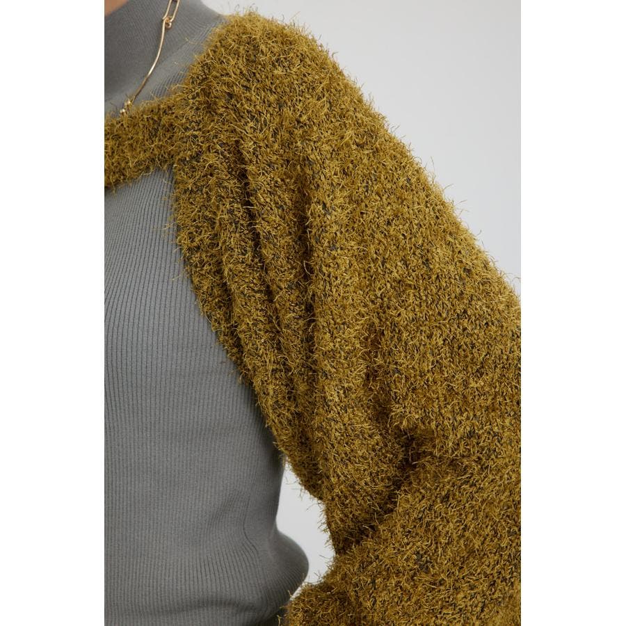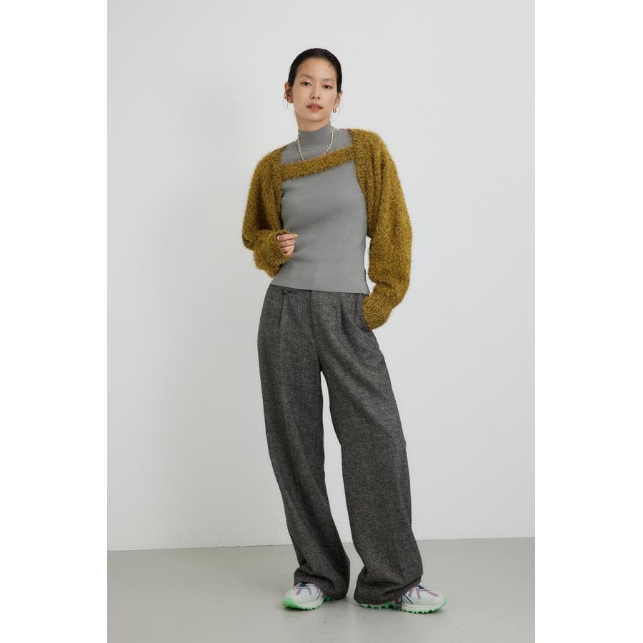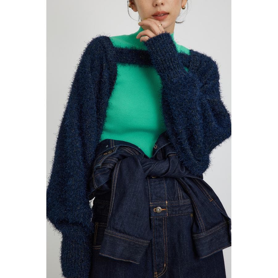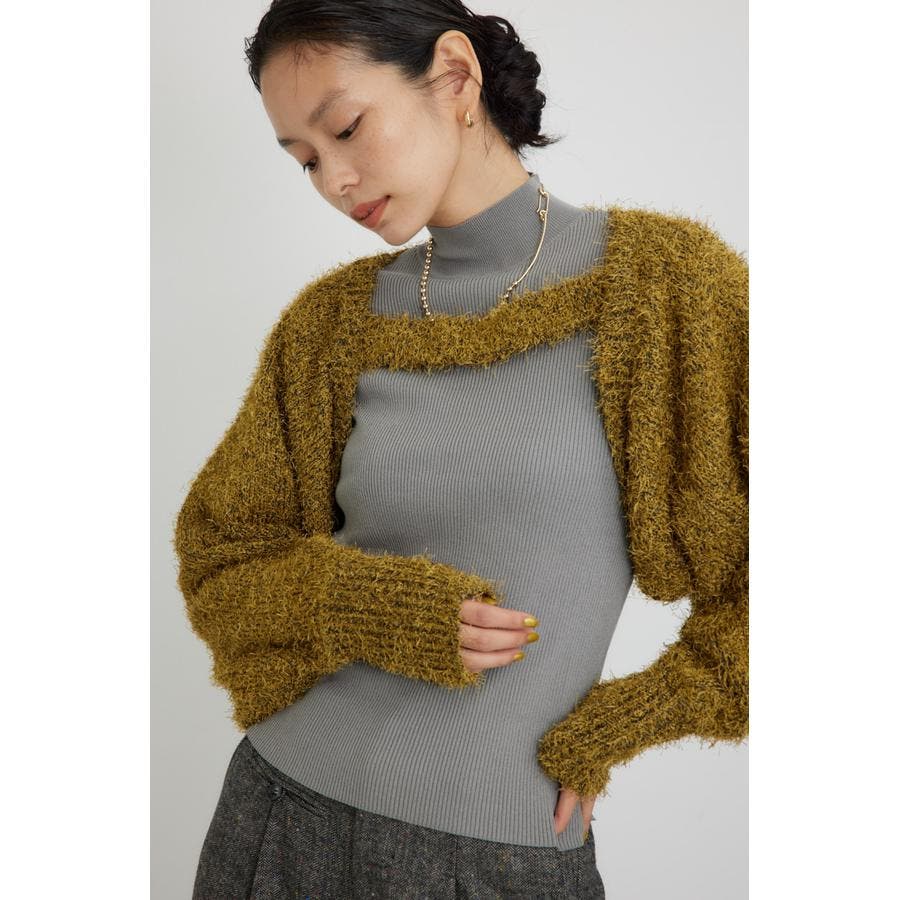 ■素 材:アウターのボレロは、ポリエステルのモール糸とシャギーヤーンを引き揃えてざっくりとローゲージで編んだ毛足のある素材感。
