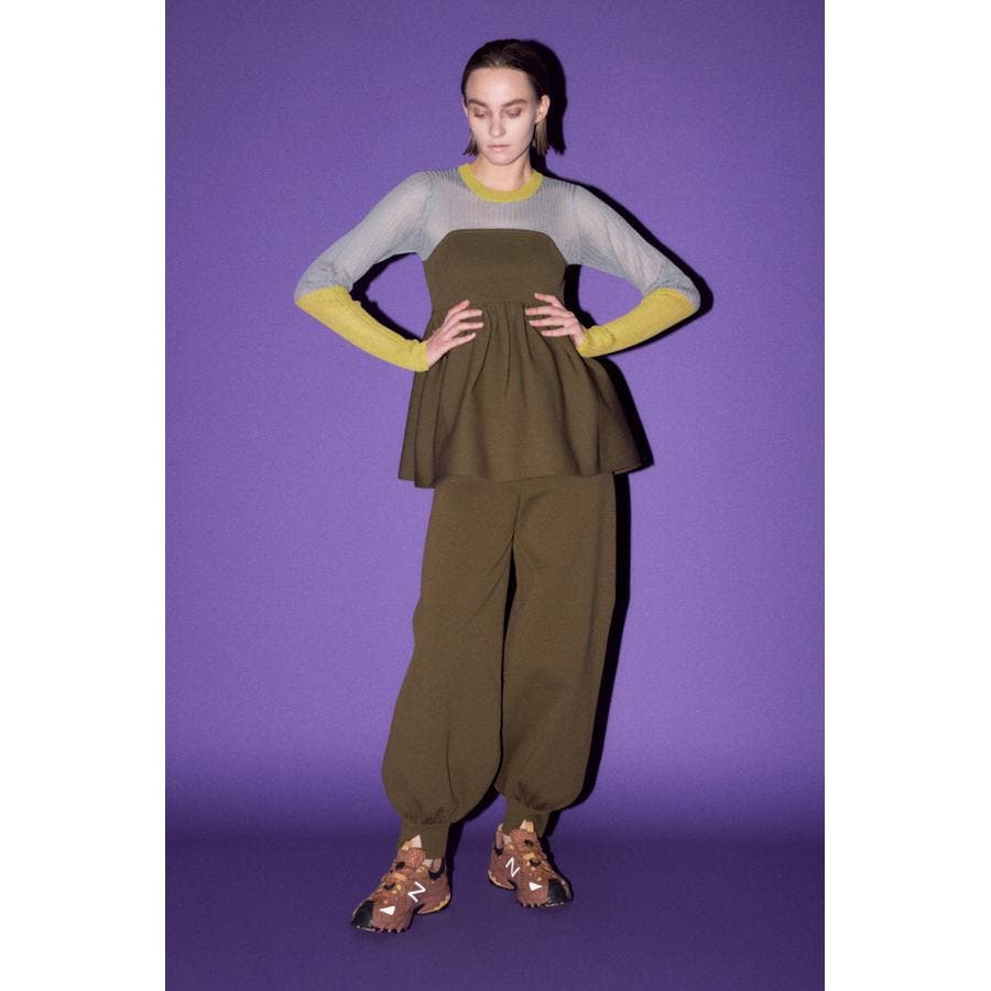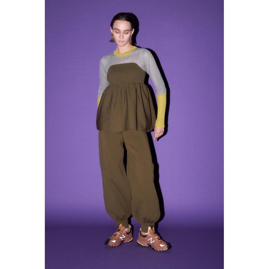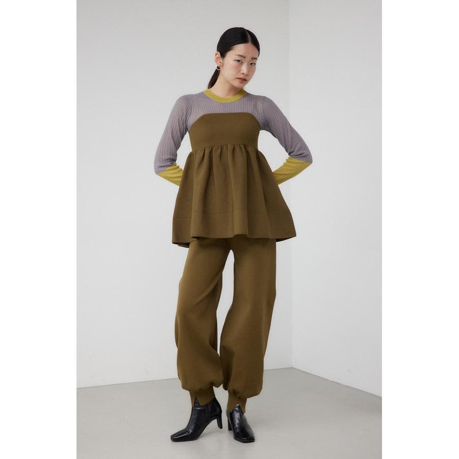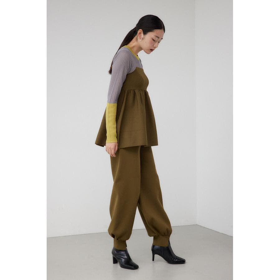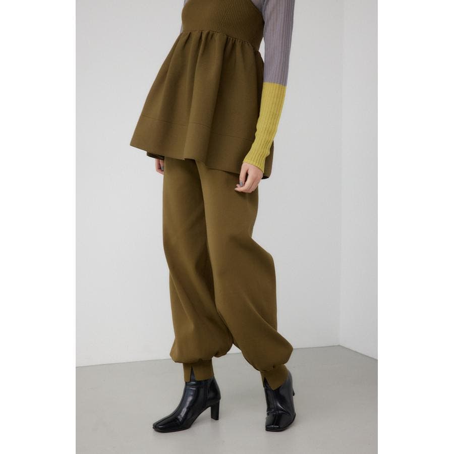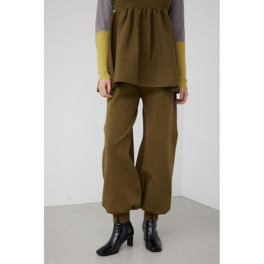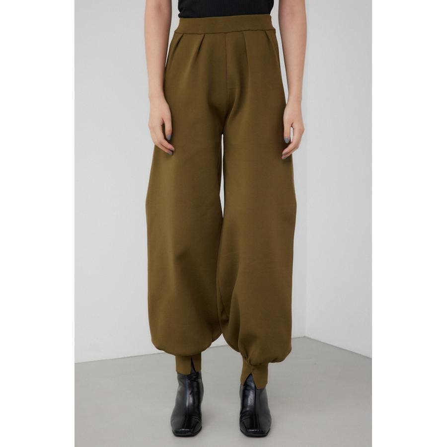 ハイツイストのポリエステル糸を使用した、程よいボリューム感がポイントのアラジンシルエットのニットパンツです。