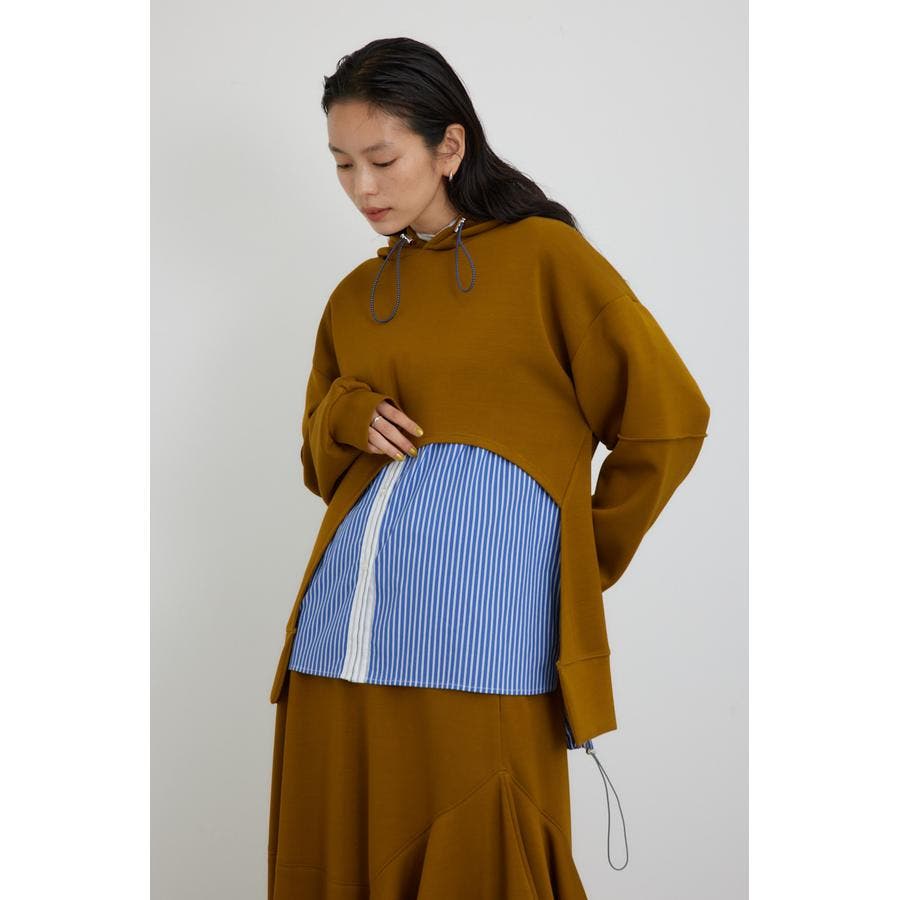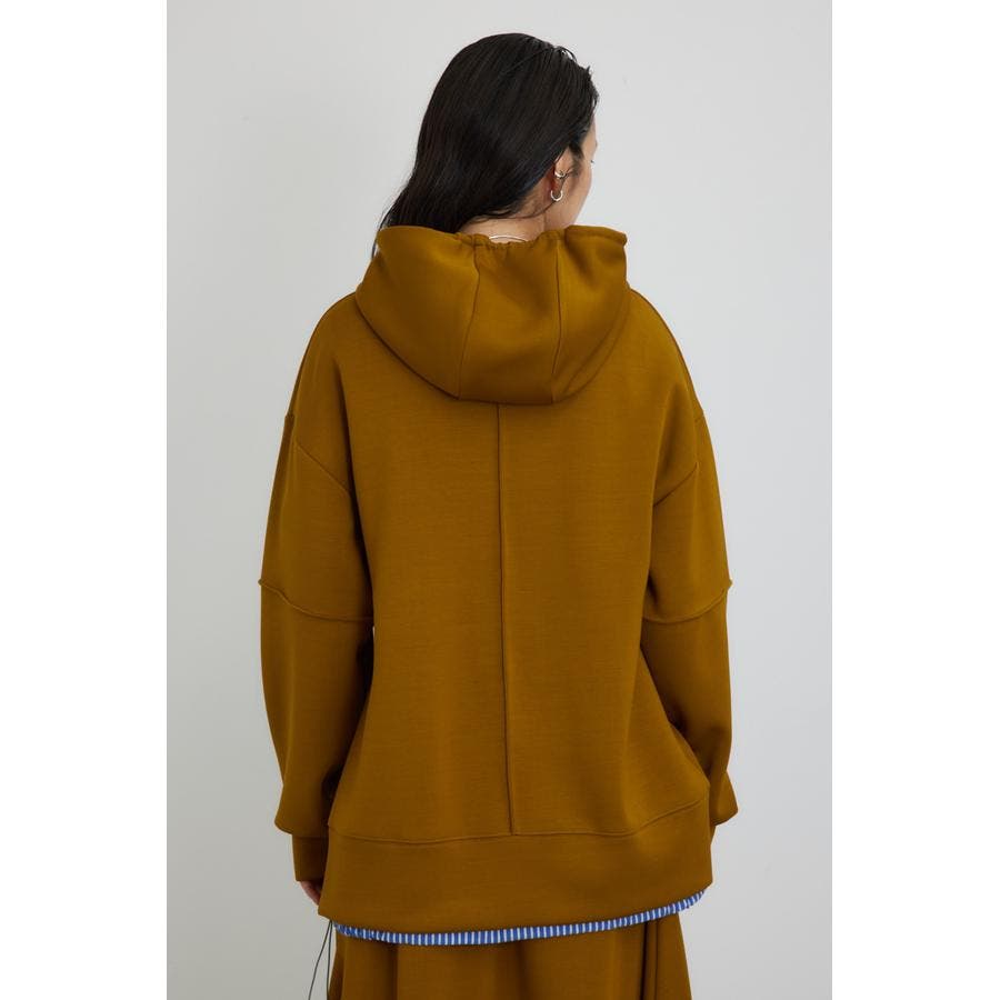 しなやかで綺麗目なダンボール素材を使用したヘムカットがポイントのフーディーです。