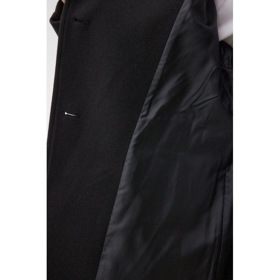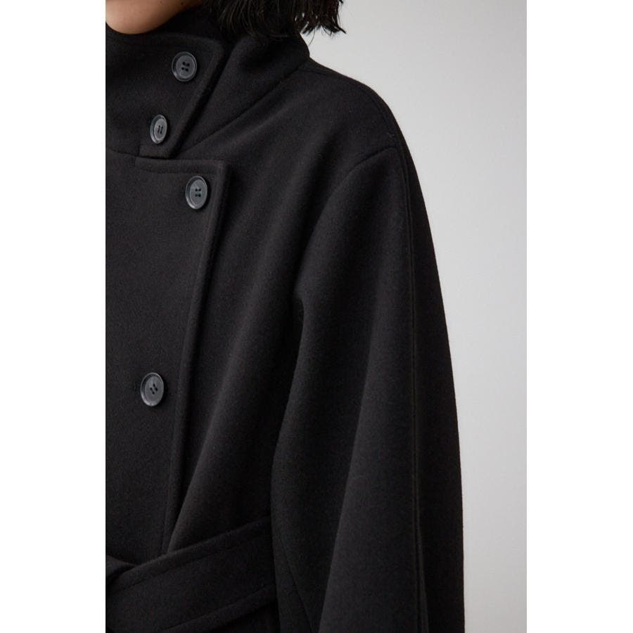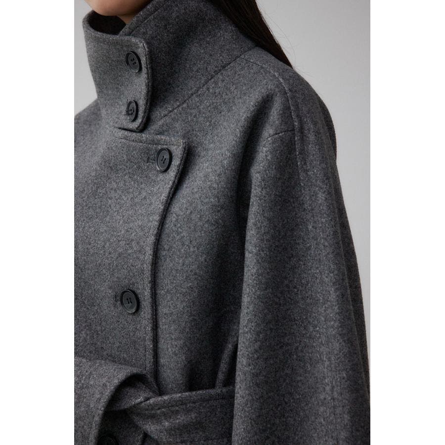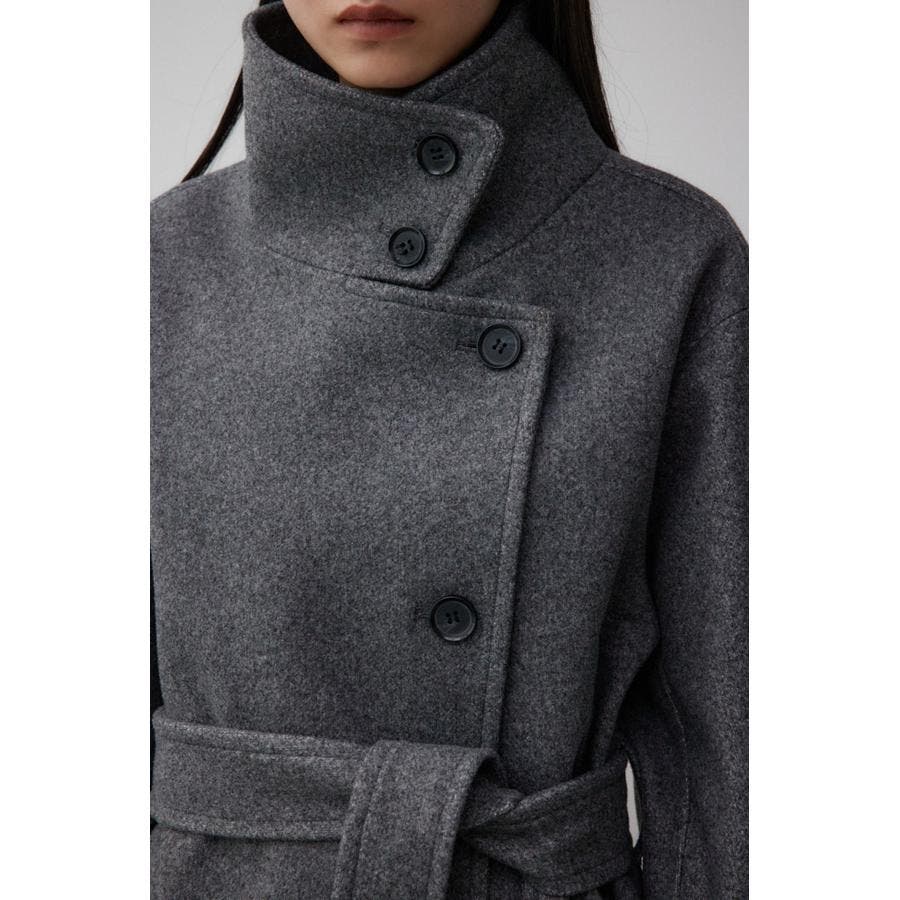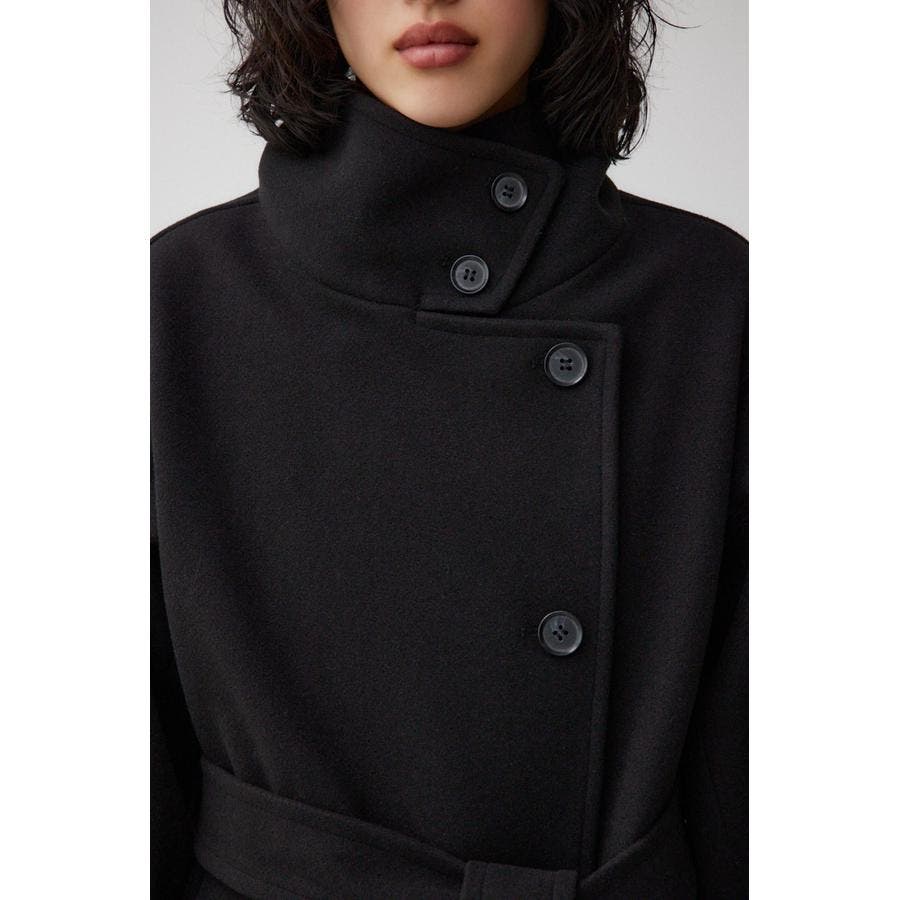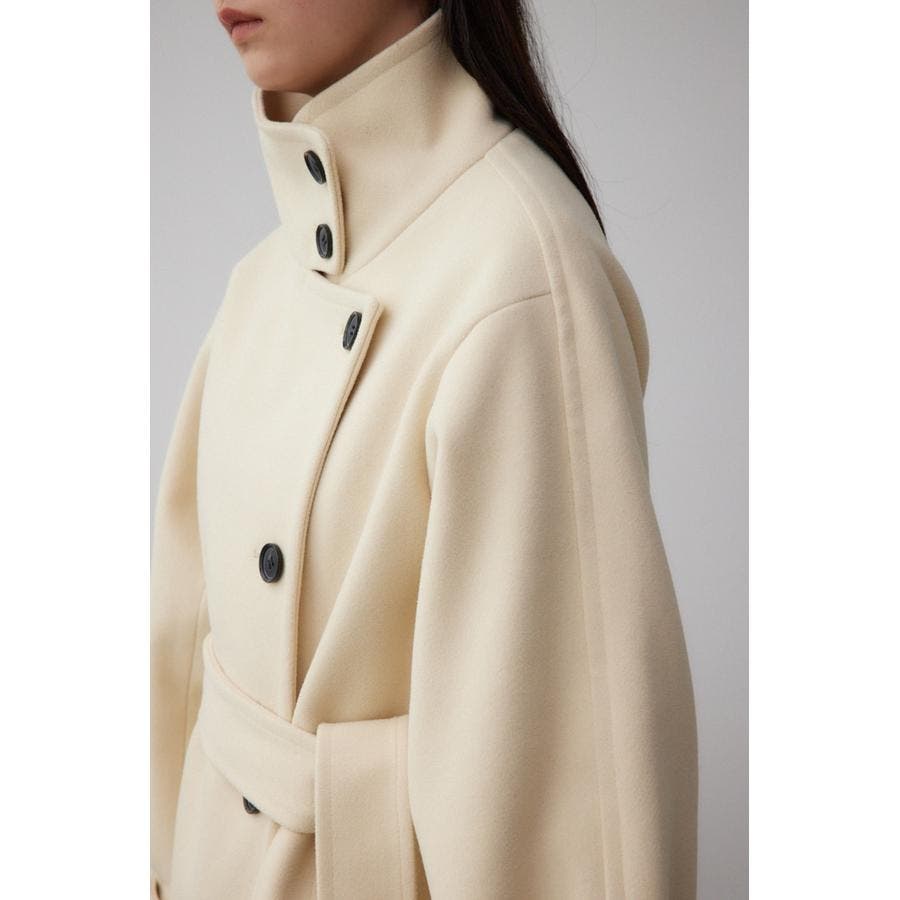 前をしめて襟を立たせると首もとをあたたかく包んでくれるスタンドカラーコート。