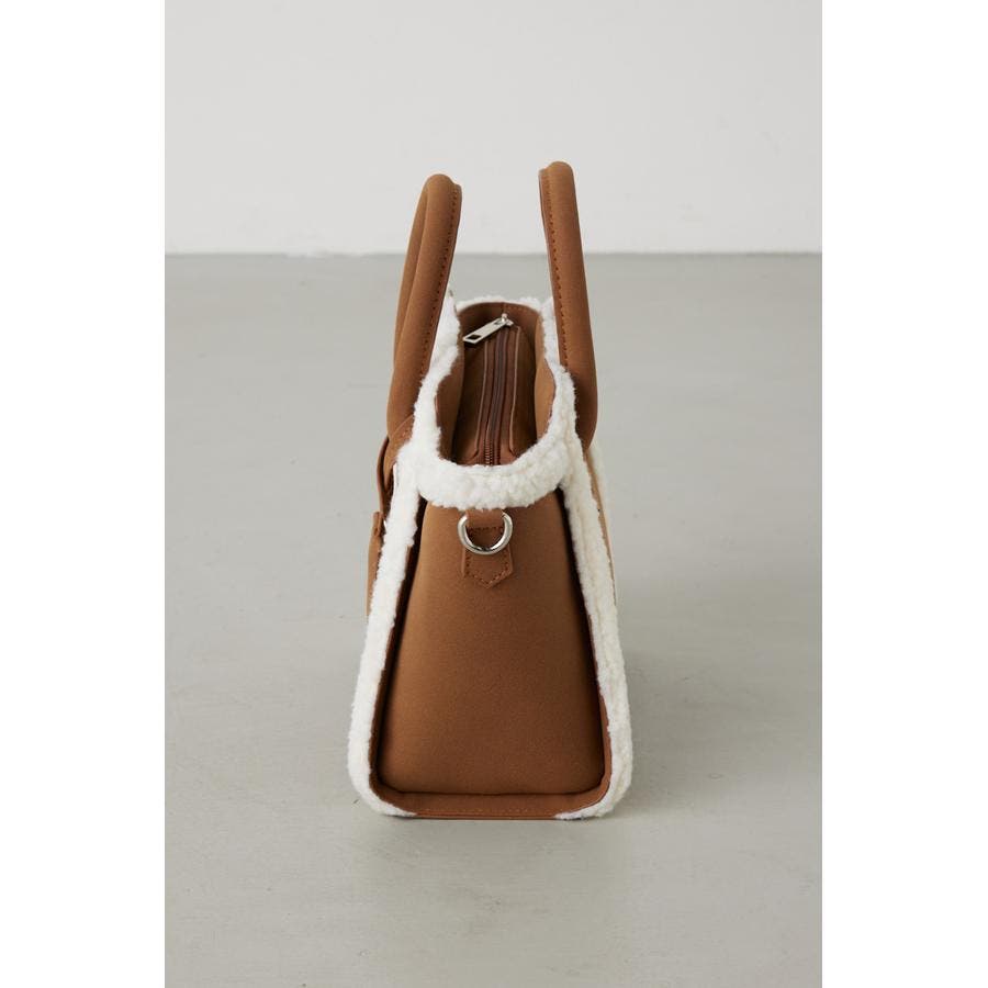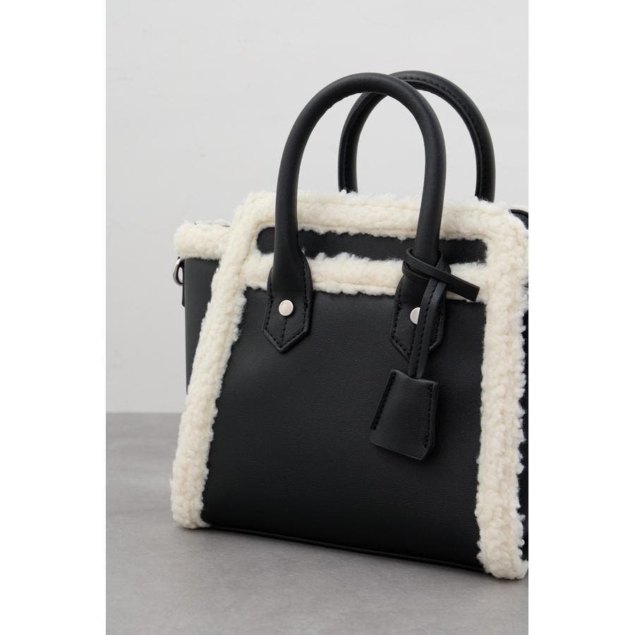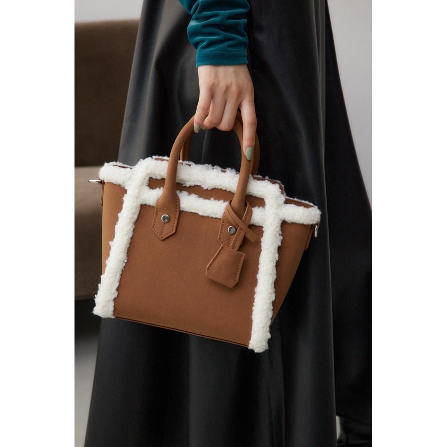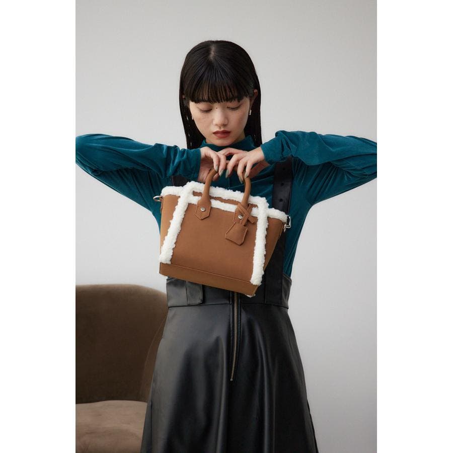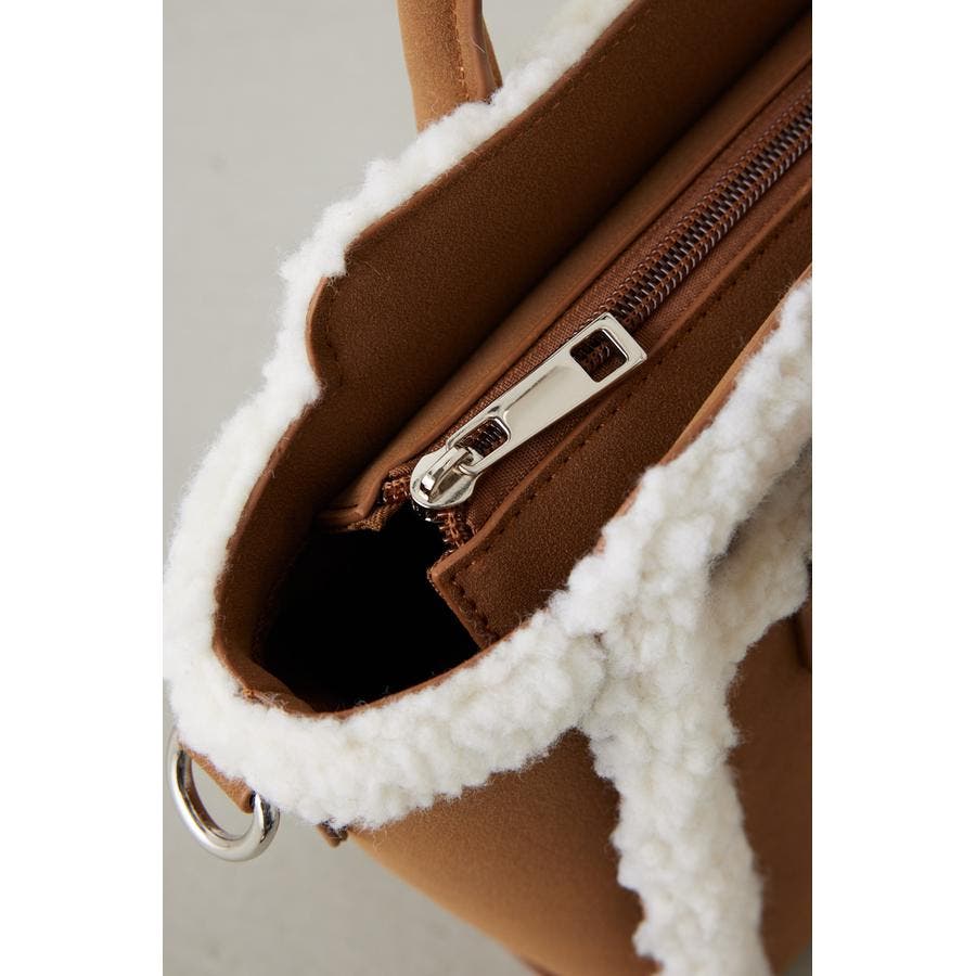 ボアと合成皮革の組み合わせがシーズンムードが高まるフェイクムートンバッグです。