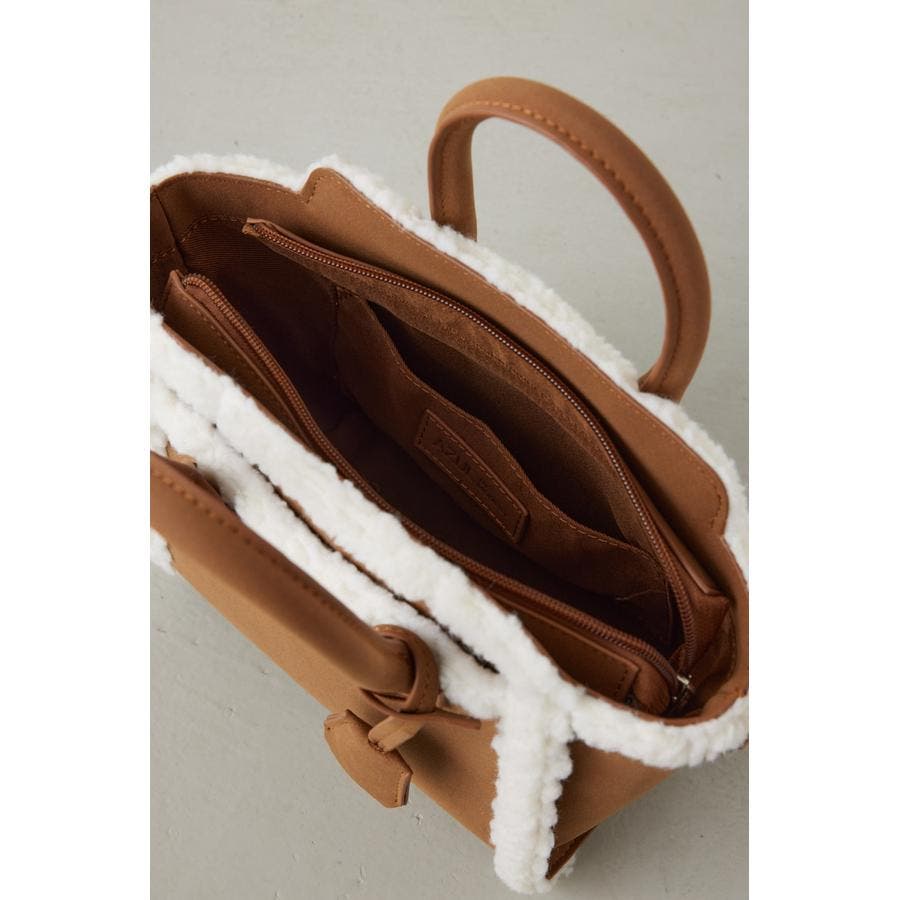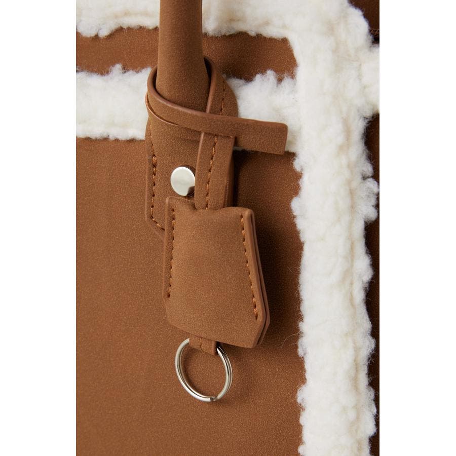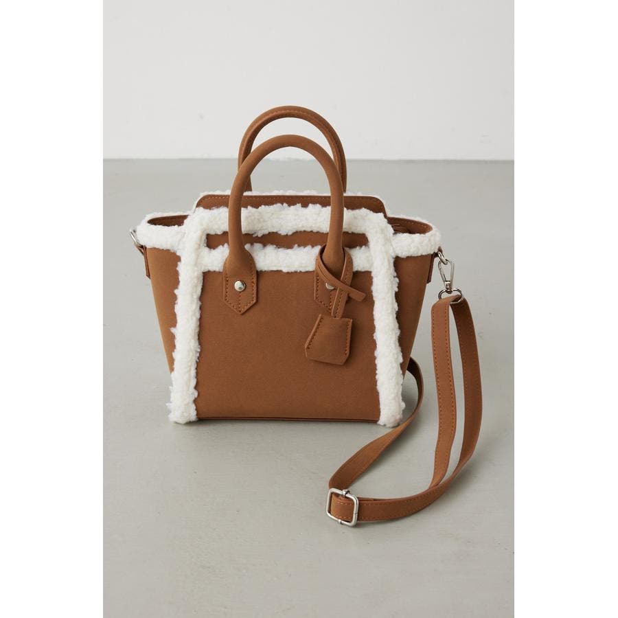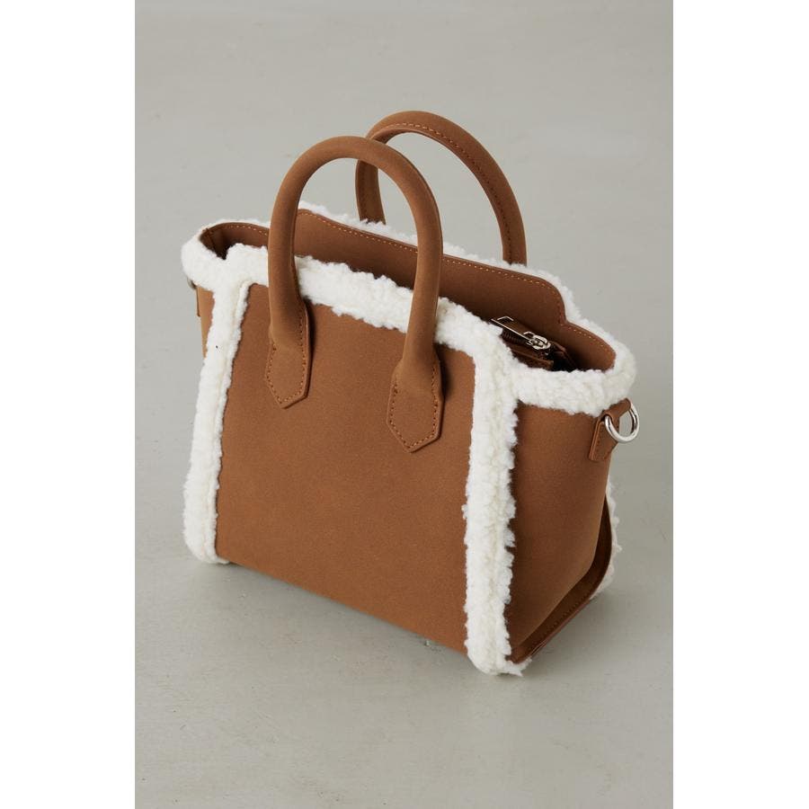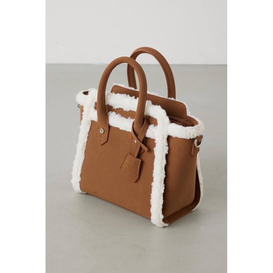 ボアと合成皮革の組み合わせがシーズンムードが高まるフェイクムートンバッグです。