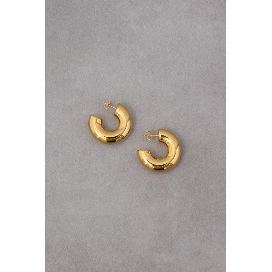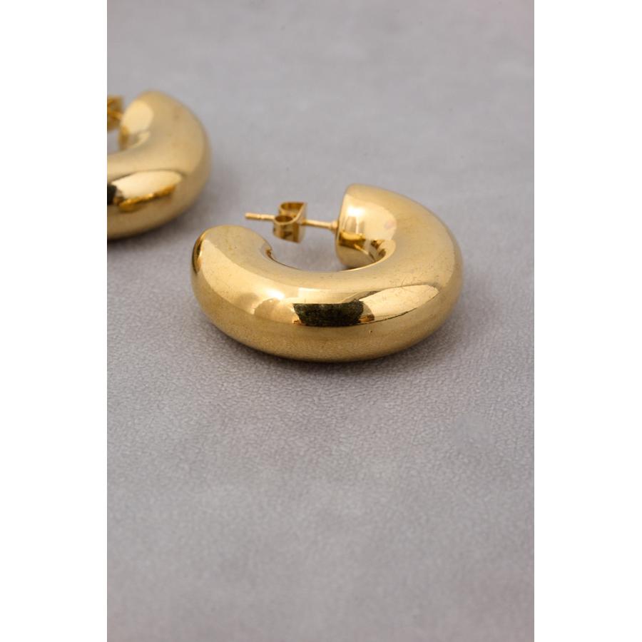 太めで立体的なデザインが特徴のフープピアスです。