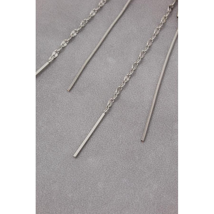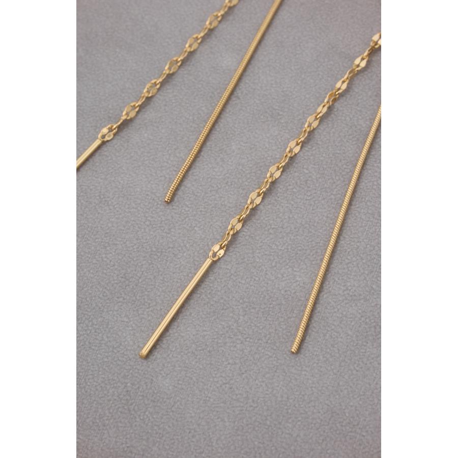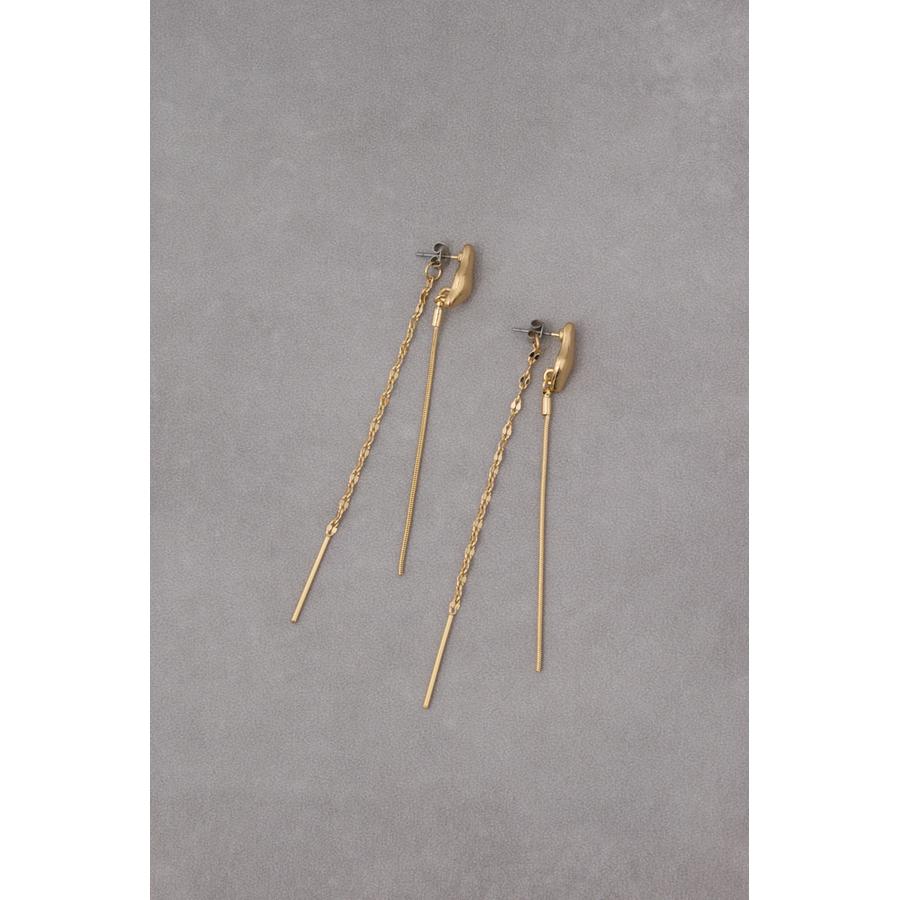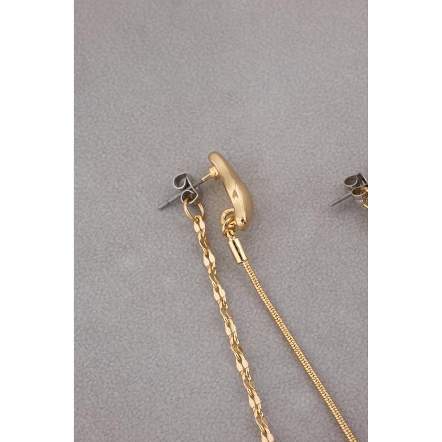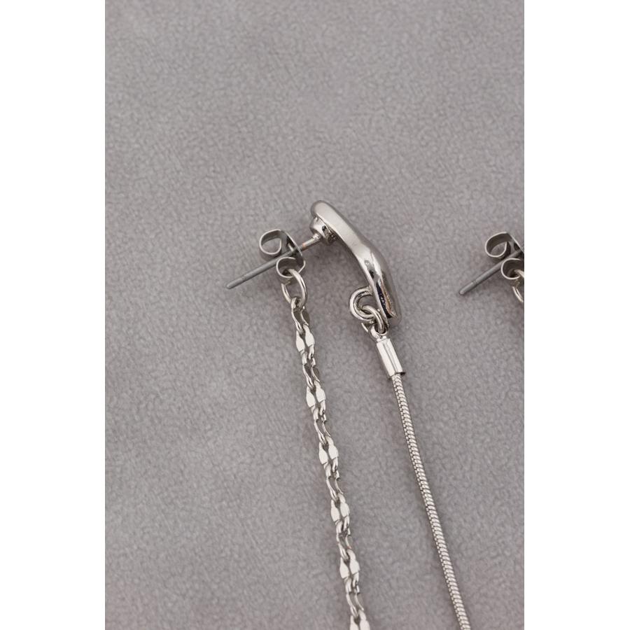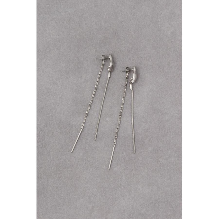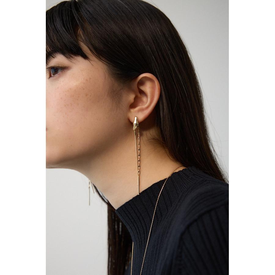 複数の異なるチェーンが組み合わさったデザインが特徴のピアス。