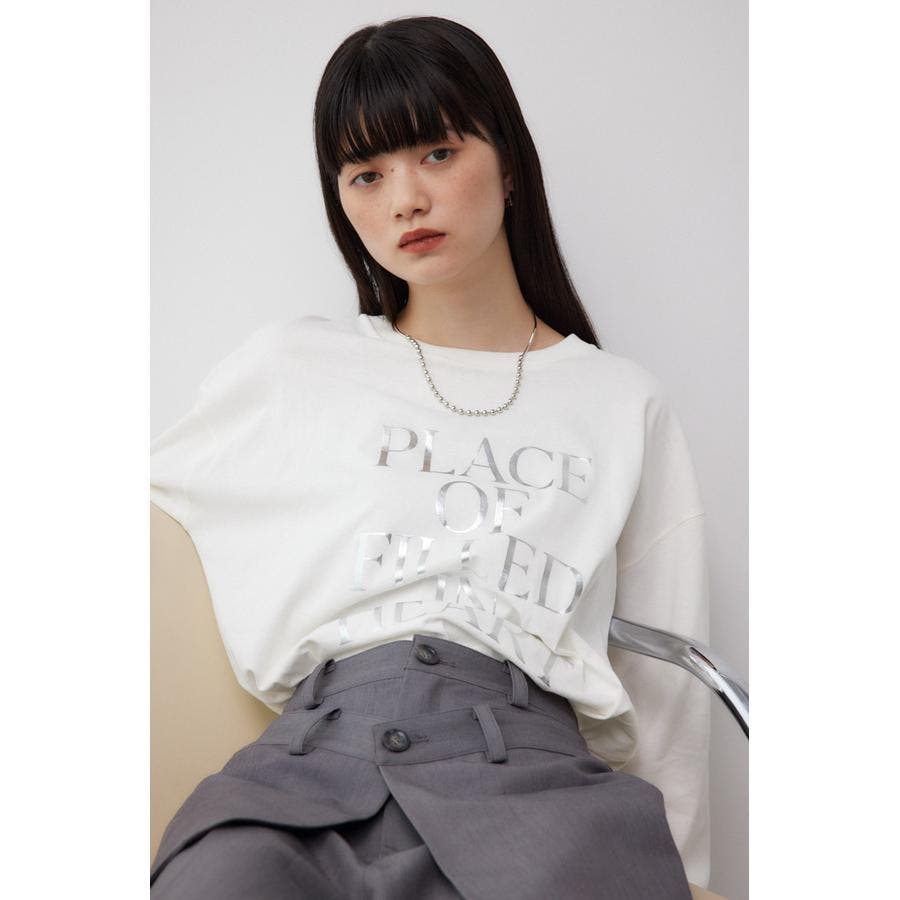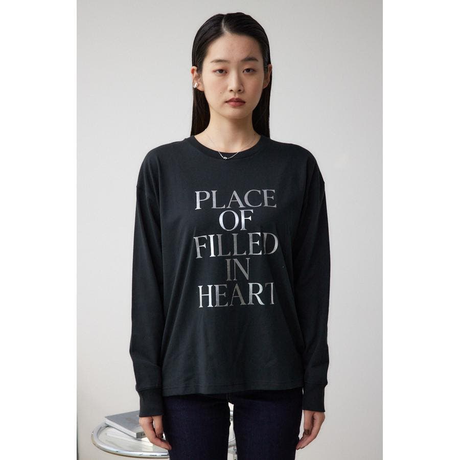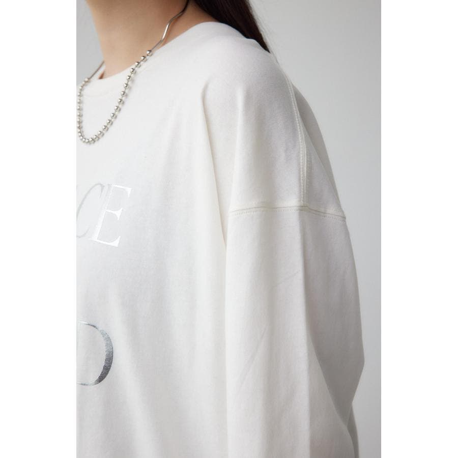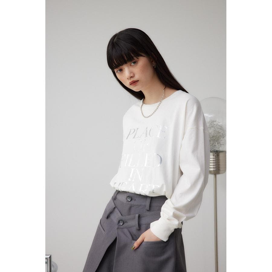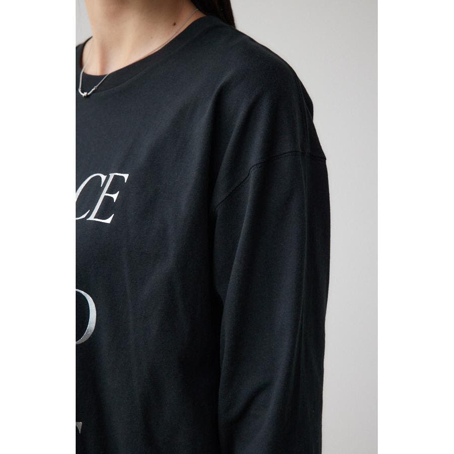 女性らしいロゴフォントに箔プリントを入れた長袖Tシャツです。