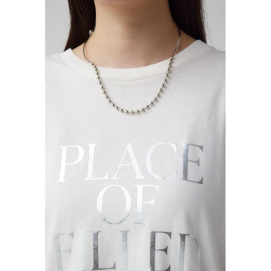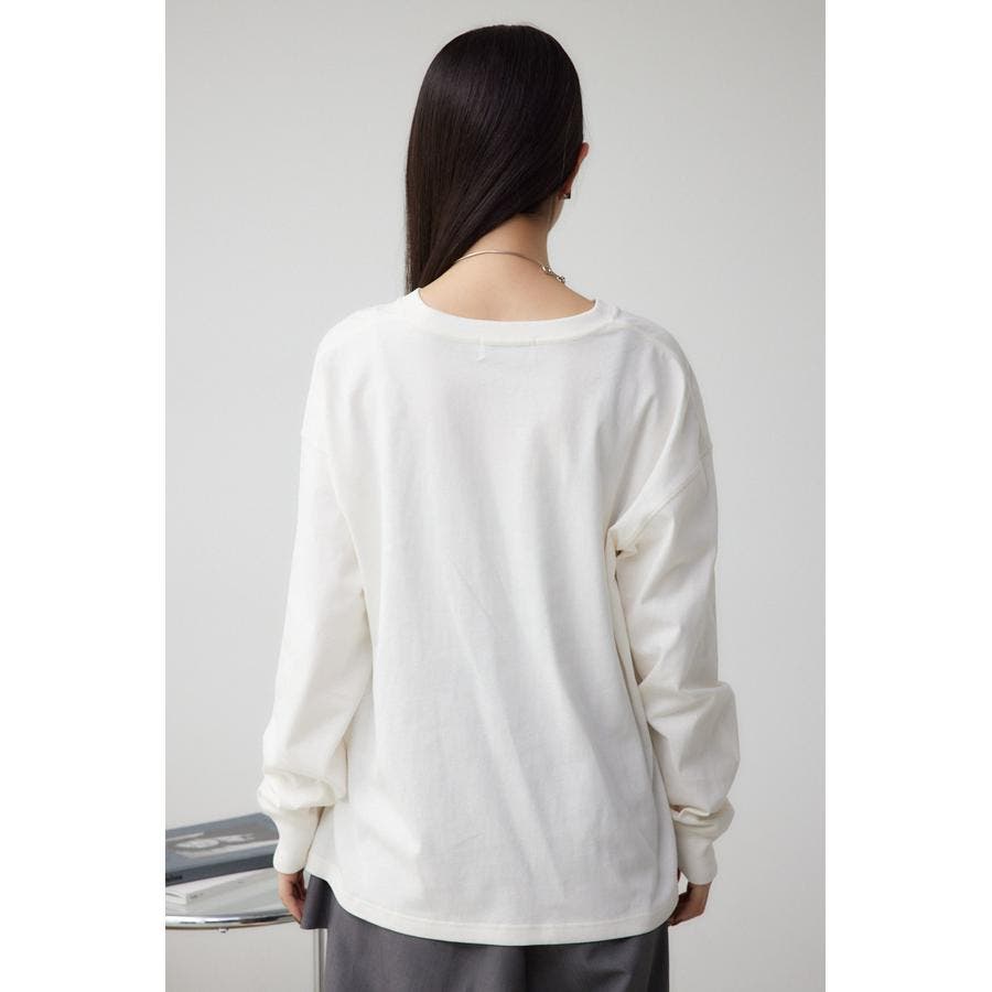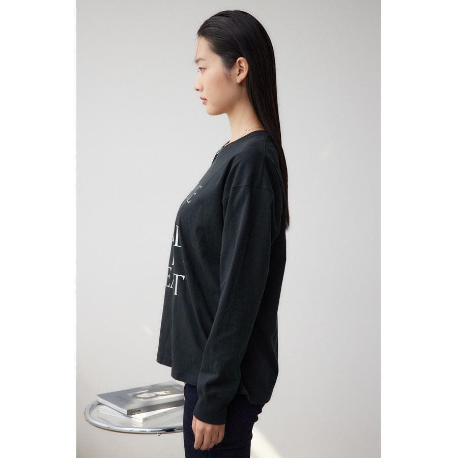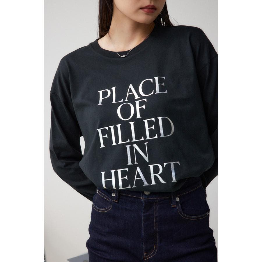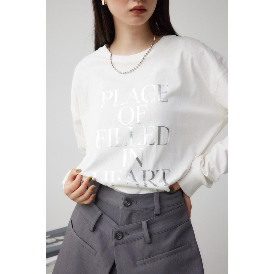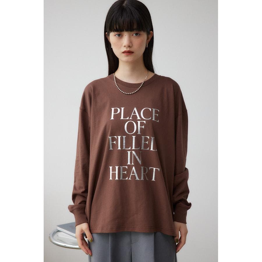 女性らしいロゴフォントに箔プリントを入れた長袖Tシャツです。