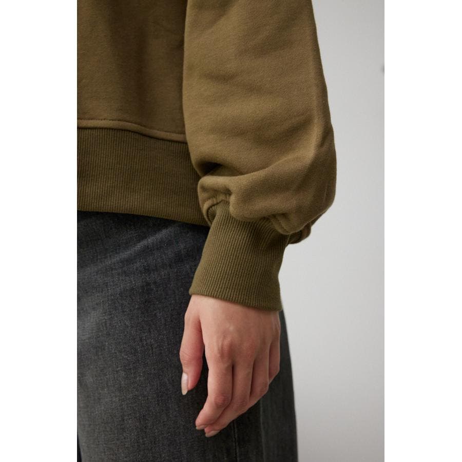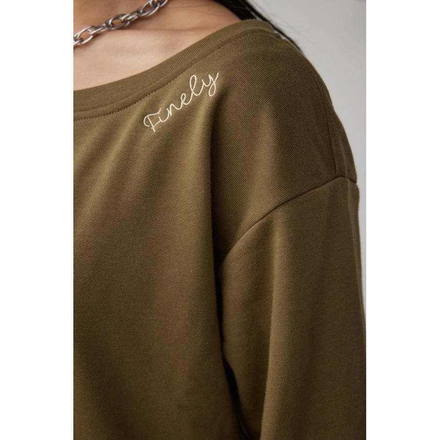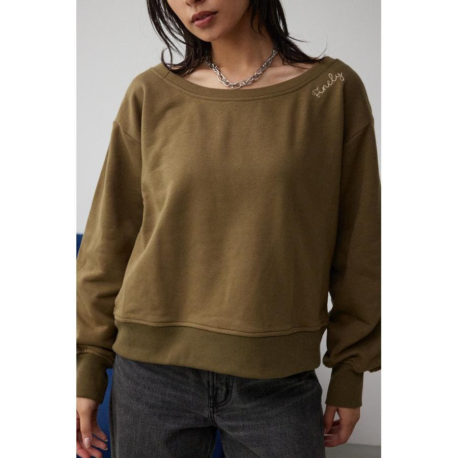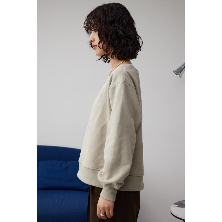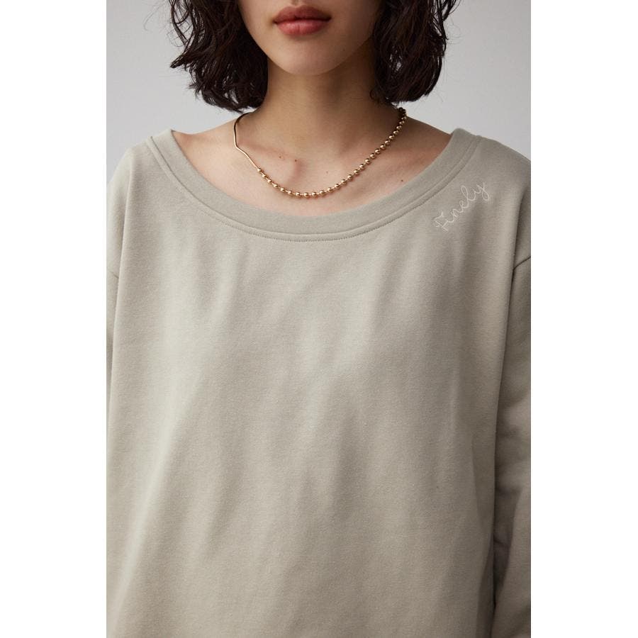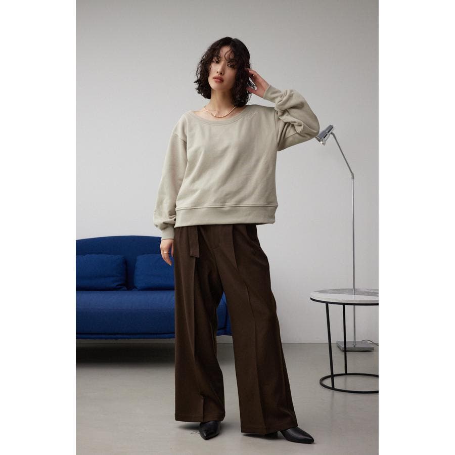 着丈はやや短めでネックデザインはオフショルダーで、肩を出して着ることもできる裏毛プルオーバーです。