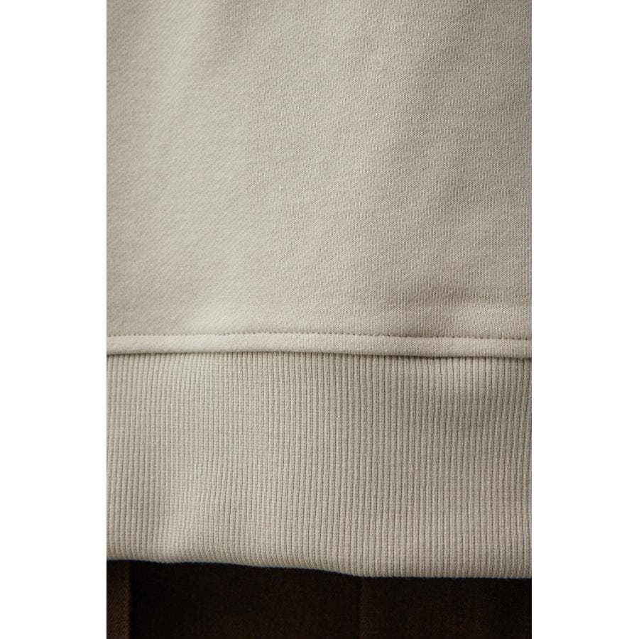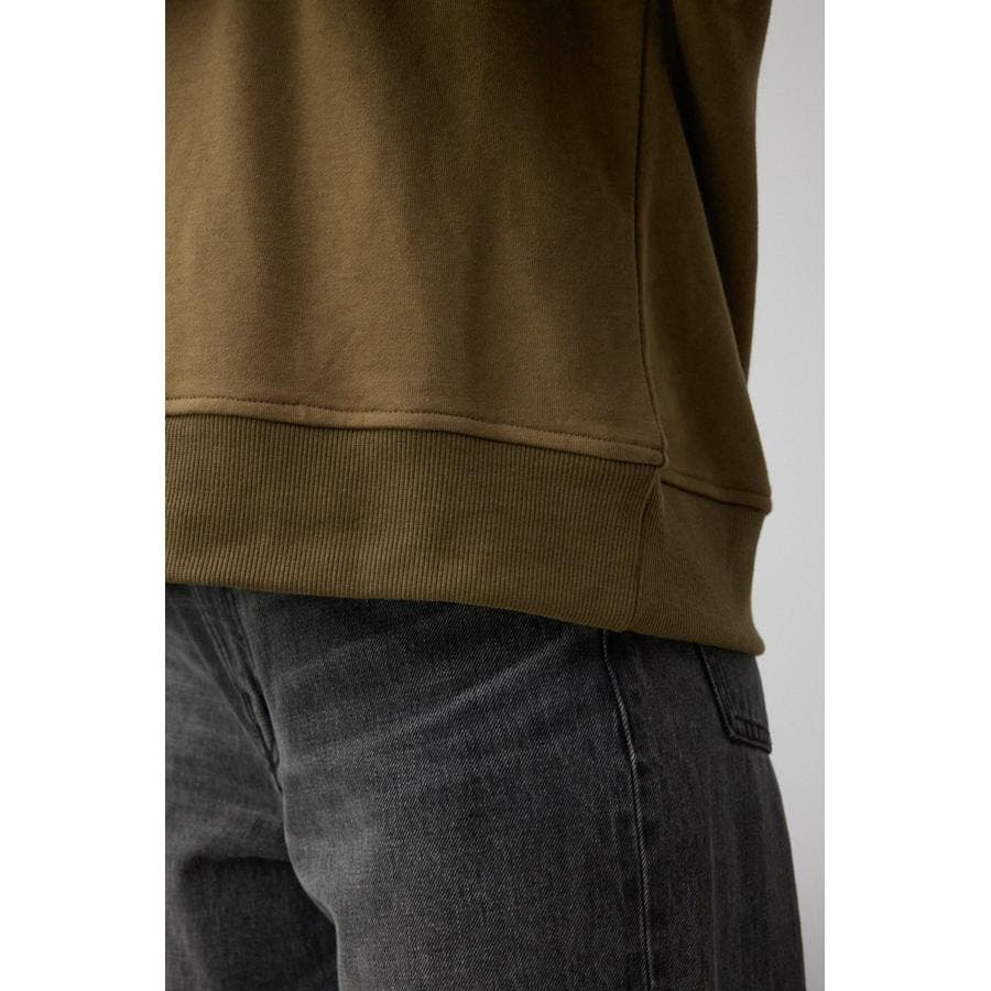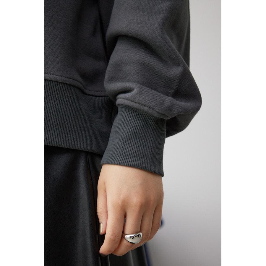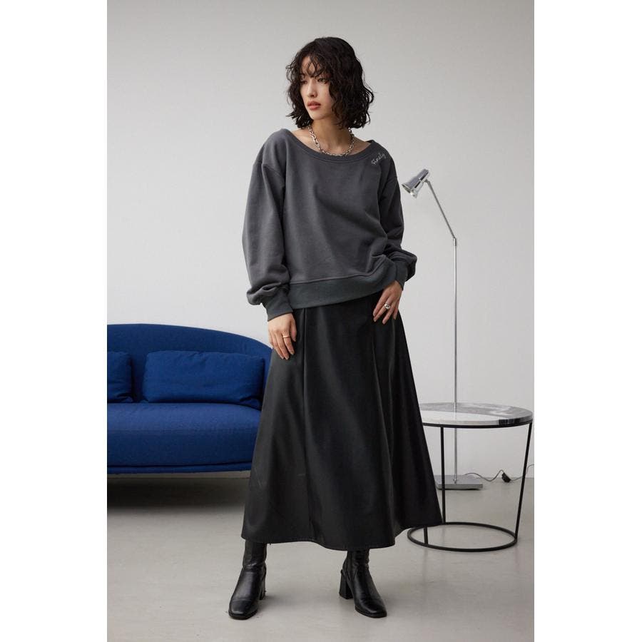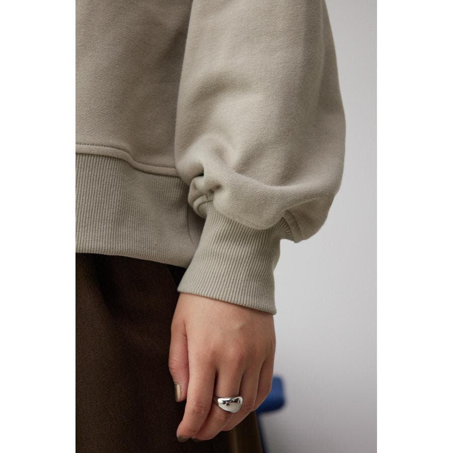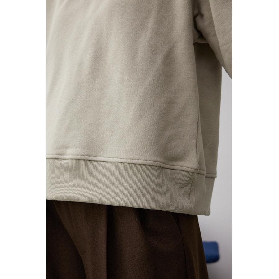着丈はやや短めでネックデザインはオフショルダーで、肩を出して着ることもできる裏毛プルオーバーです。