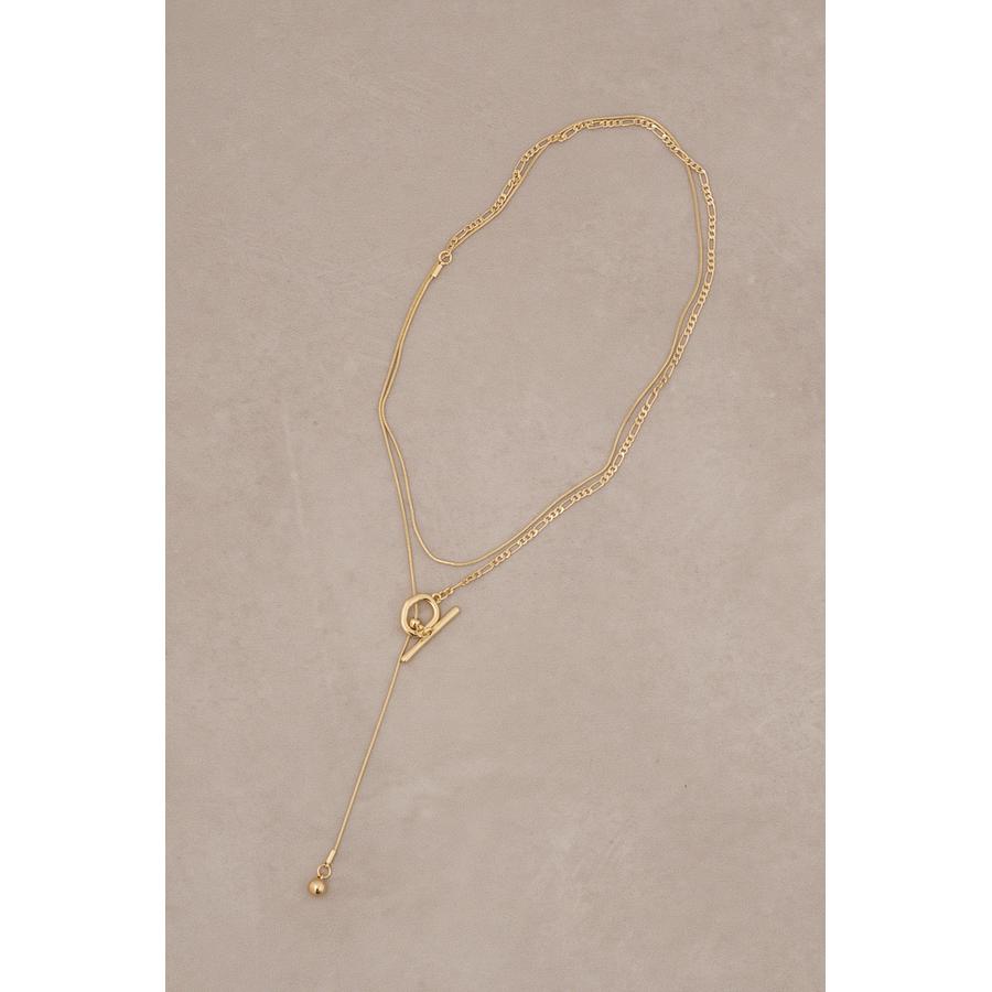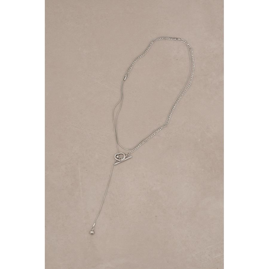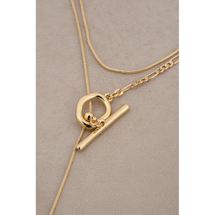 ・2種類のチェーンが組み合わさったレイヤードデザインが程よいボリューム感で首元のアクセントに。