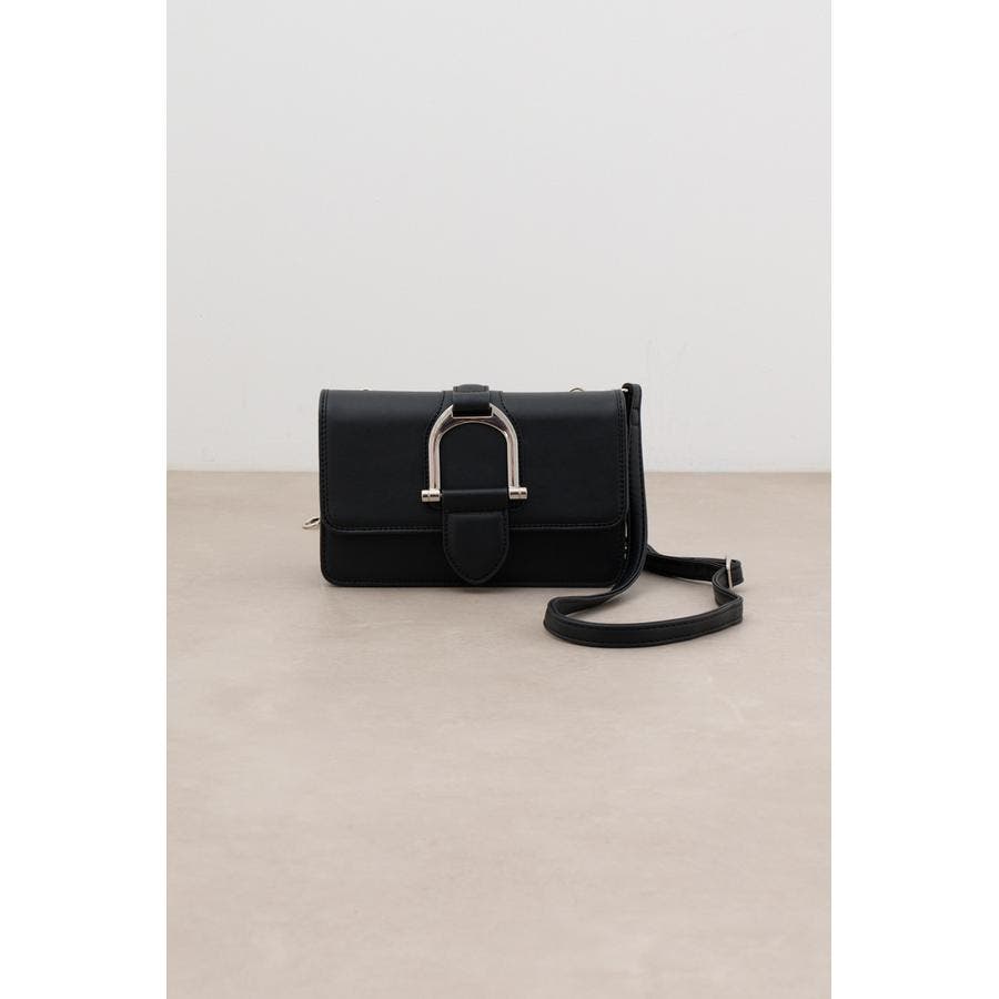 ■商品ディティール 財布とショルダーバッグが一体化していて、これひとつでお出掛けが叶う機能的なバッグです。マットな合皮に目を惹く大きなメタルパーツが施されたフラップデザインが高級感を演出してくれます。ベーシックで合わせやすいブラックとグレージュに、これからのシーズンのアクセントにぴったりなライトブルーの3カラー展開。