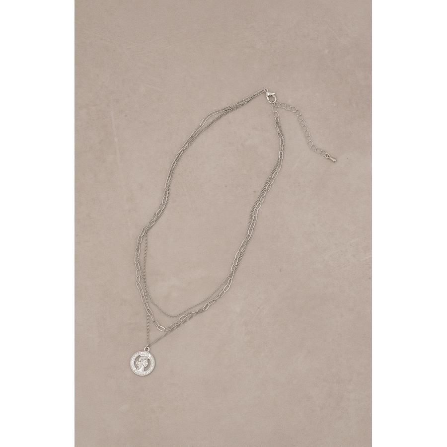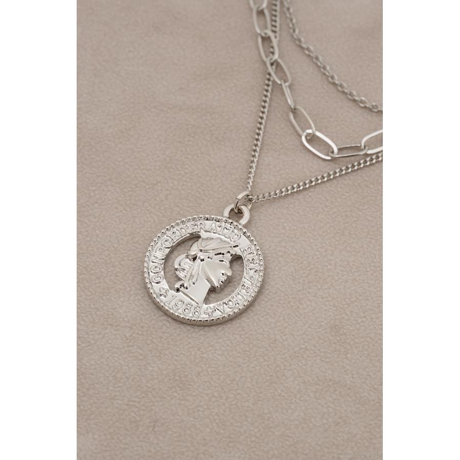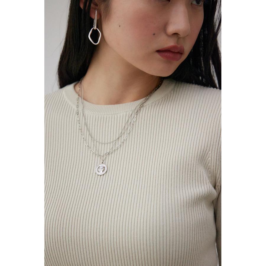 ・型違いのコインをダブルにして、太いチェーンと細いチェーンをレイヤードしたデザインです。