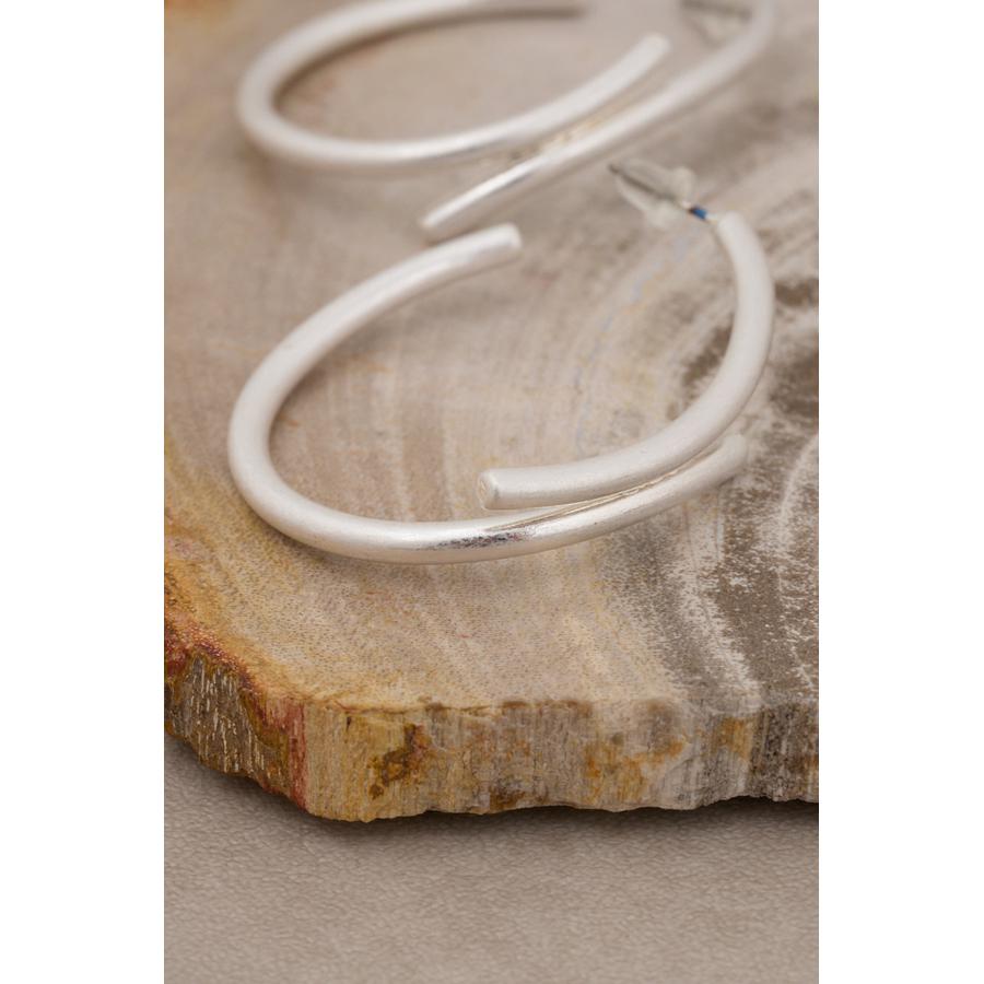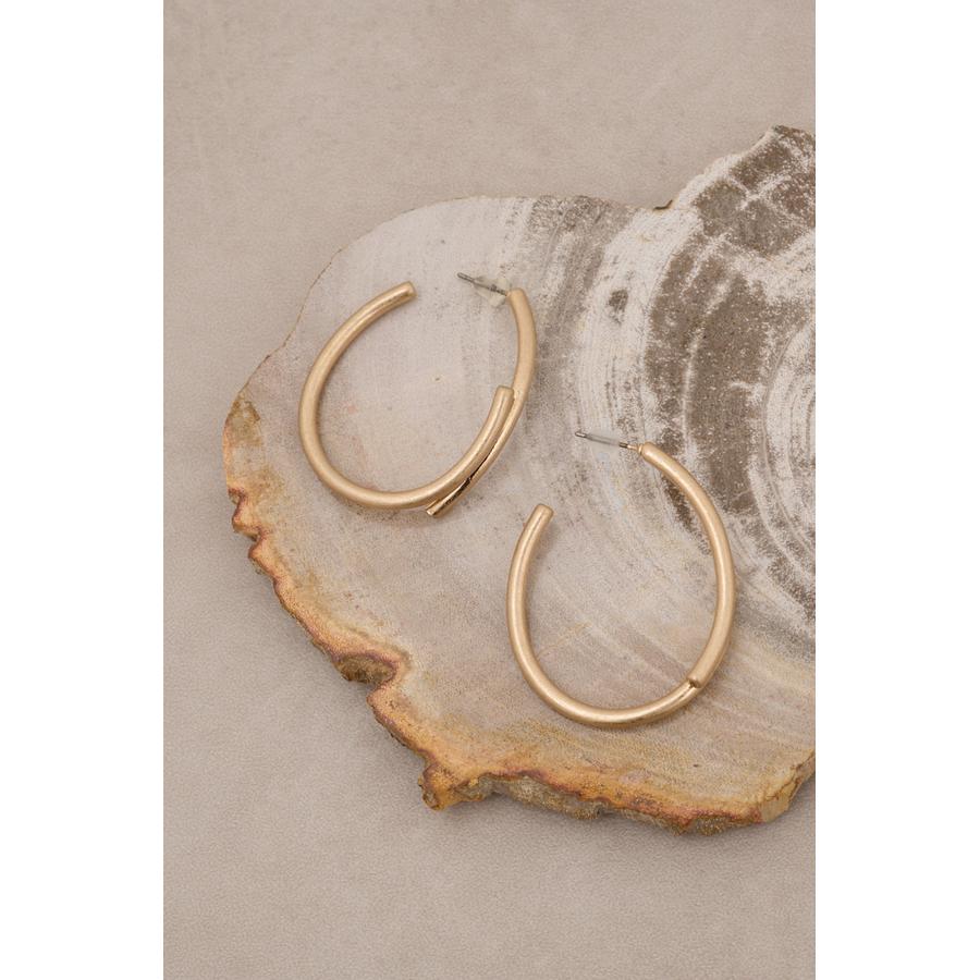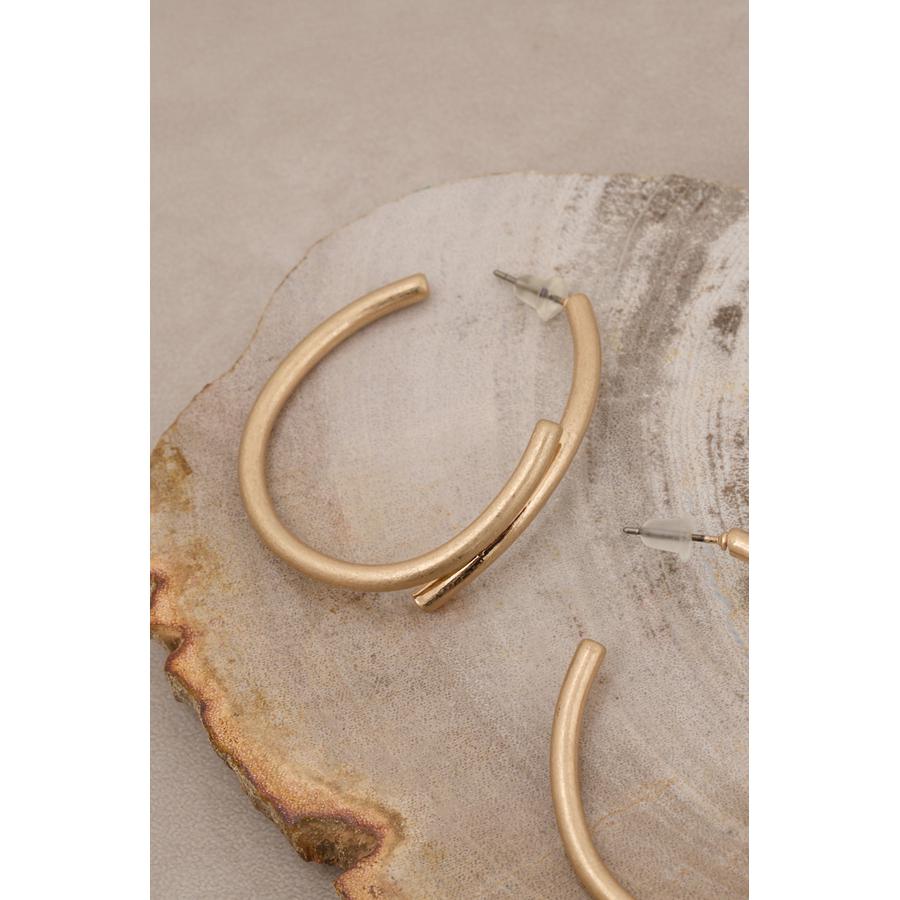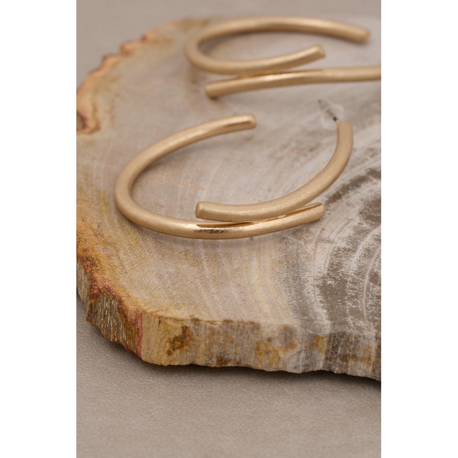 ・重なり合った大振りのフープが目を惹くトレンドピアスです。