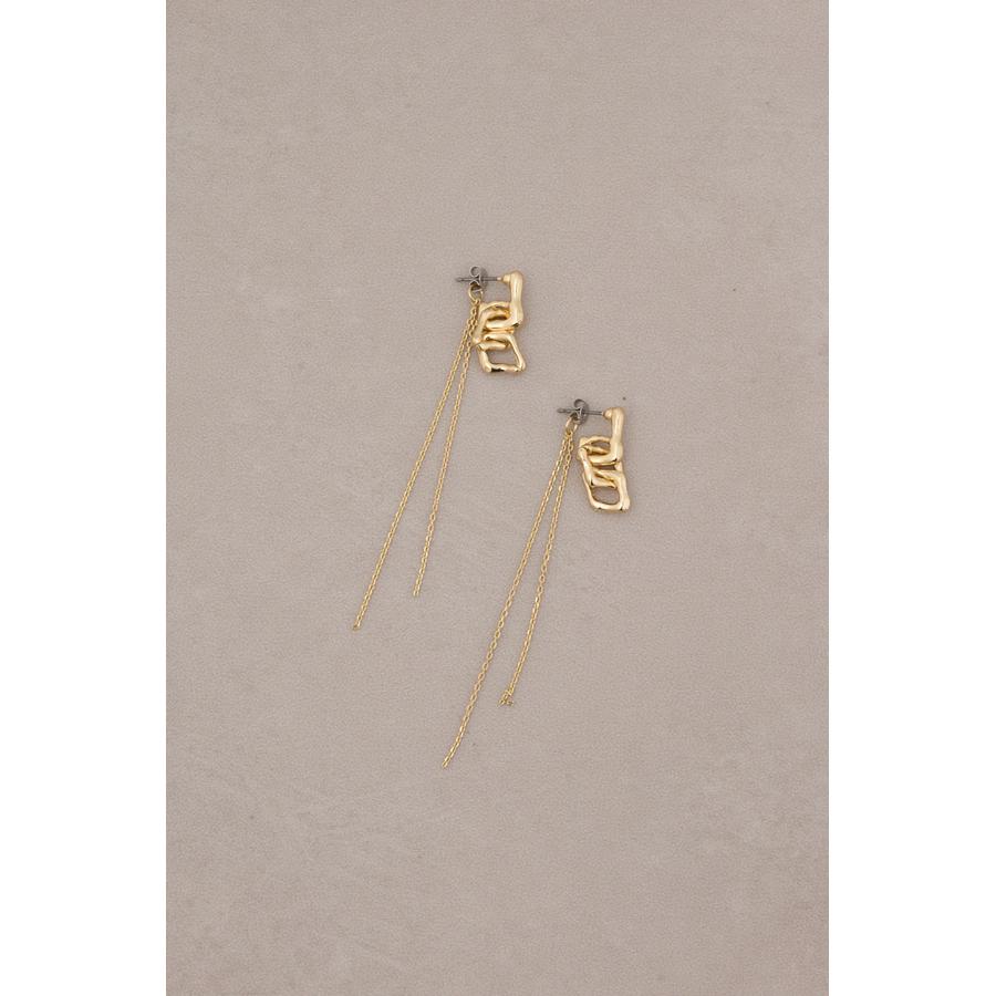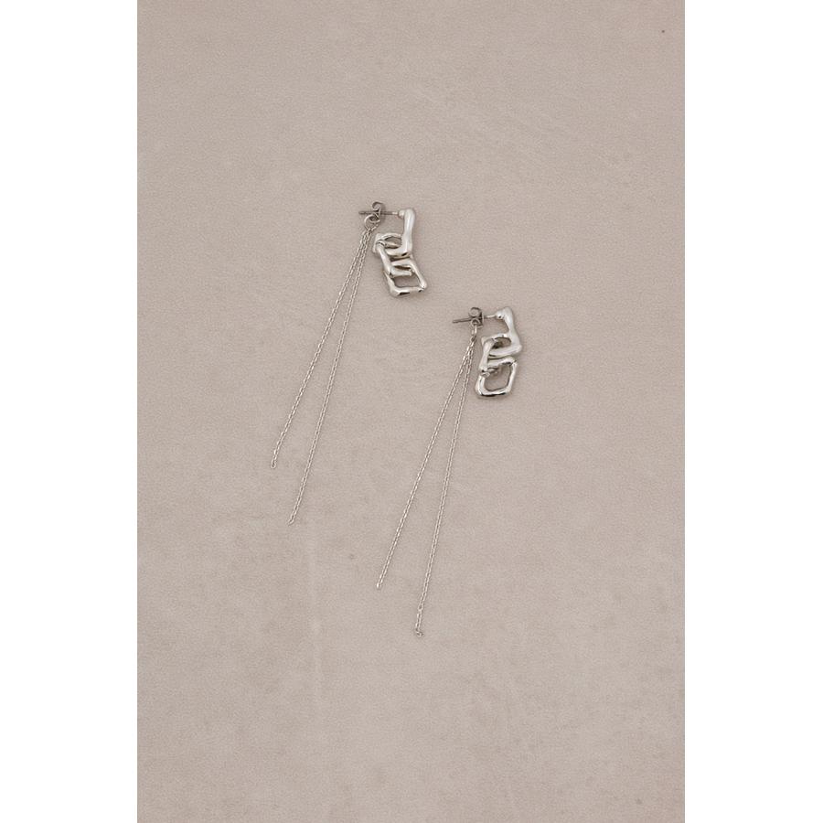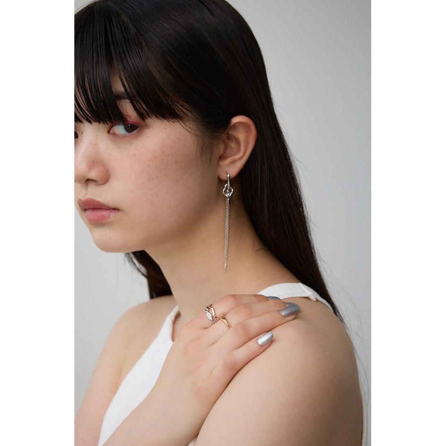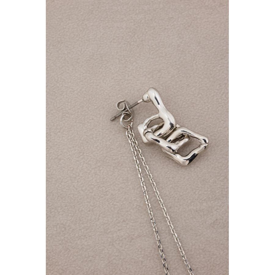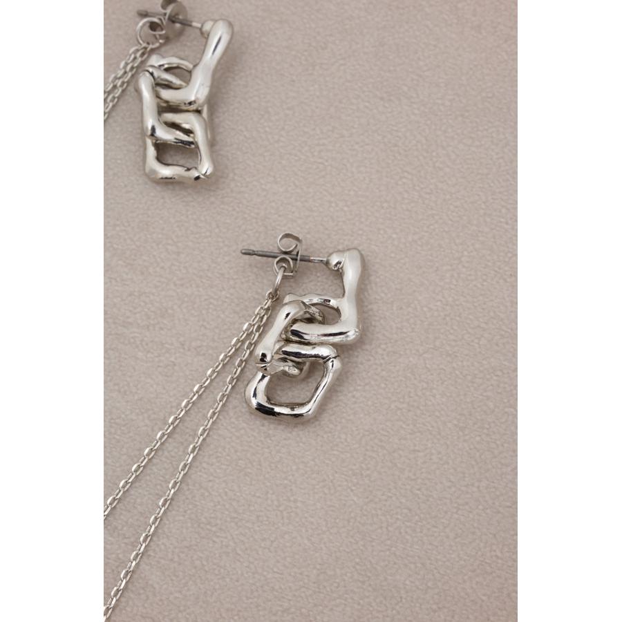 ■商品ディティール : 凹凸感のあるスクエアメタルと、チェーンのドッキングピアスです。女性らしい揺れるデザインとスクエアのシャープさが存在感たっぷりです。上品とクールを兼ね備えたおすすめのアイテムです。
