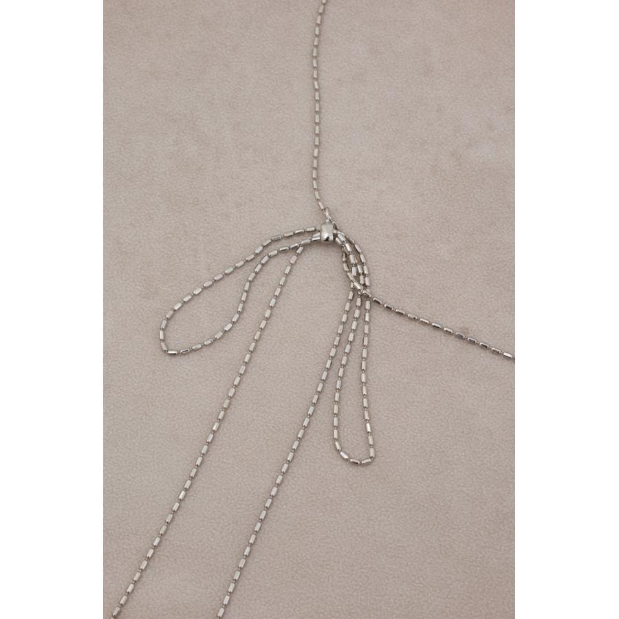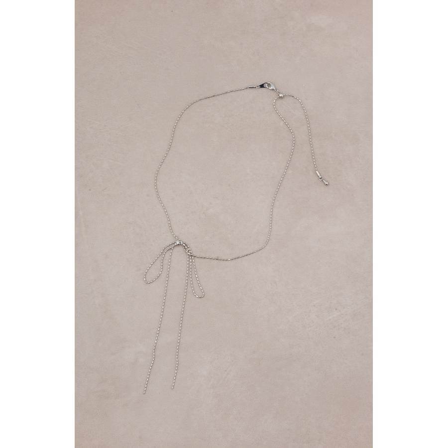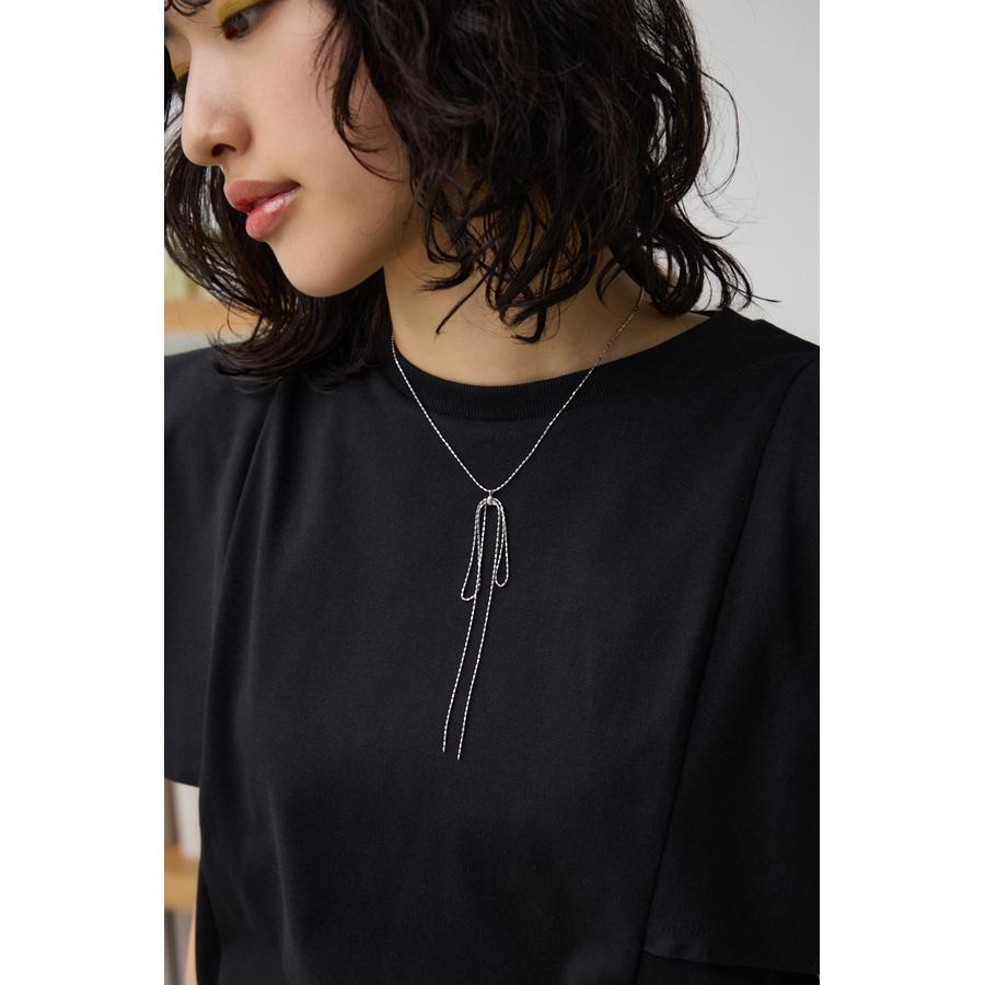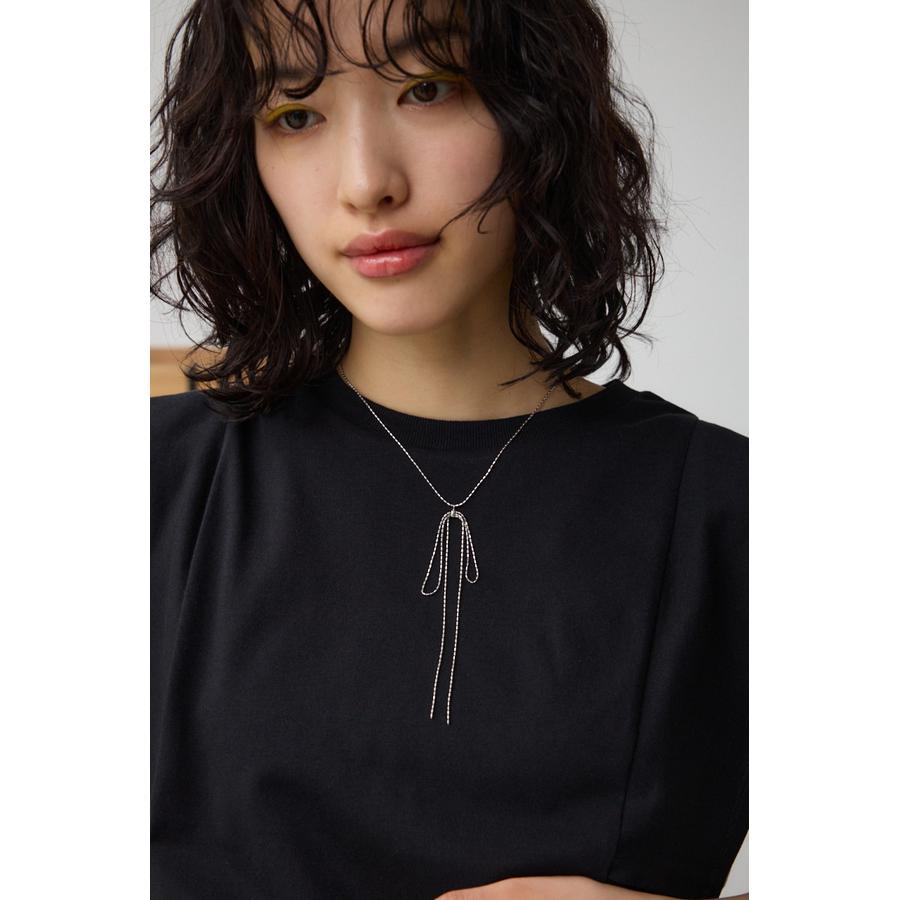 ■商品ディティール :華奢なチェーンでかたどったリボンが目を惹くトレンド感のあるデザインは、首元のアクセントに。シーズン問わずどんなスタイリングにも合わせていただけるおすすめのアイテムです。