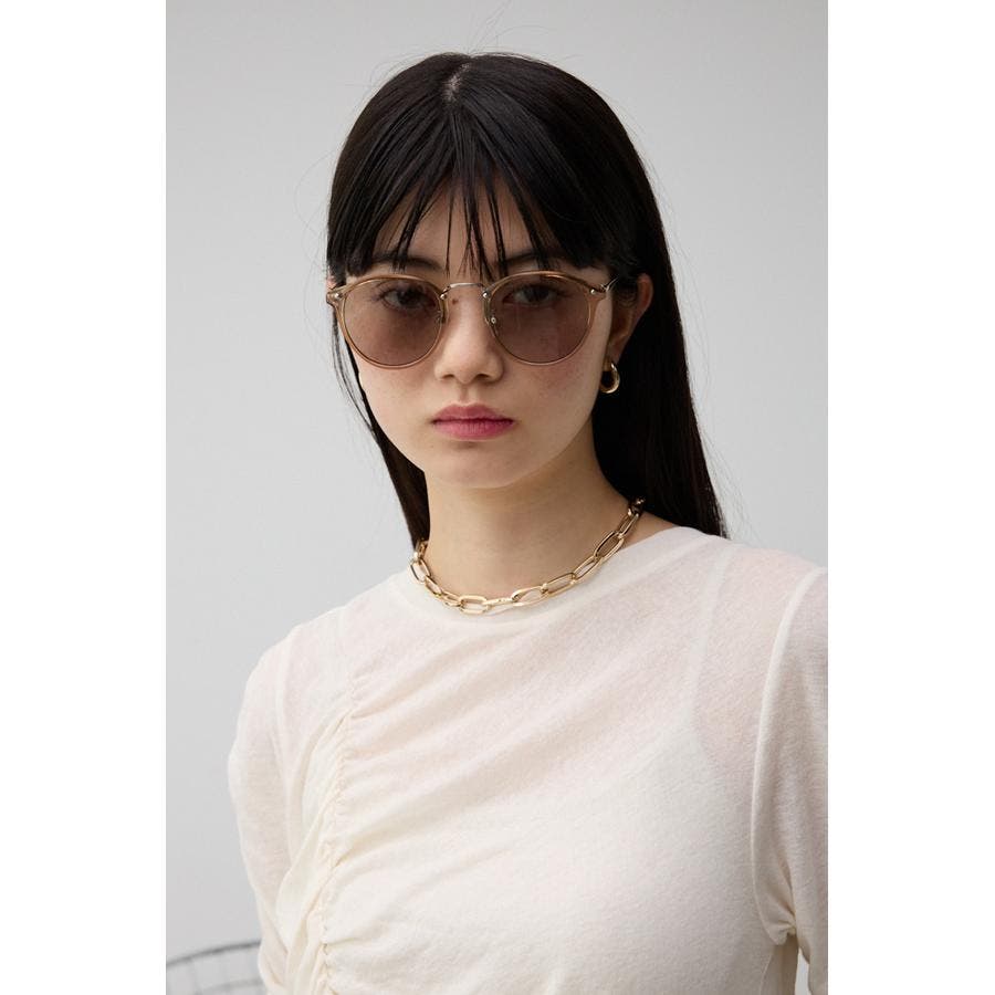 ■商品ディティール :トレンドの透け感のあるレンズを使用。スタイリング問わずに合わせやすいブラックとブラウンに加えて、今年らしい透け感のあるクリアの3カラー展開。