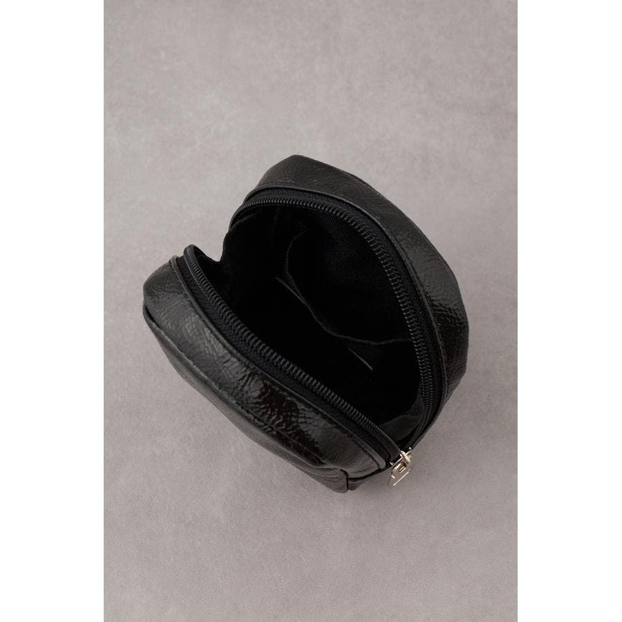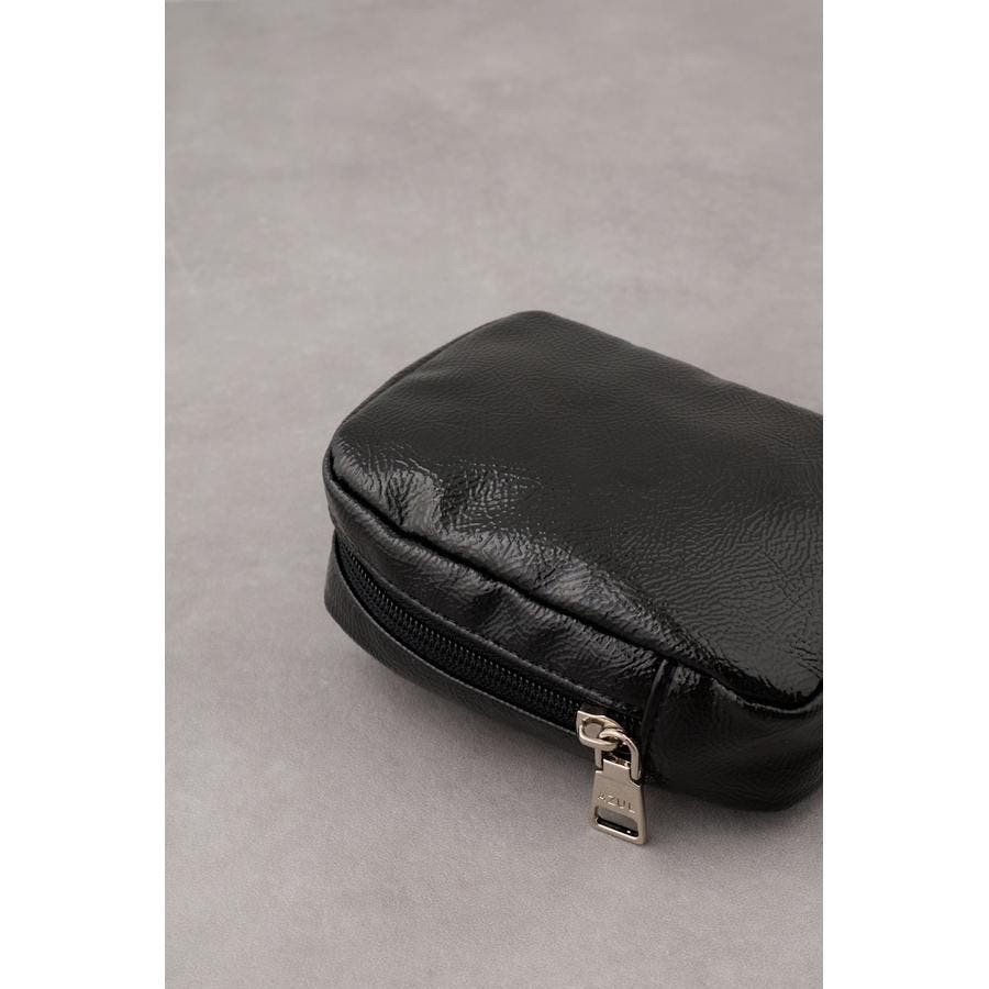 ■商品(デザイン)ポイント 艶間のある合皮使いが今年らしいミニポーチ。