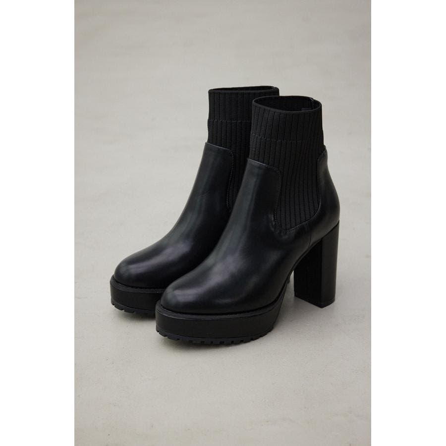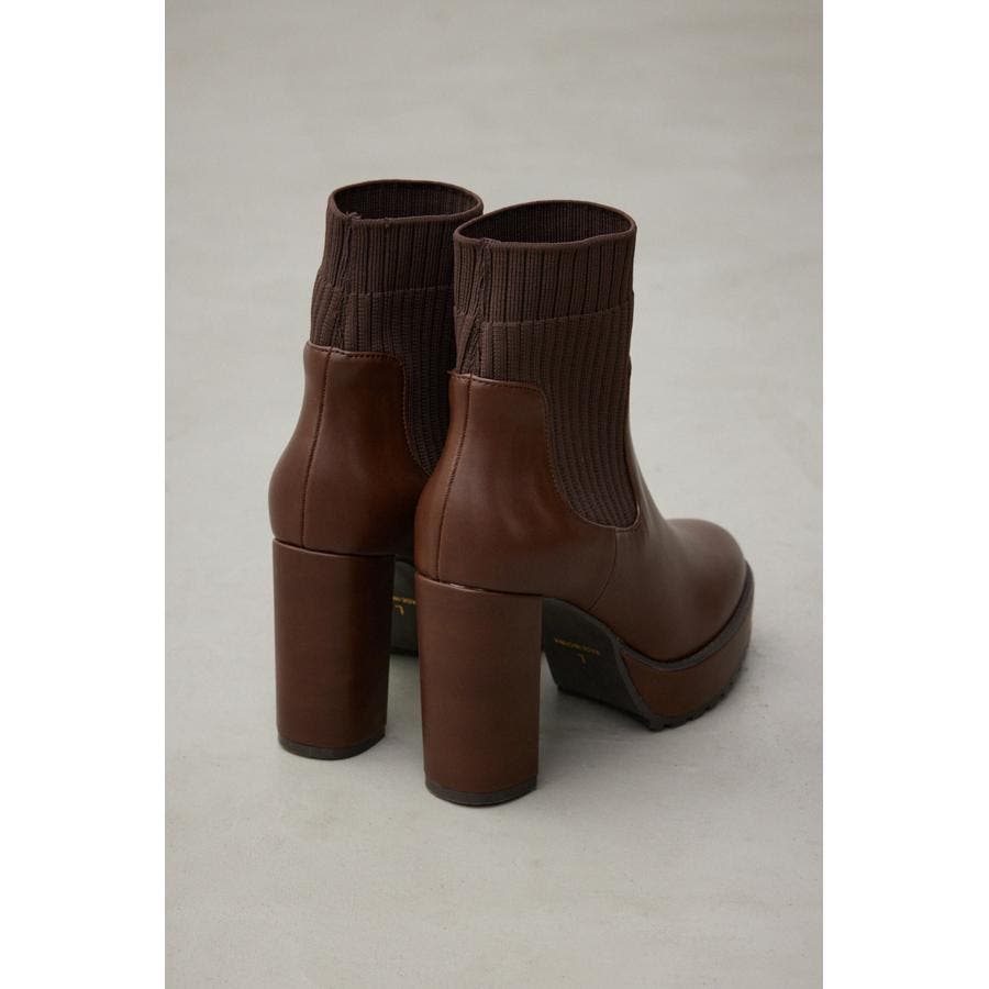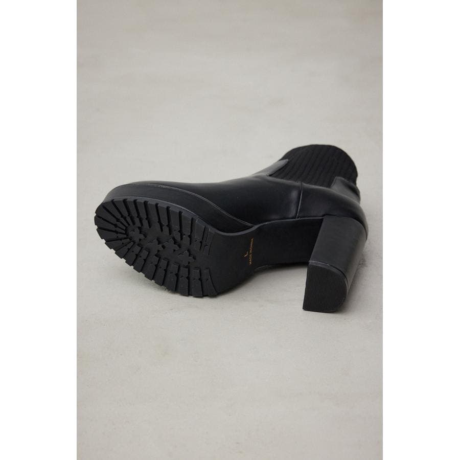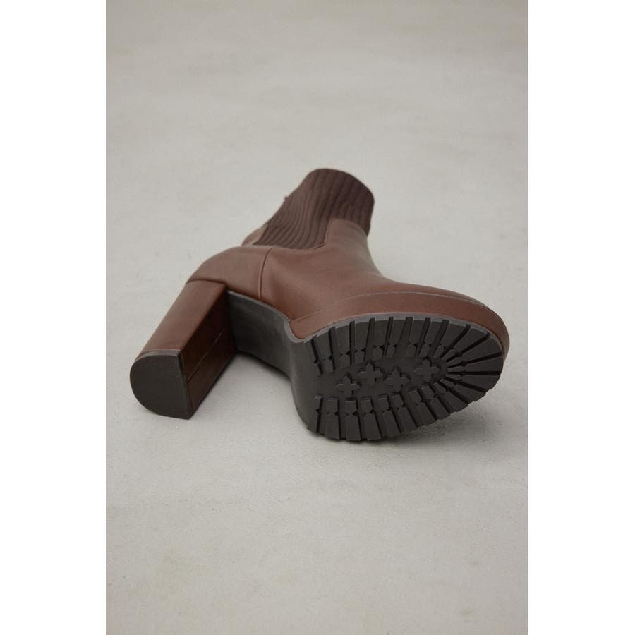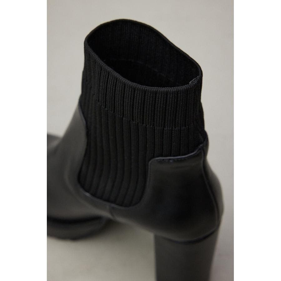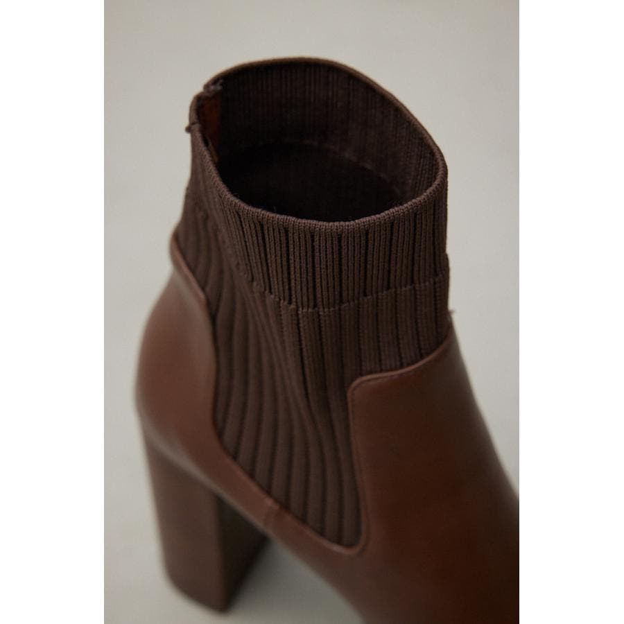 ・ナチュラルな光沢のある素材にリブニットをドッキングしたソックスタイプのショートブーツです。