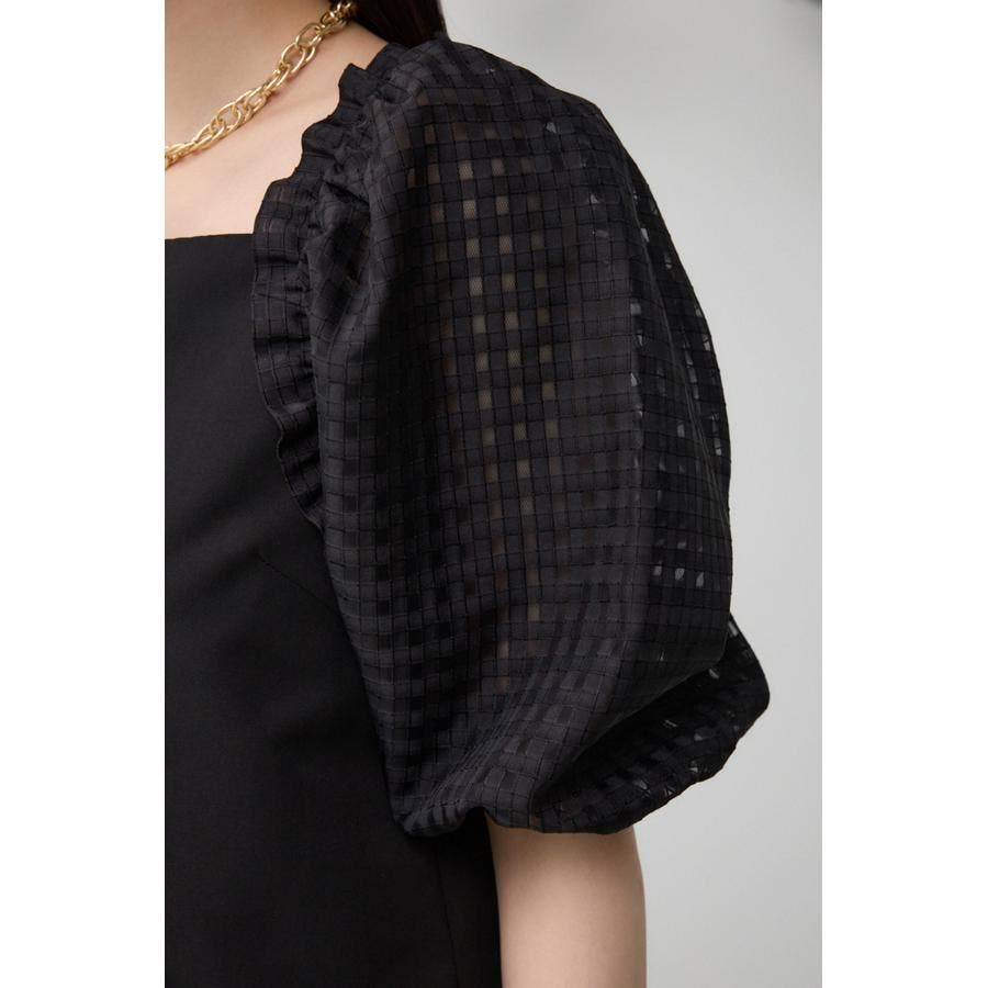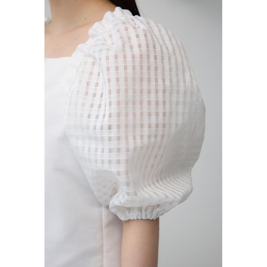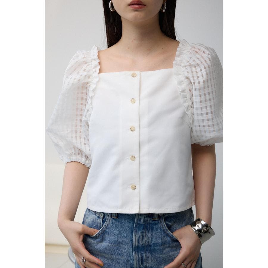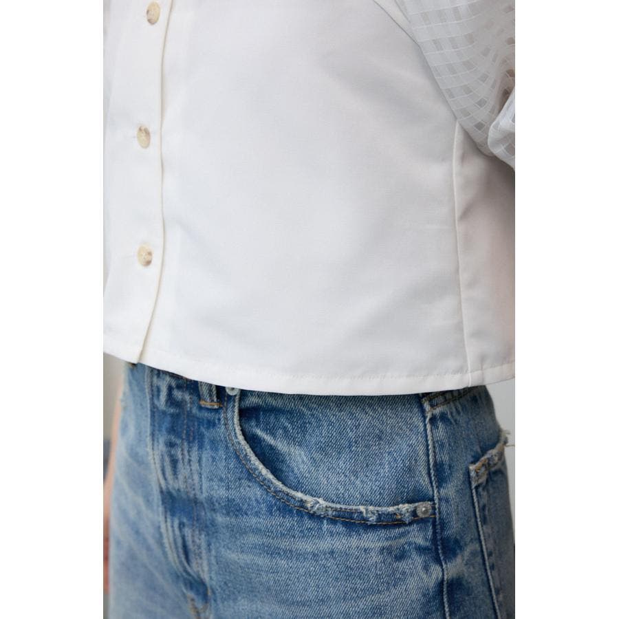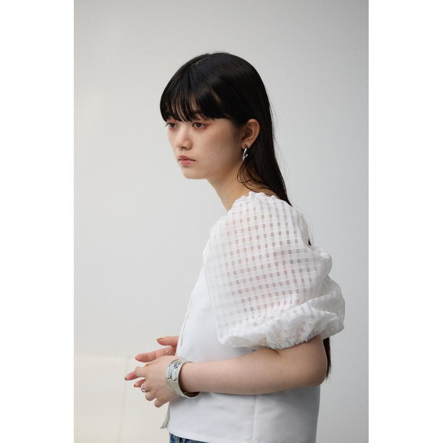 シアーチェックスリーブブラウス