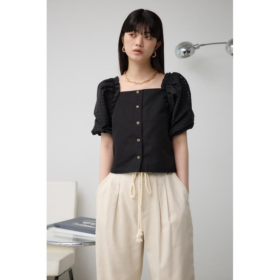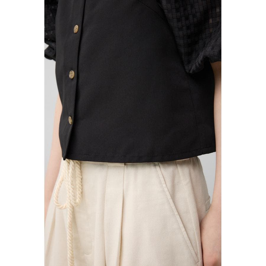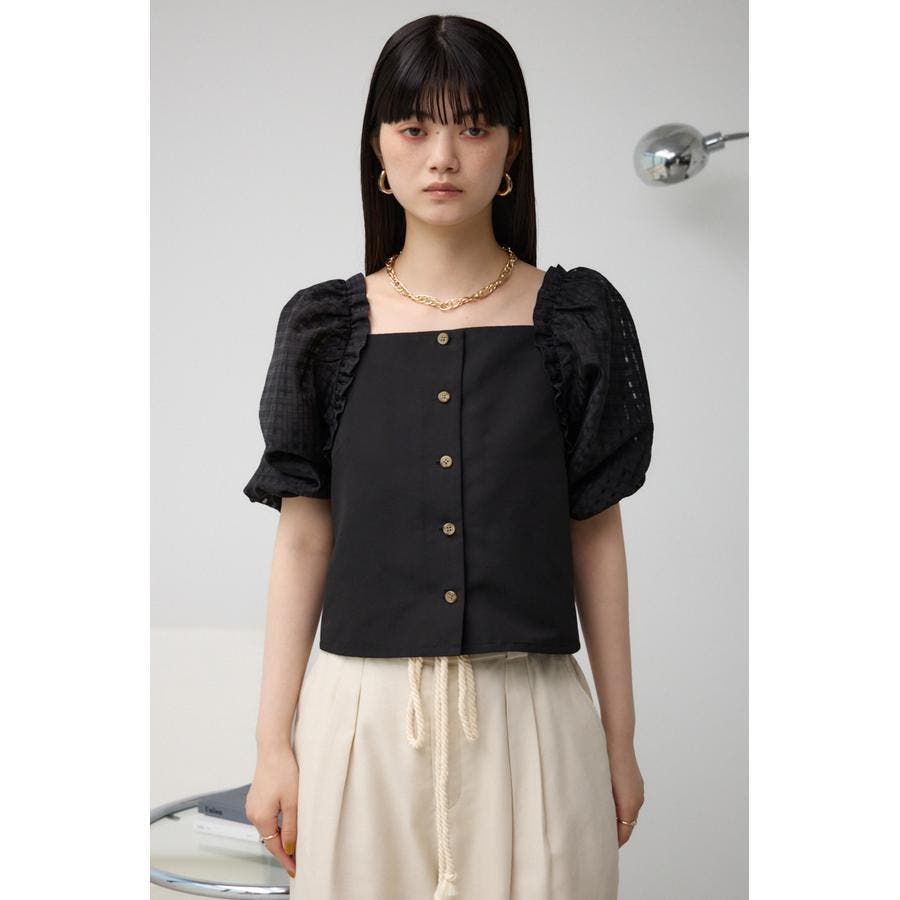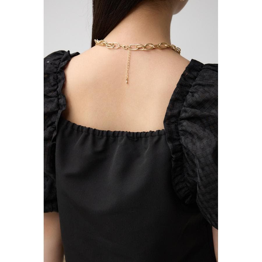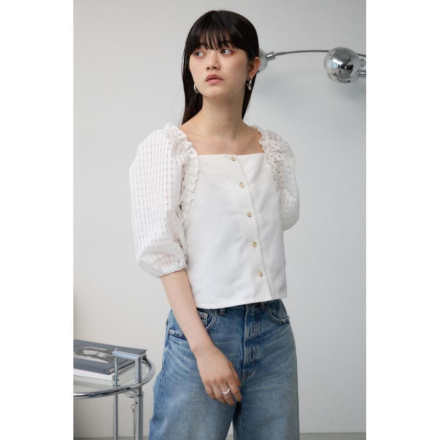 シアーチェックスリーブブラウス