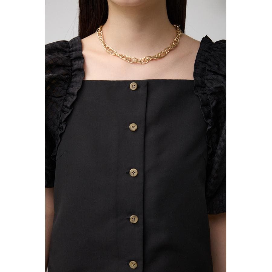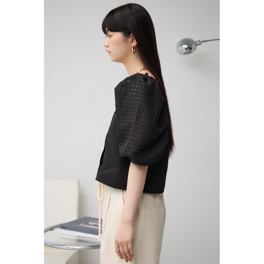 ■商品(デザイン)ポイント:シアーチェックがポイントの異素材切り替えトップス。