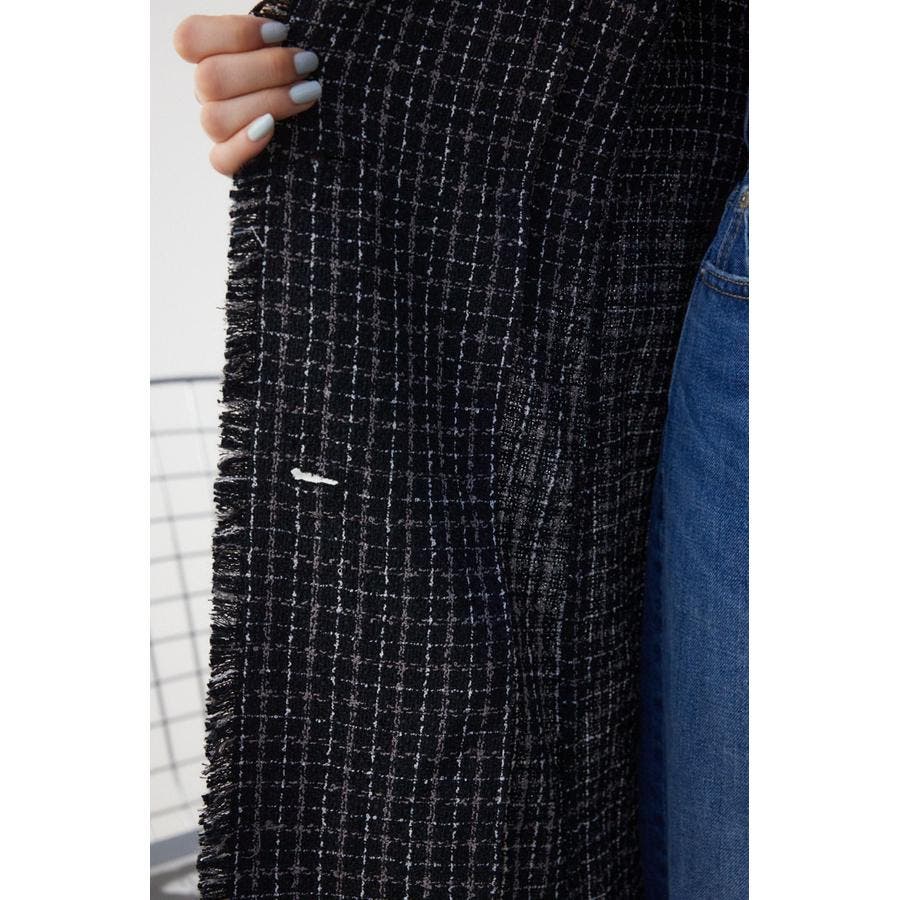 ・異なる太さの糸を組み合わせた表面感のあるツイード素材を使用。