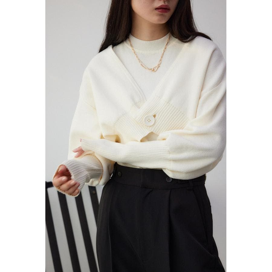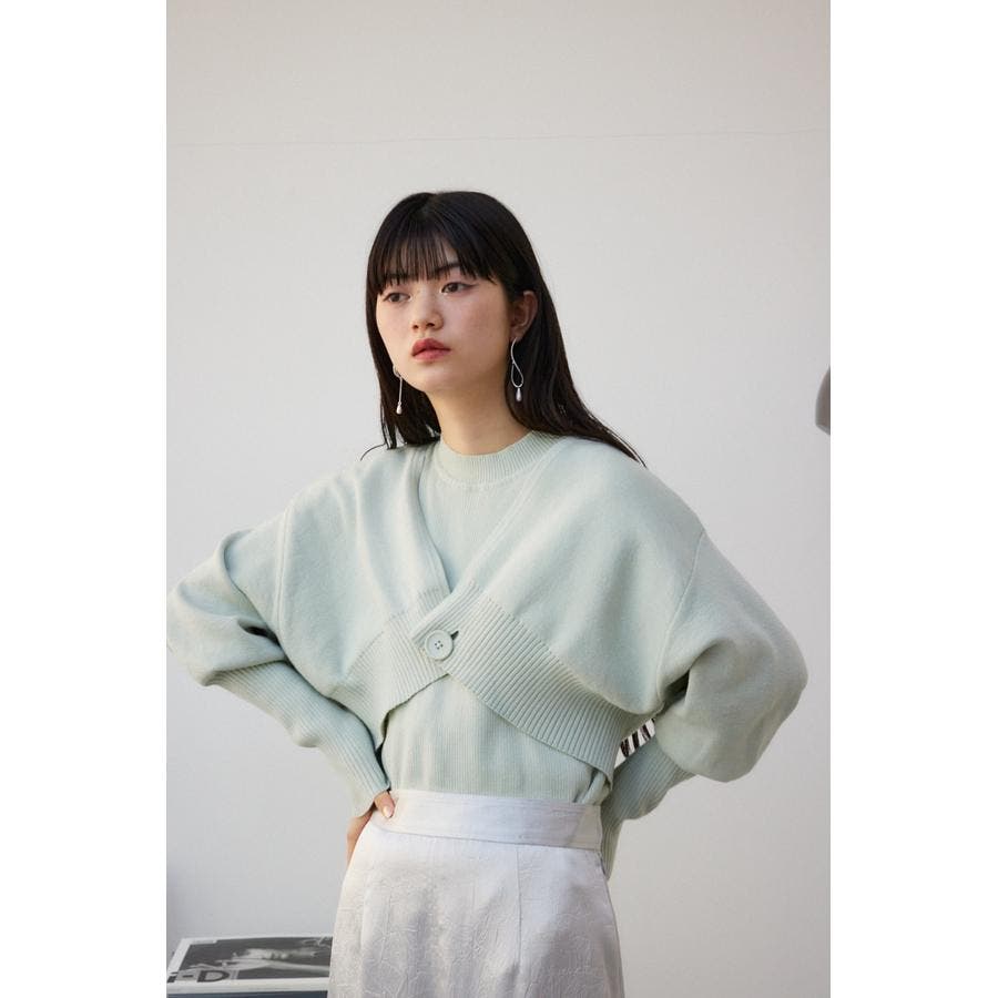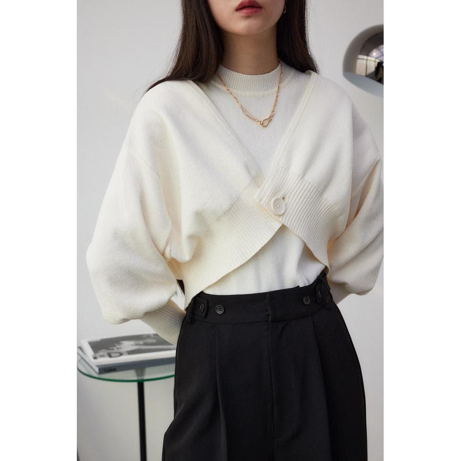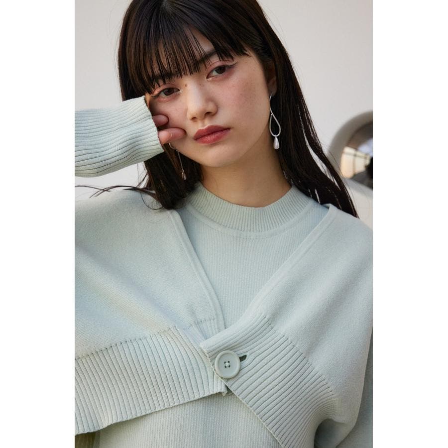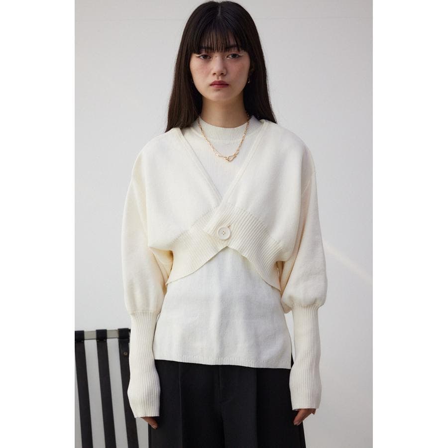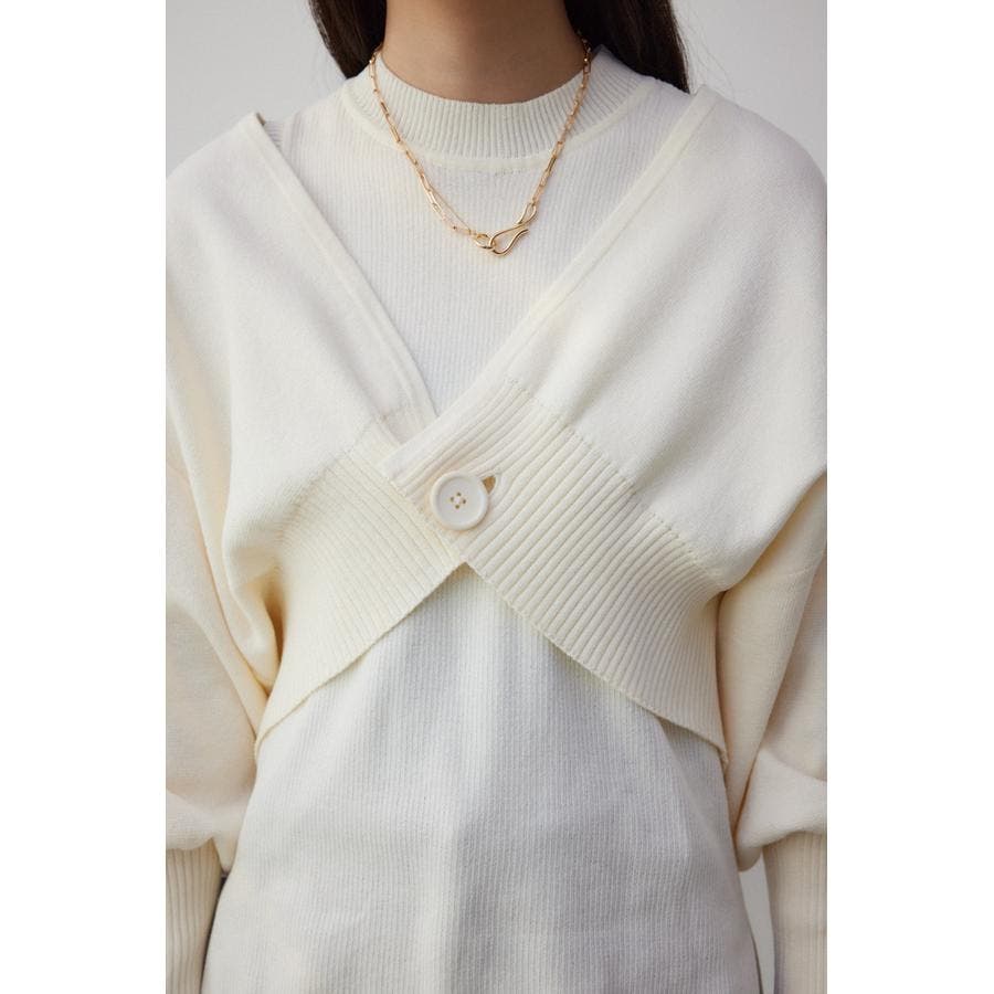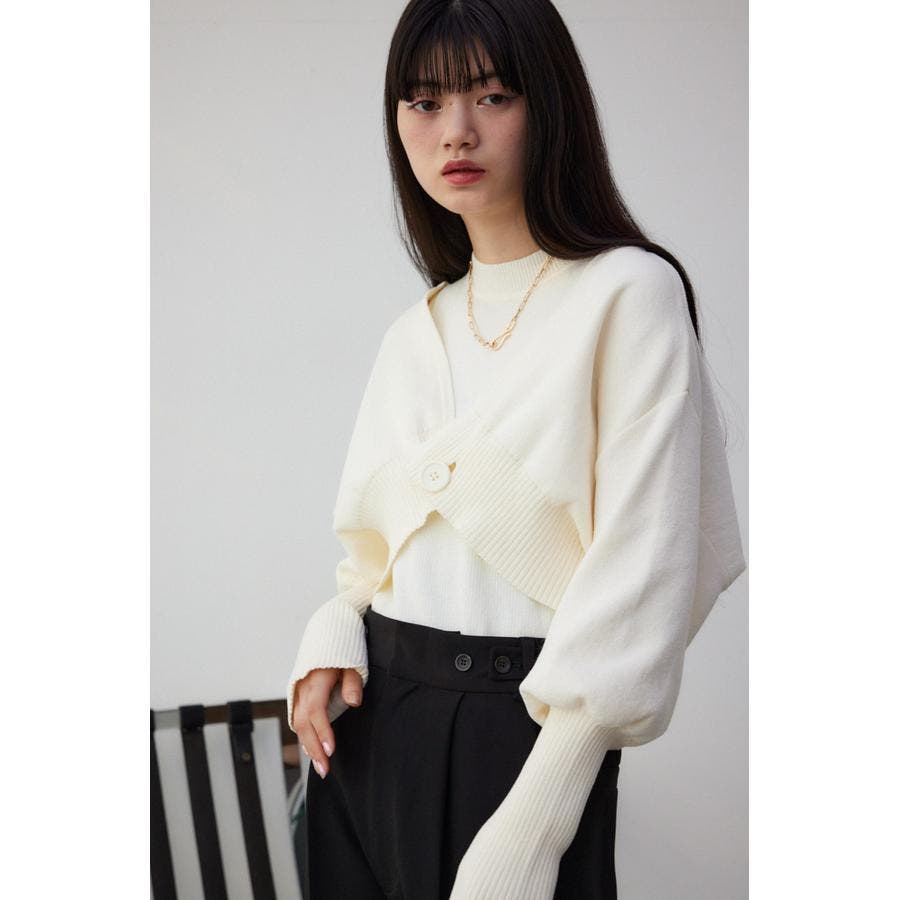 ・インナーのニットタンクはアメスリに近い形にすることで、アンサンブルで着用したときに、ちらっと肩が見えるデザインになっています。肩幅のサイズによって見えない場合もあるので、その場合はカーディガンを抜いて着用するのがおすすめです。