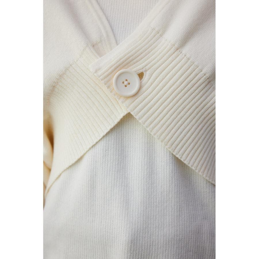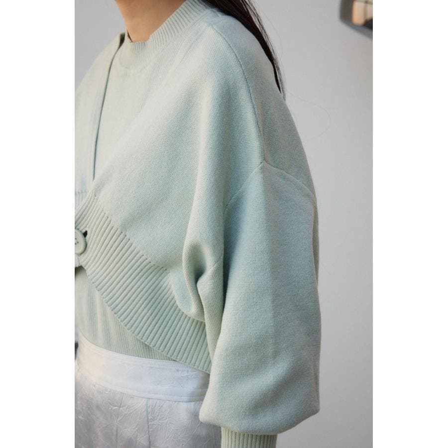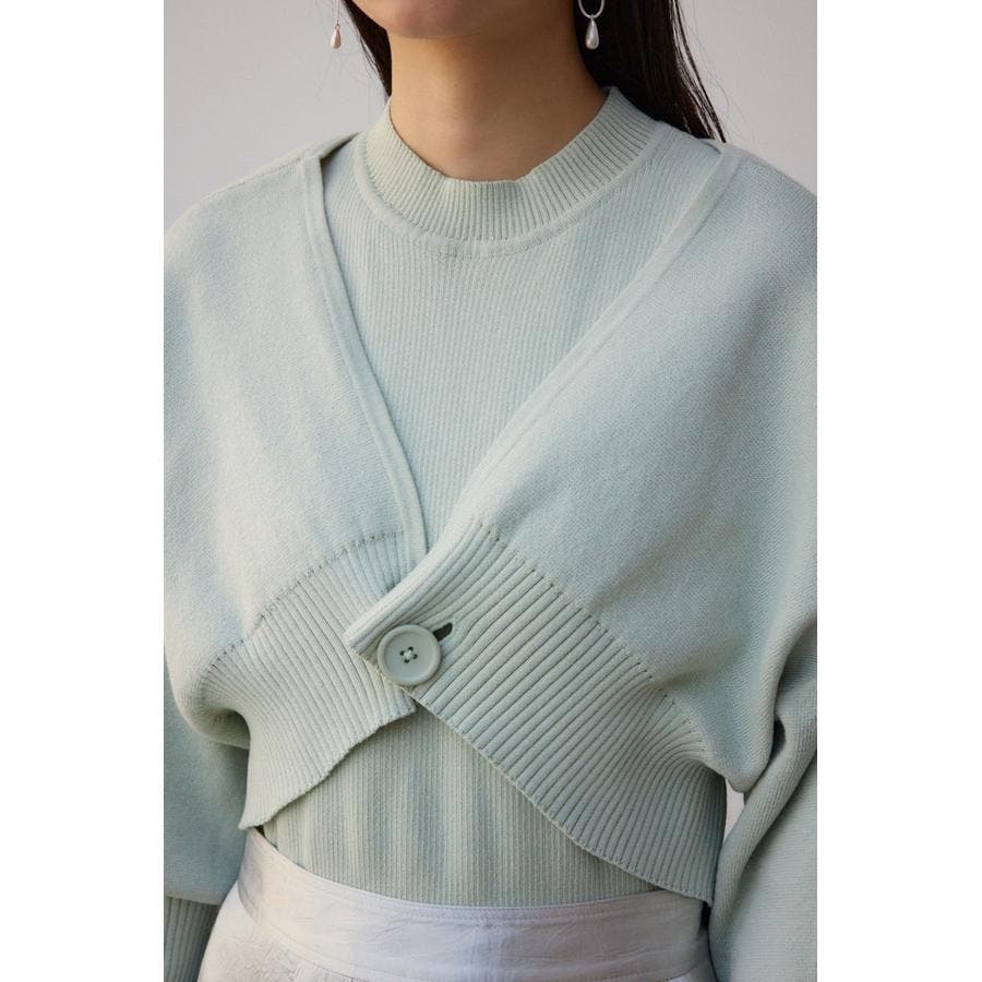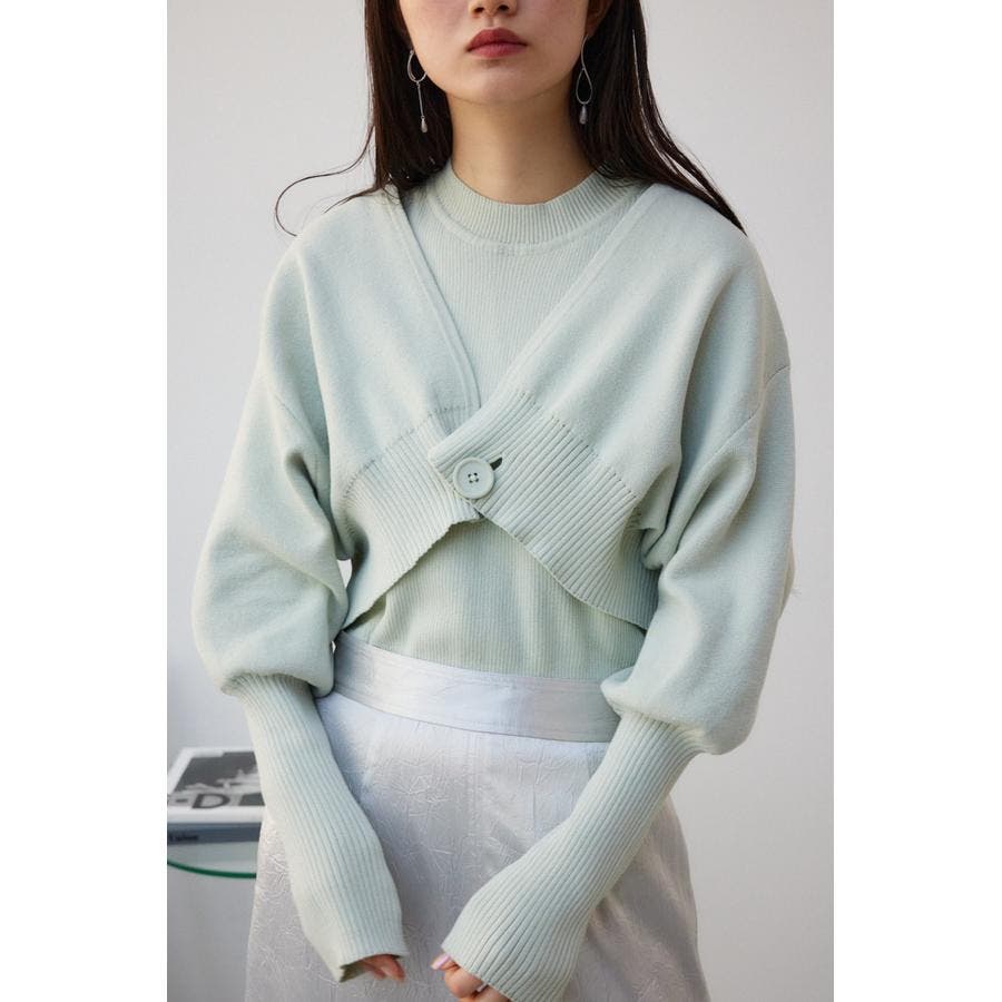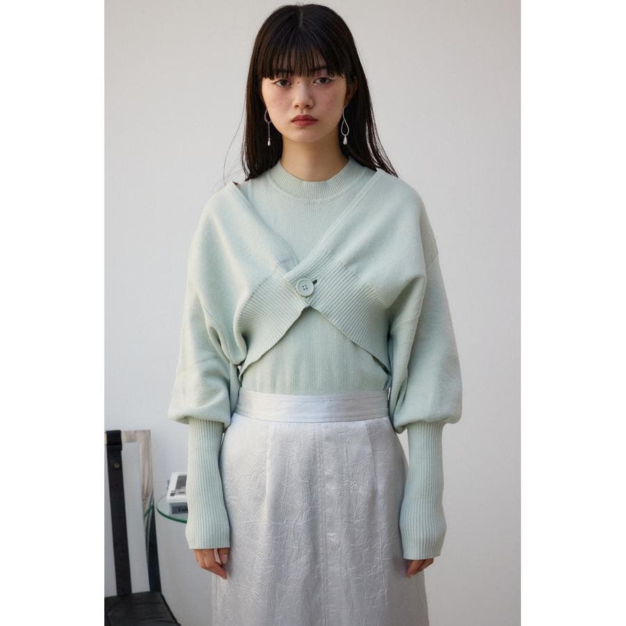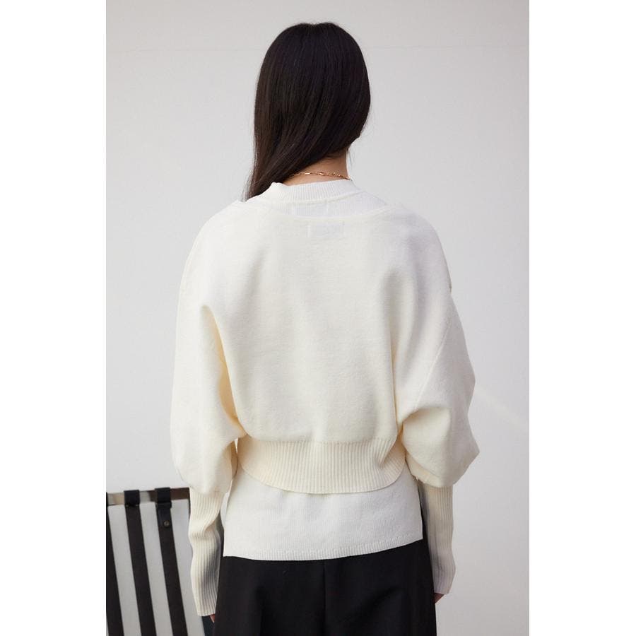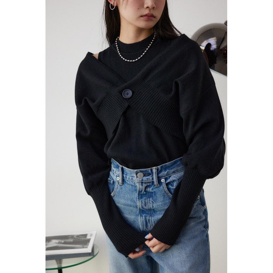 ・インナーのニットタンクはアメスリに近い形にすることで、アンサンブルで着用したときに、ちらっと肩が見えるデザインになっています。肩幅のサイズによって見えない場合もあるので、その場合はカーディガンを抜いて着用するのがおすすめです。