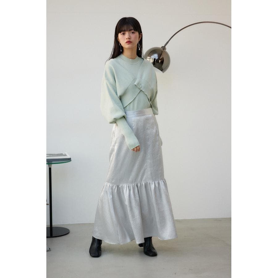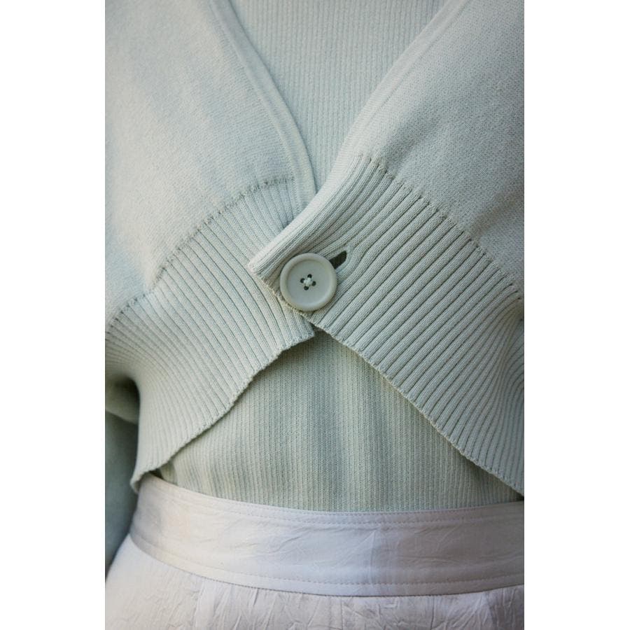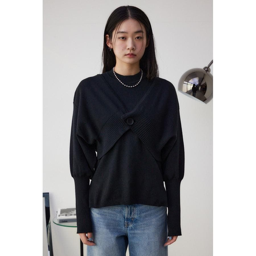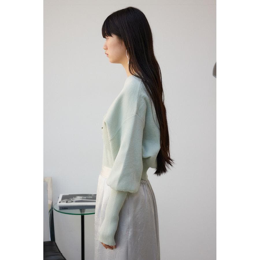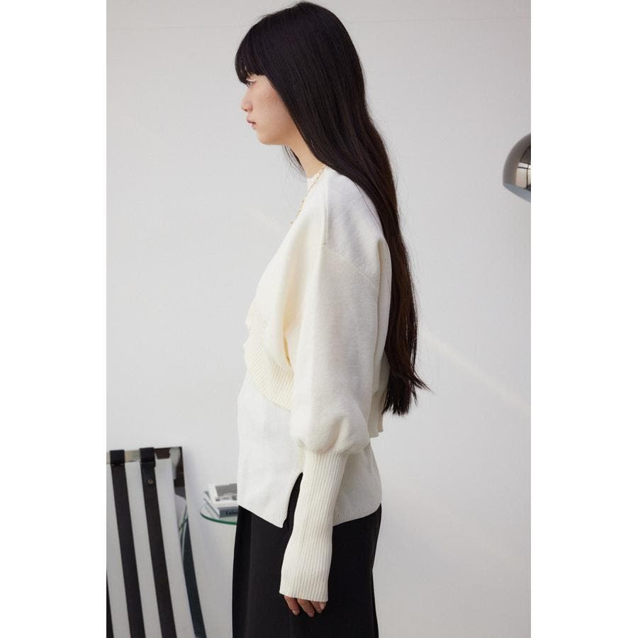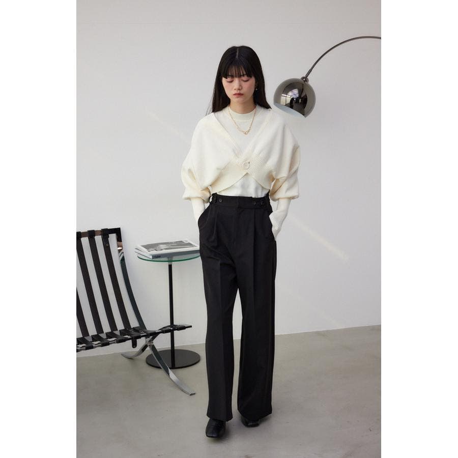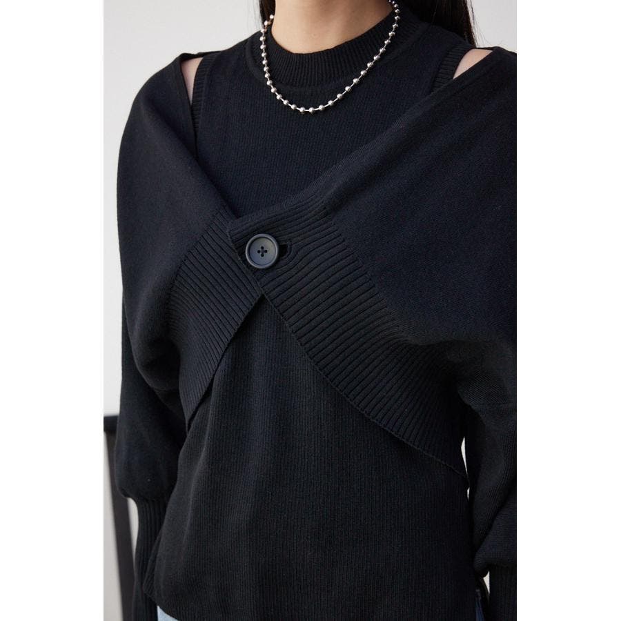 ・インナーのニットタンクはアメスリに近い形にすることで、アンサンブルで着用したときに、ちらっと肩が見えるデザインになっています。肩幅のサイズによって見えない場合もあるので、その場合はカーディガンを抜いて着用するのがおすすめです。