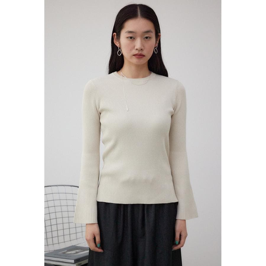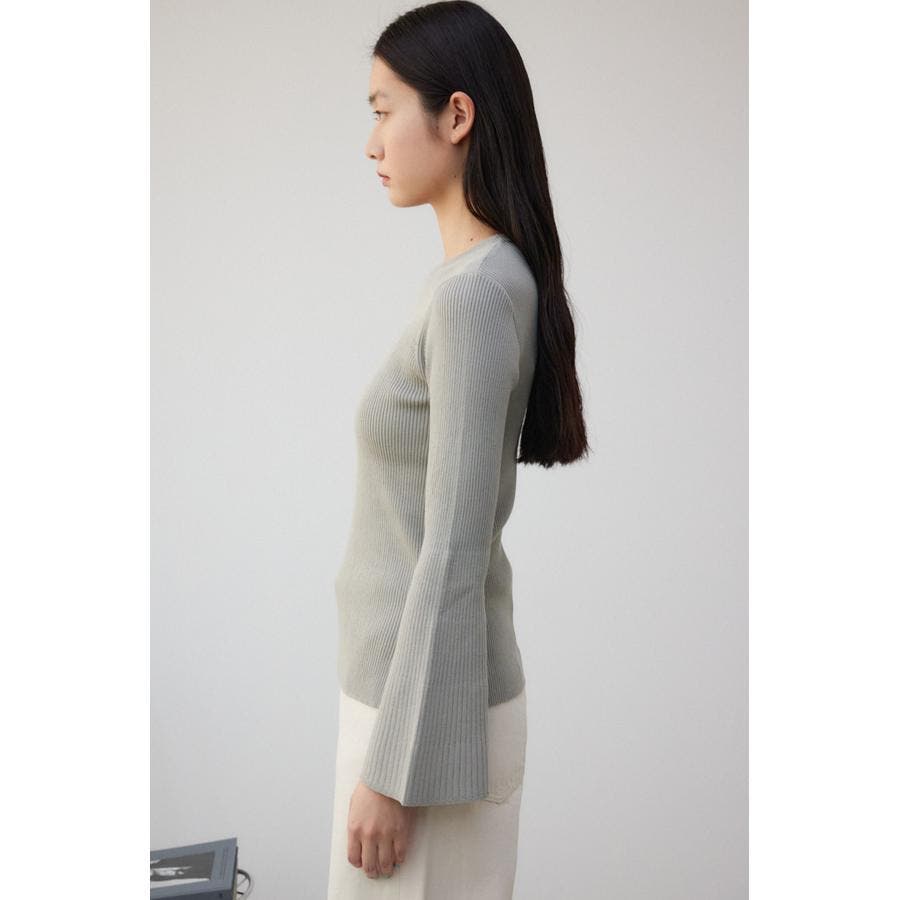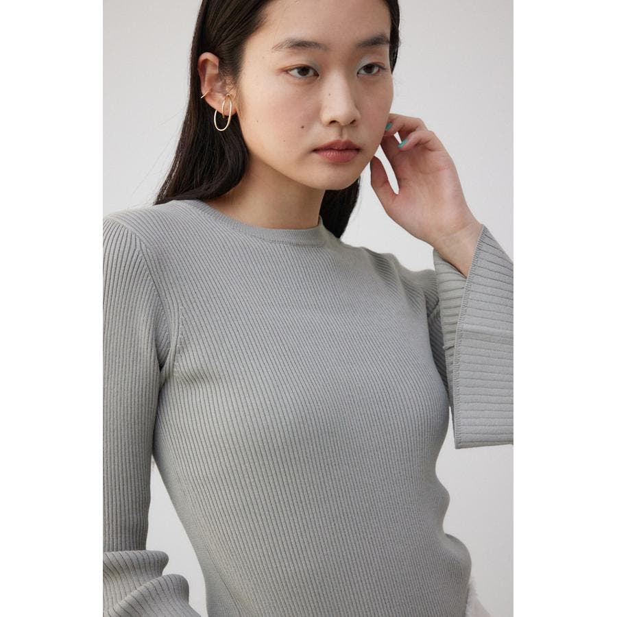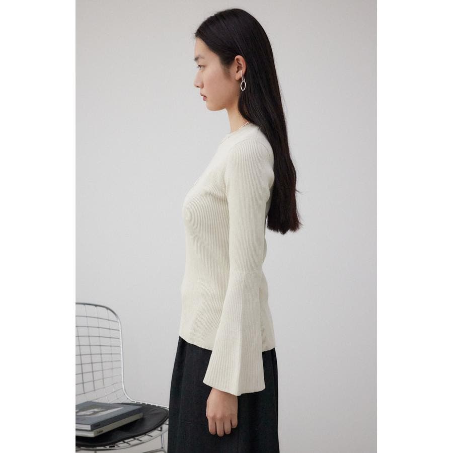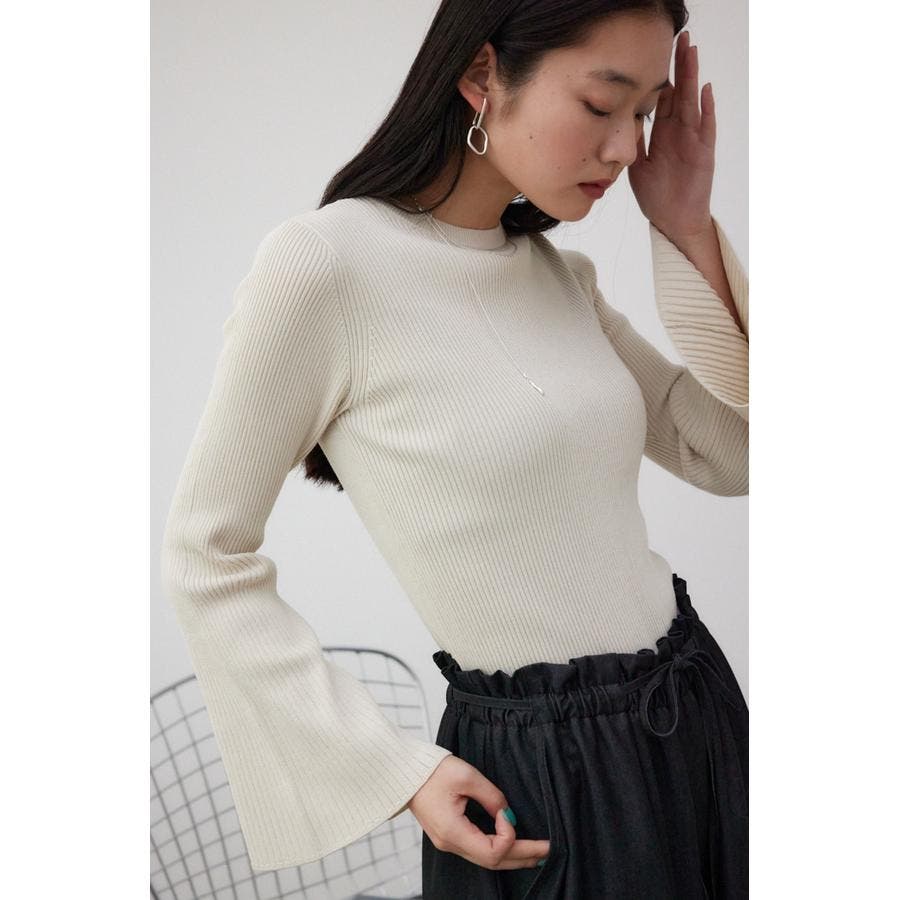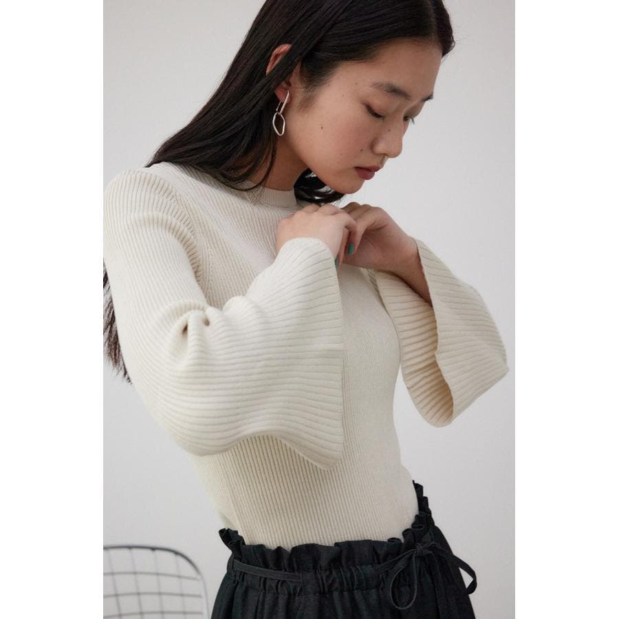 ・肘あたりからリブの編地を変えてフレアスリーブにしたニットアイテムです。