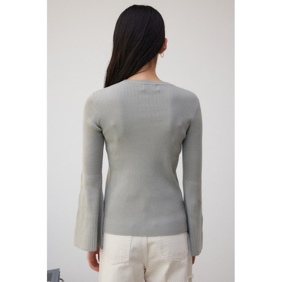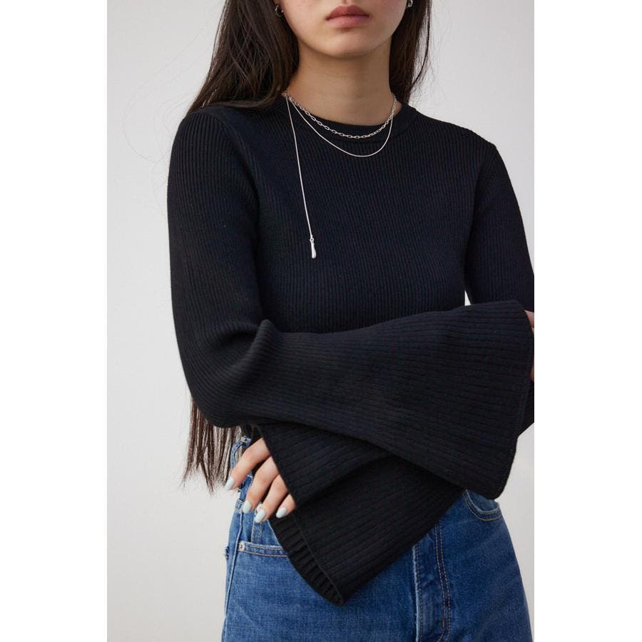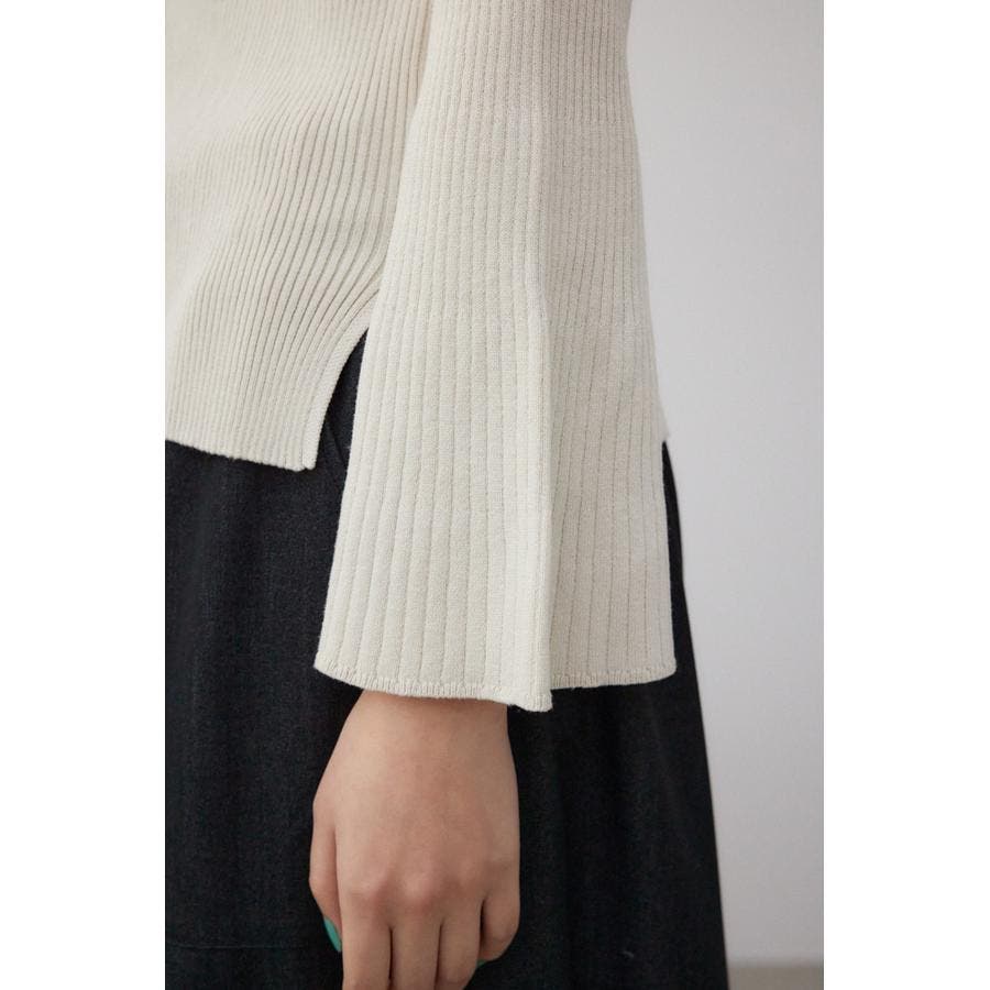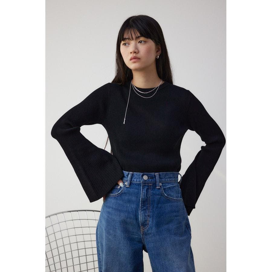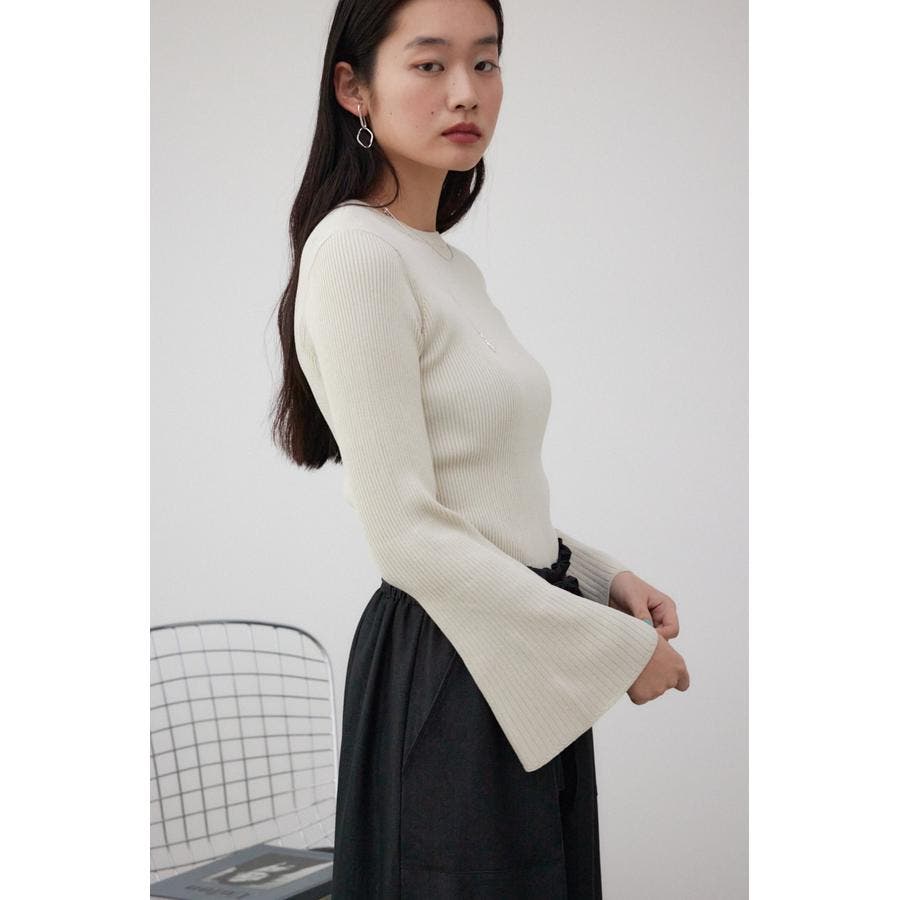 ・肘あたりからリブの編地を変えてフレアスリーブにしたニットアイテムです。