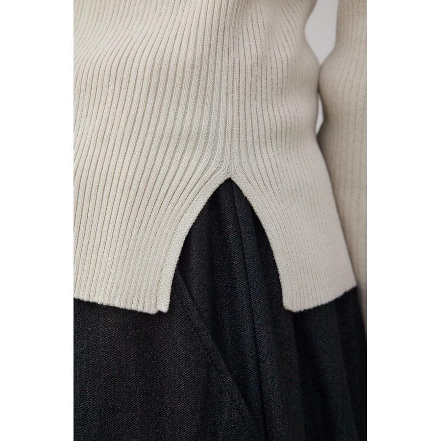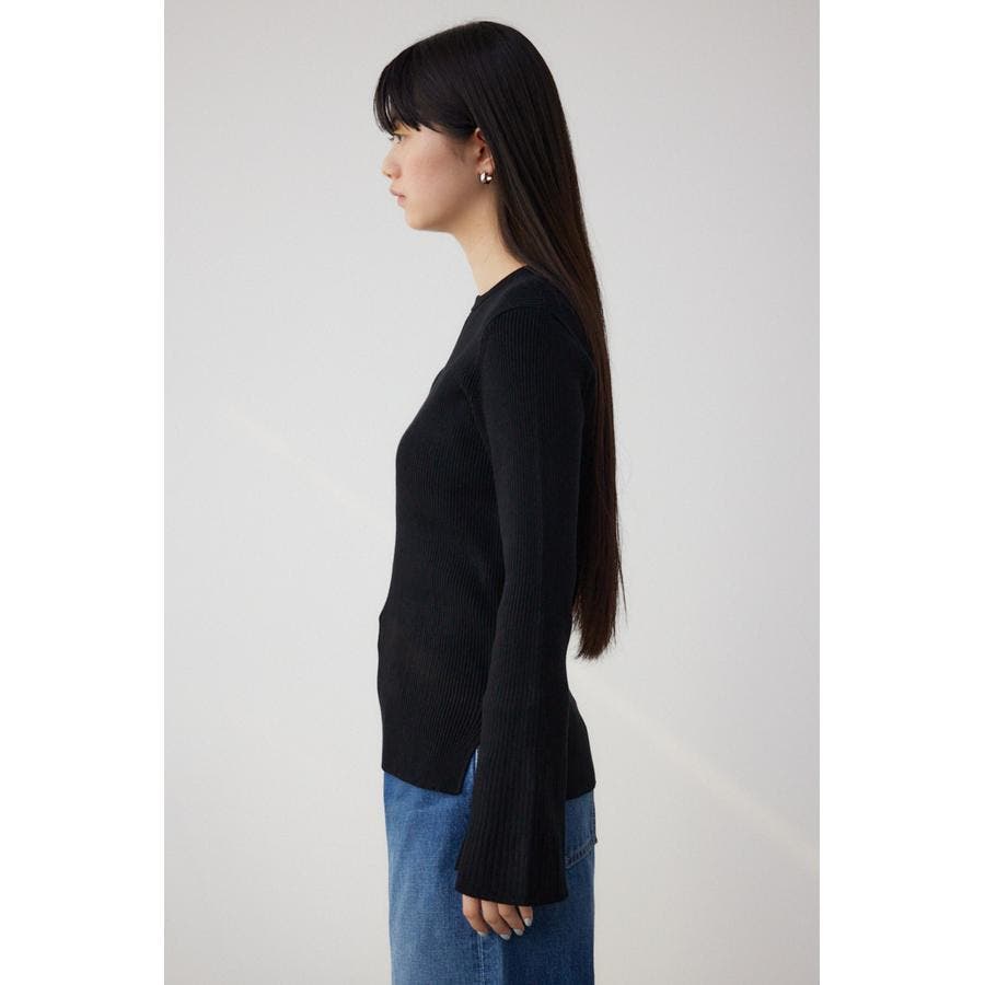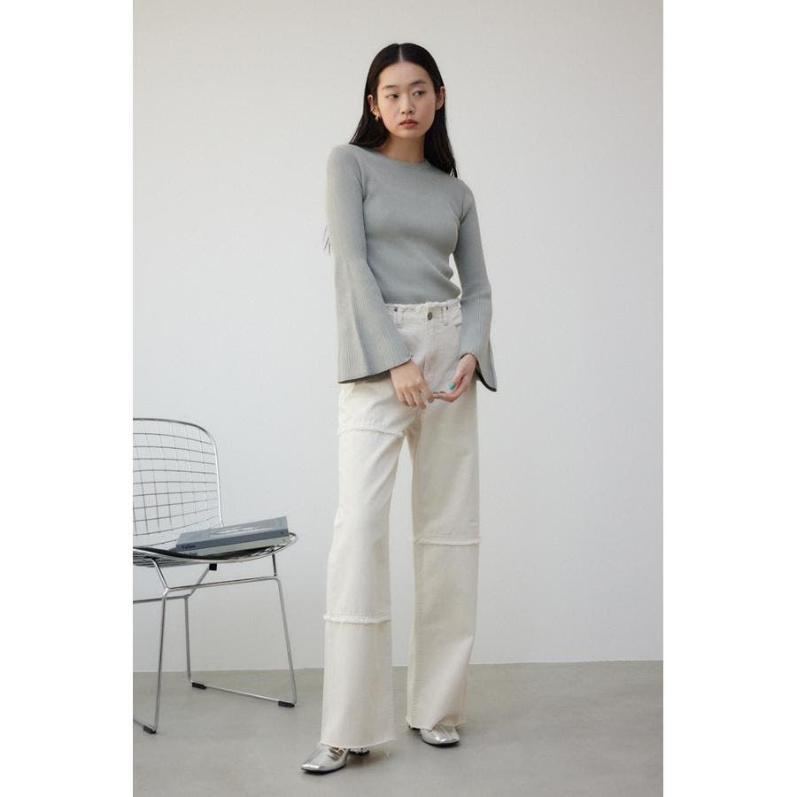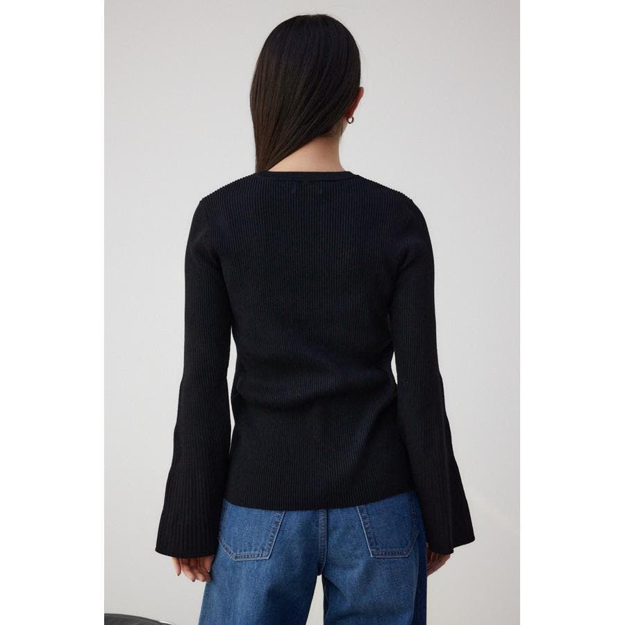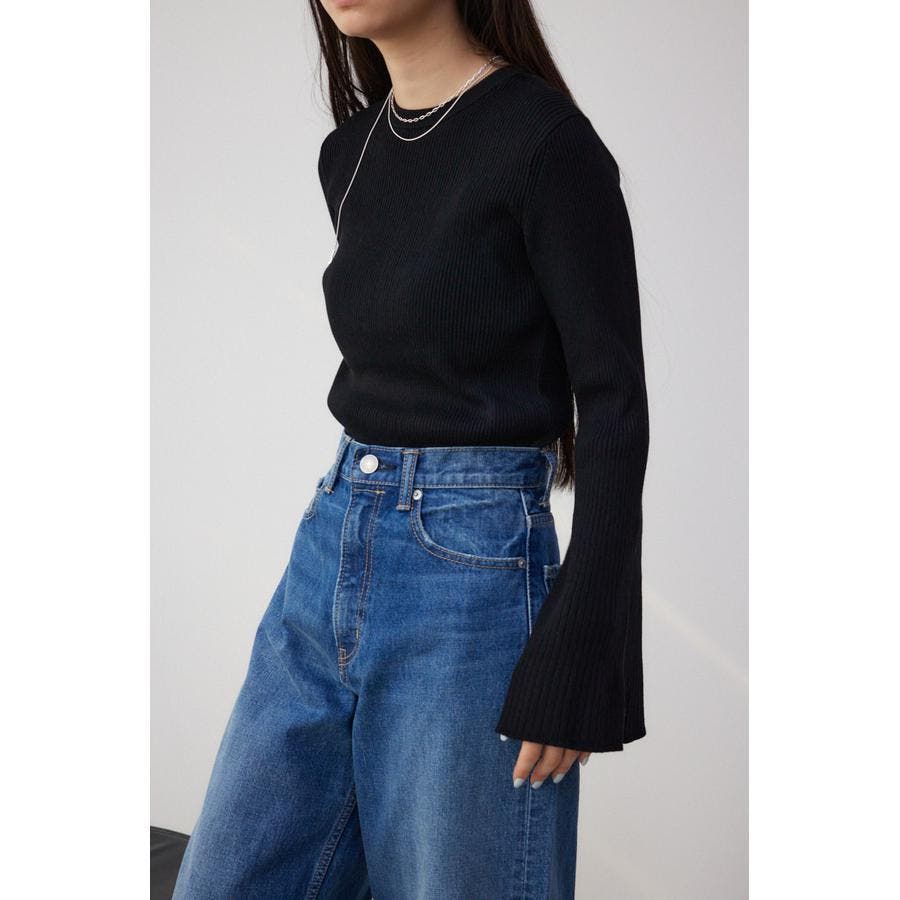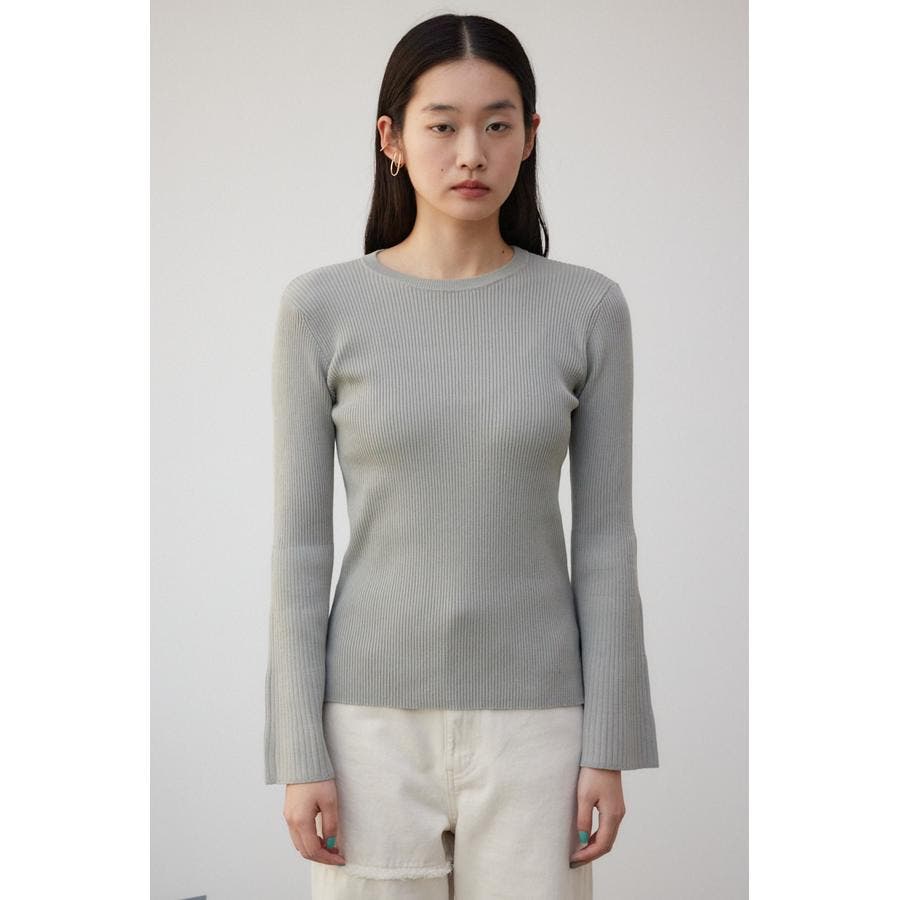 ・肘あたりからリブの編地を変えてフレアスリーブにしたニットアイテムです。