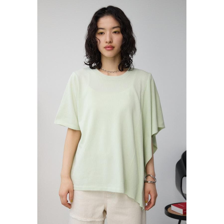 ■商品(デザイン)ポイント: サイドのショルダーから裾にかけてラッフルが付いたニットです。