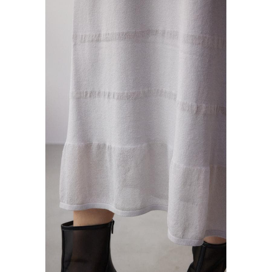 ・ワンピースはストレッチ糸をプレーティングして編み立てることで透け感を無くし、一枚着として着用できる肉感に仕上げた素材を使用。