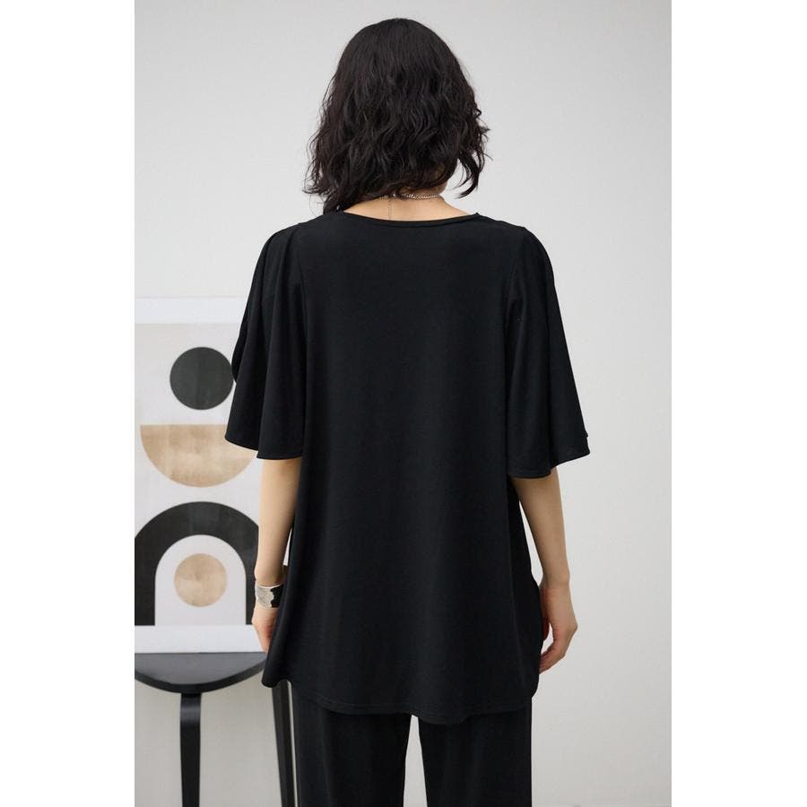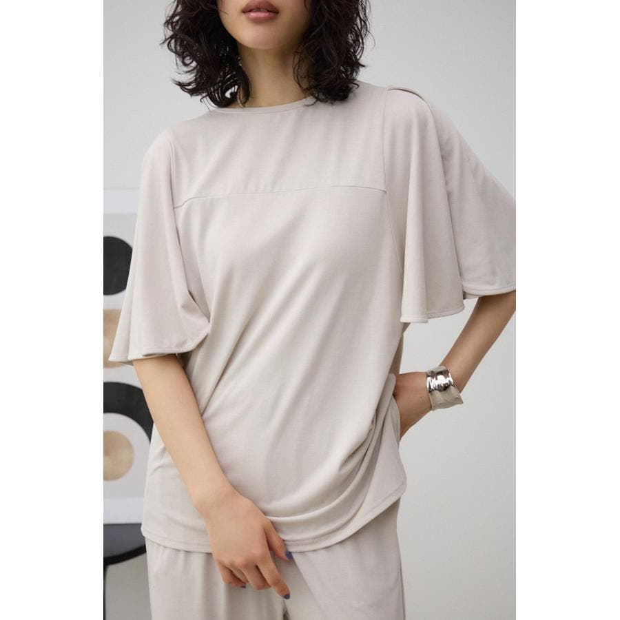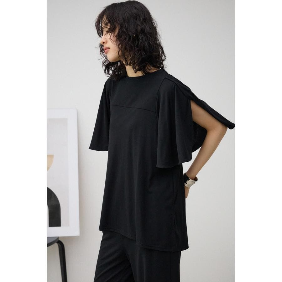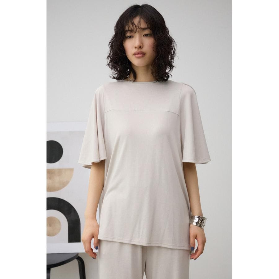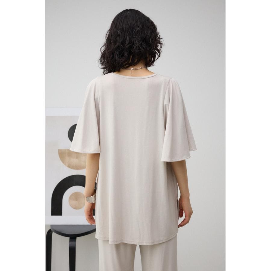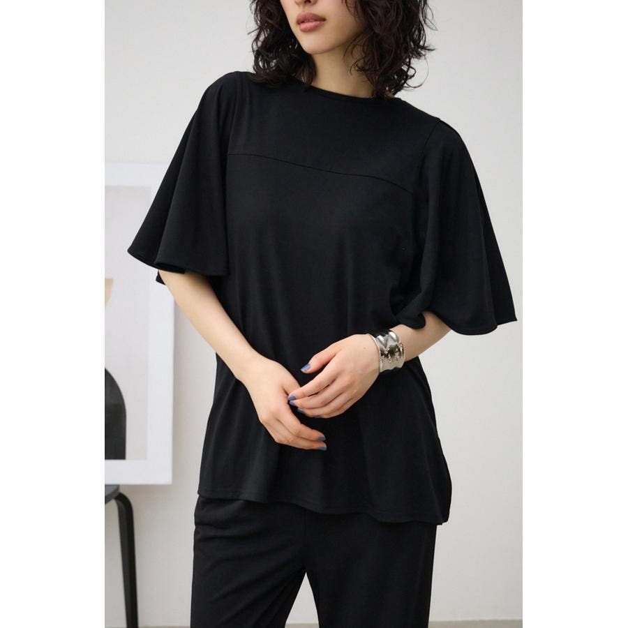 落ち感のある素材とフレアスリーブがマッチし、着るだけで上品に着こなせるアイテム。