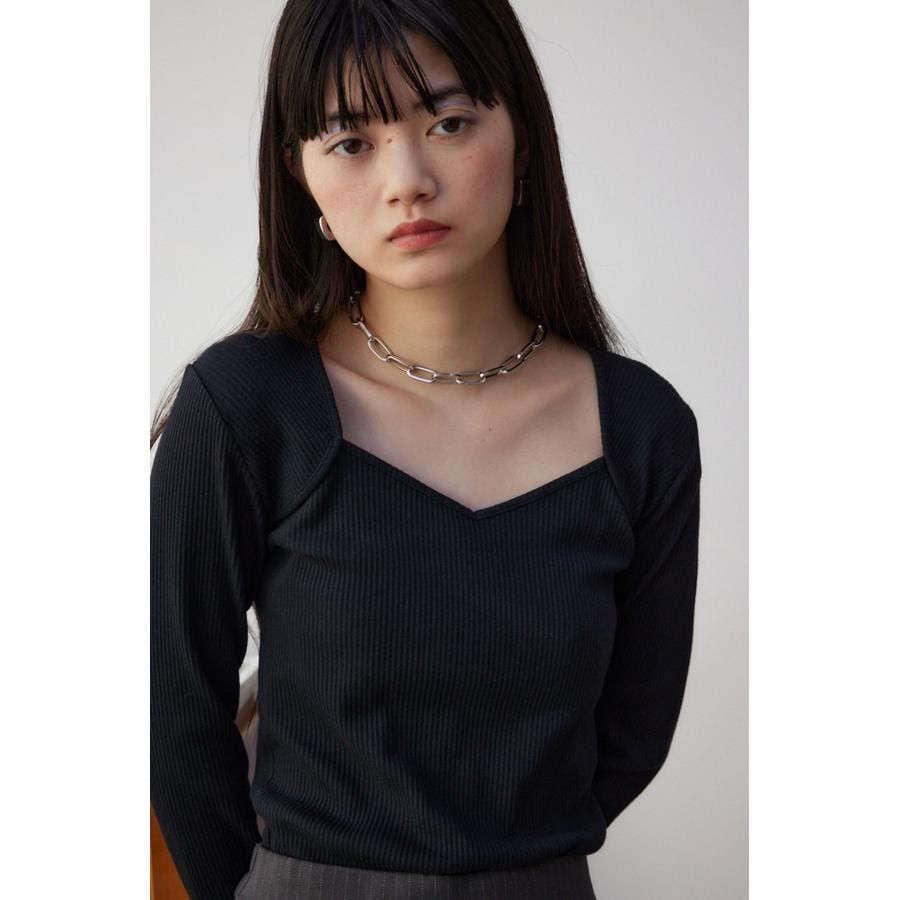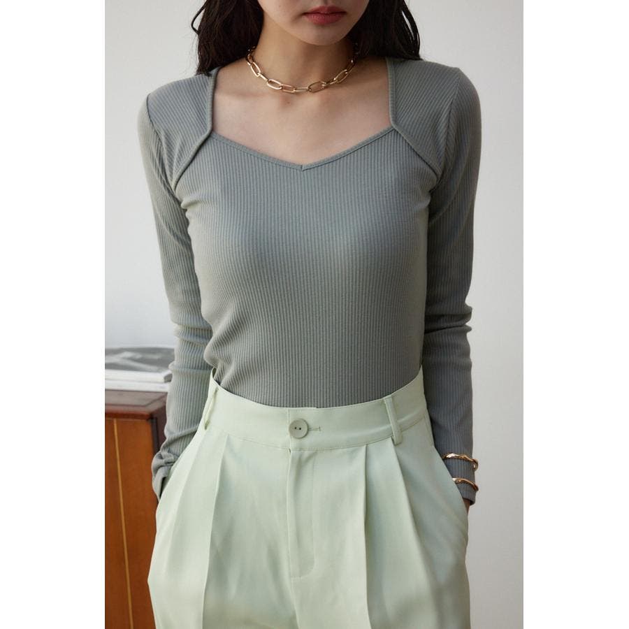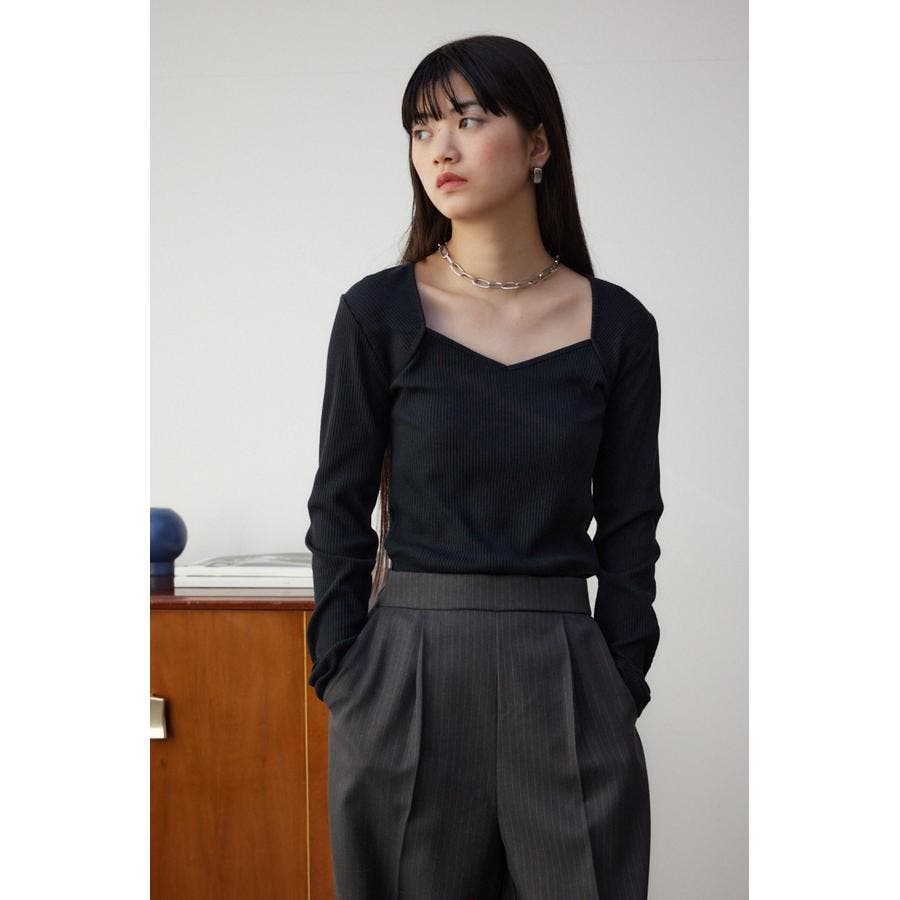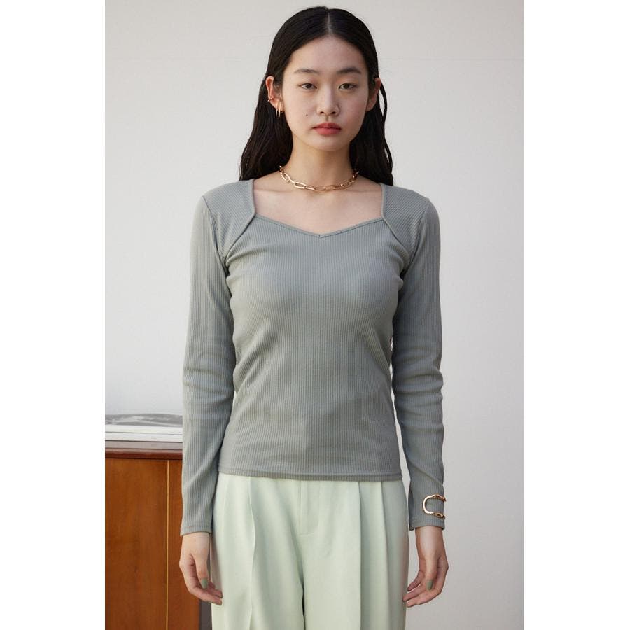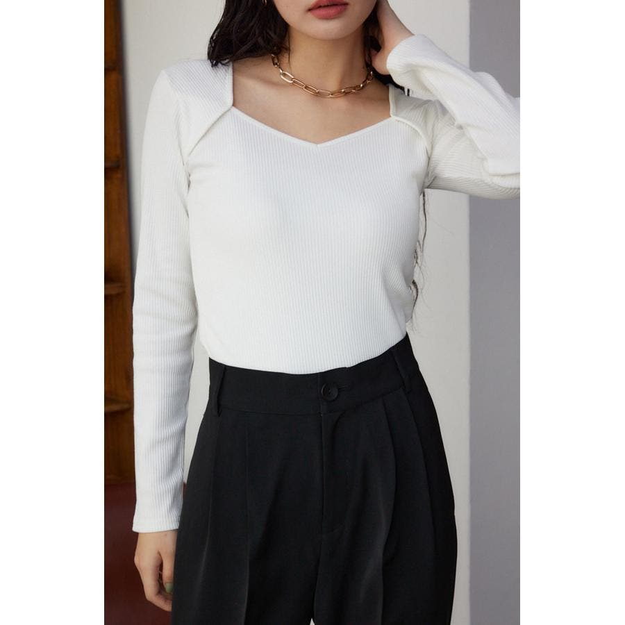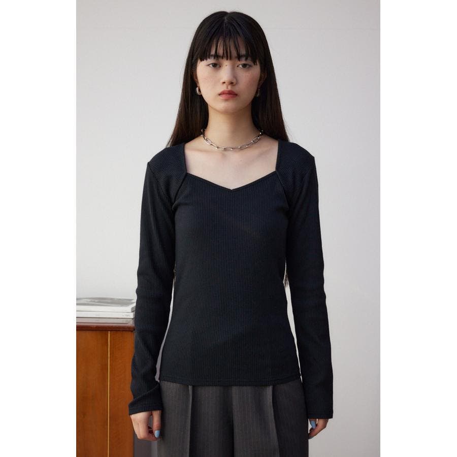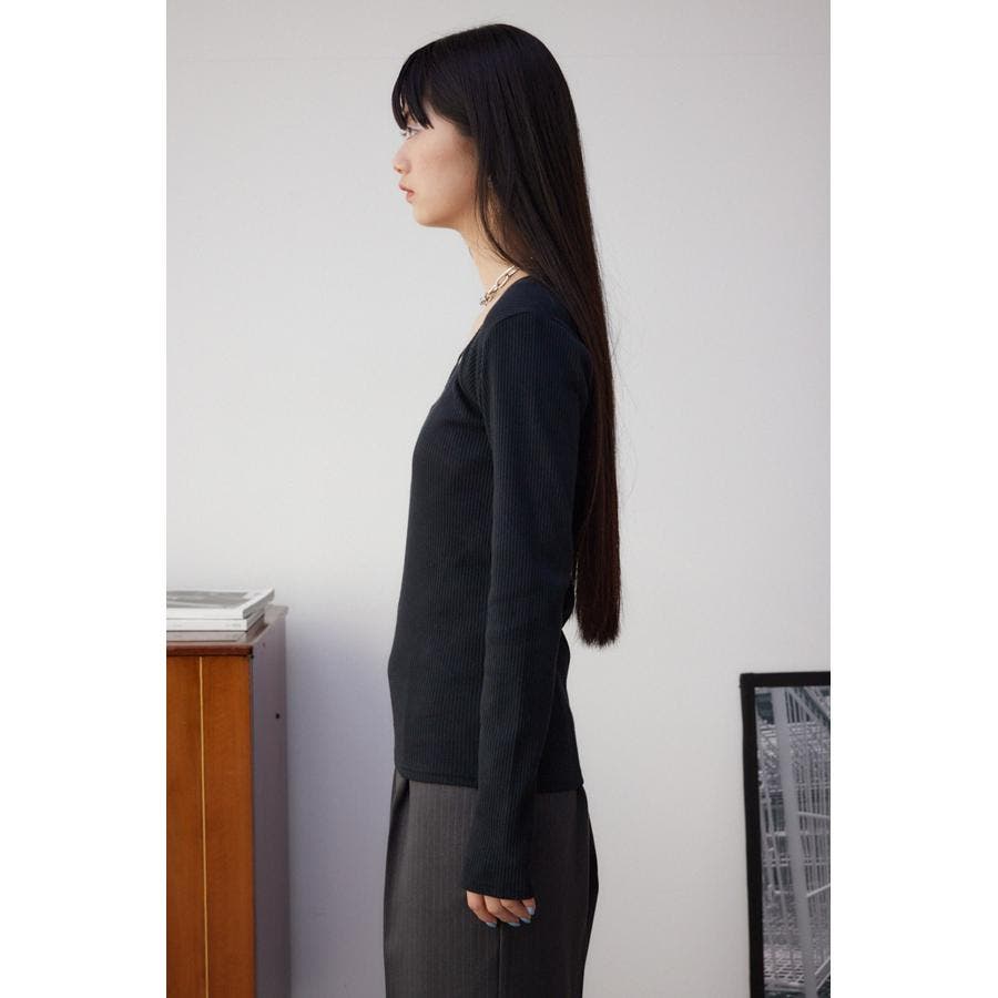 ダイヤネック長袖リブトップス