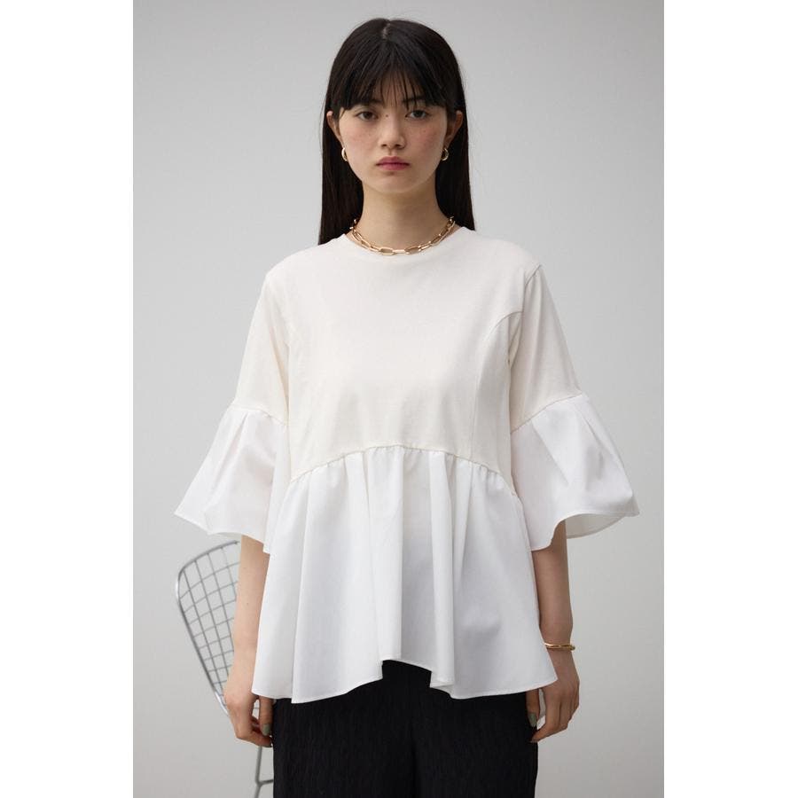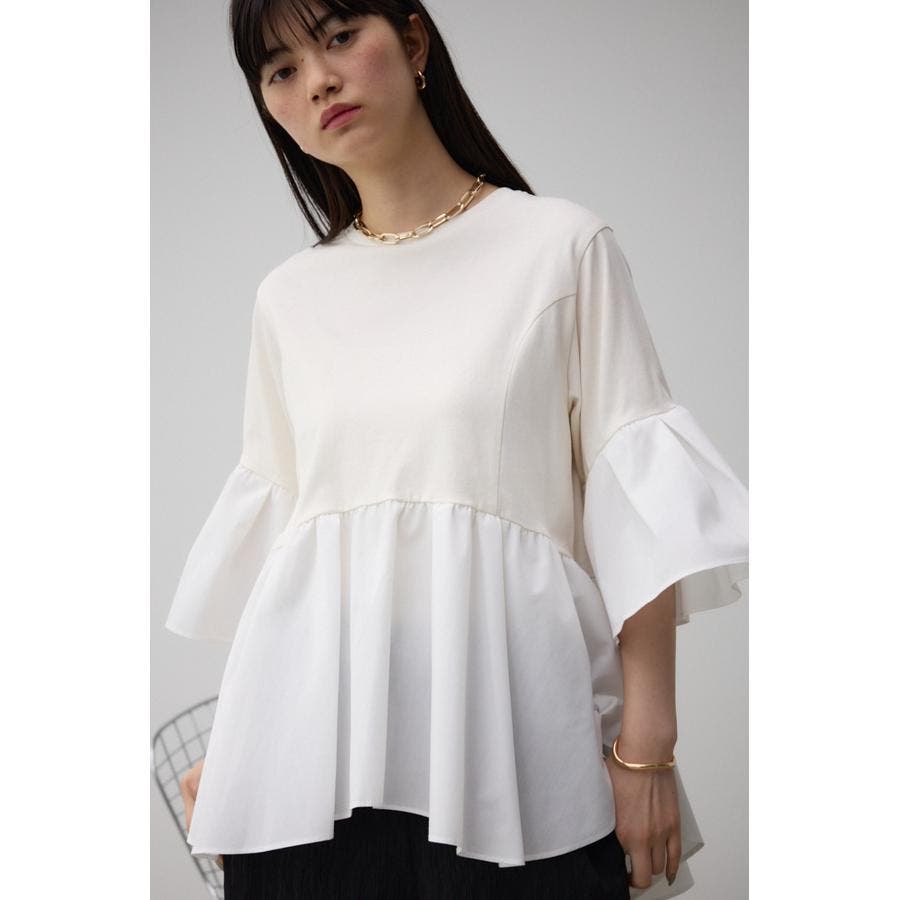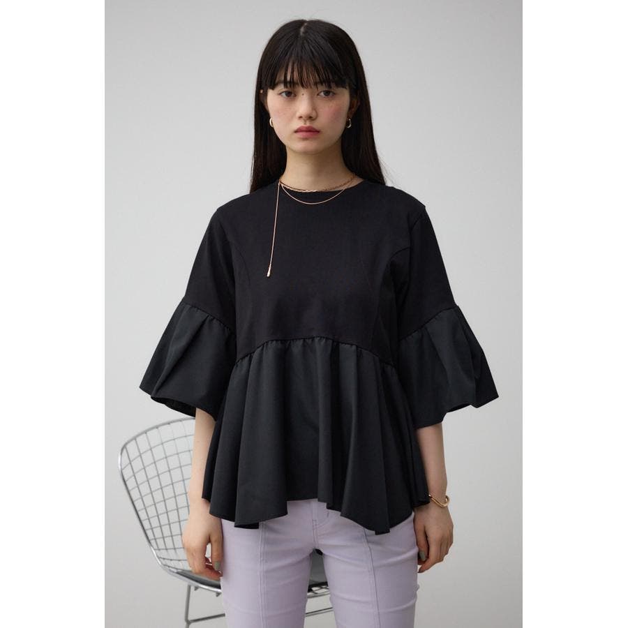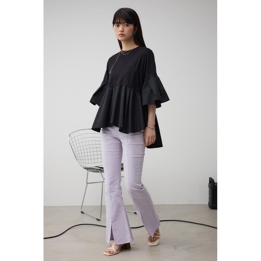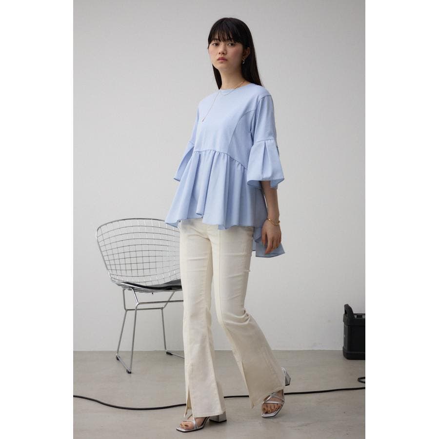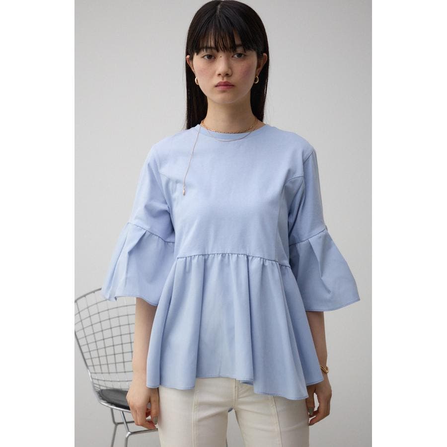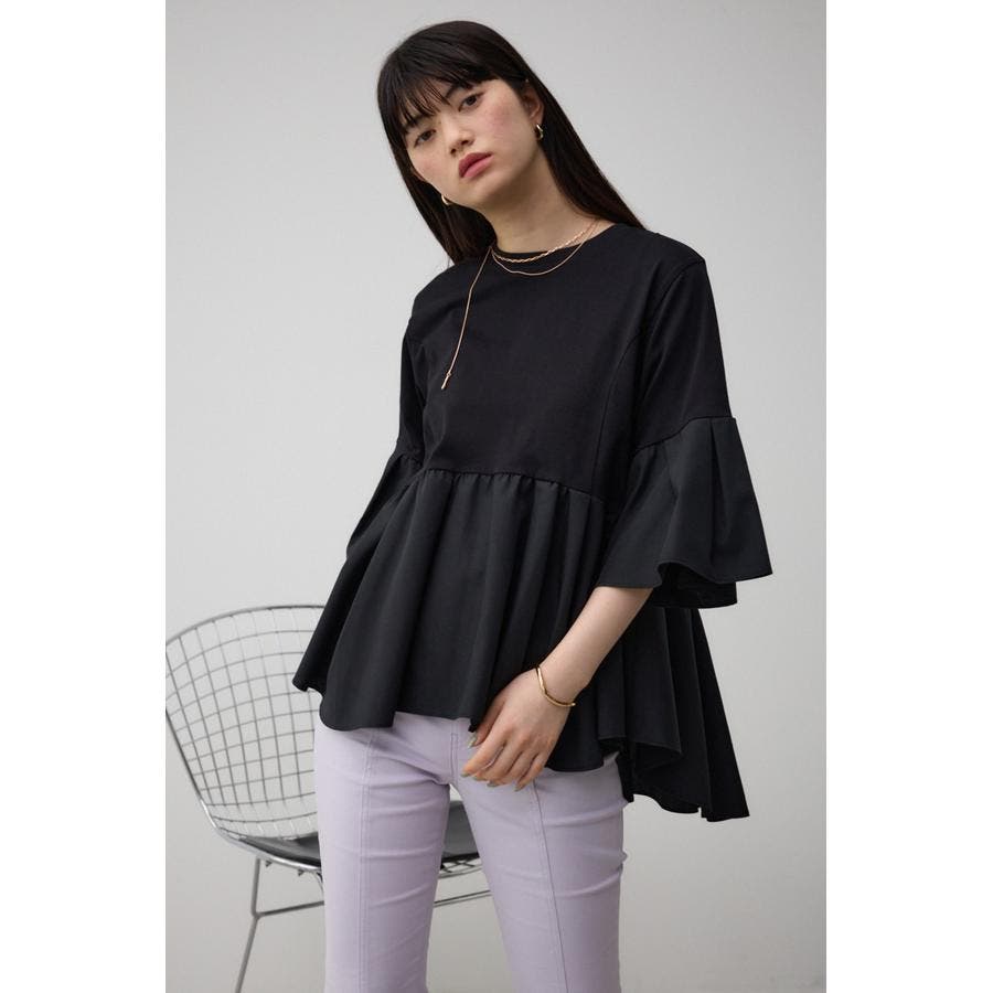 袖フレアペプラムカットトップス