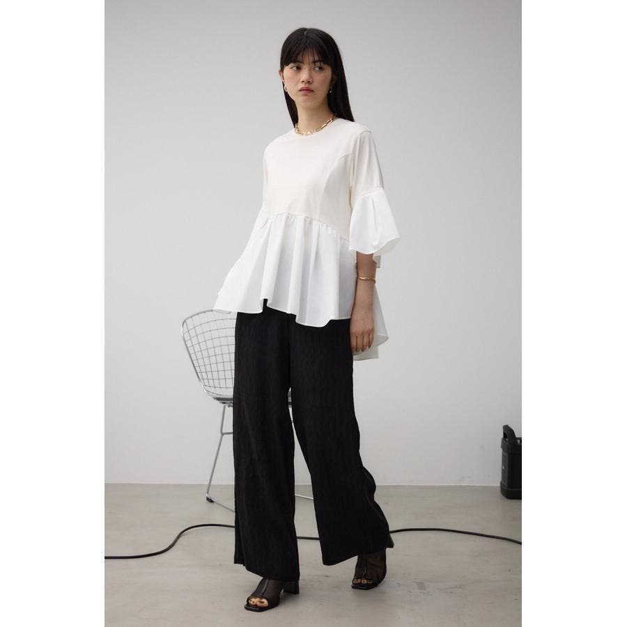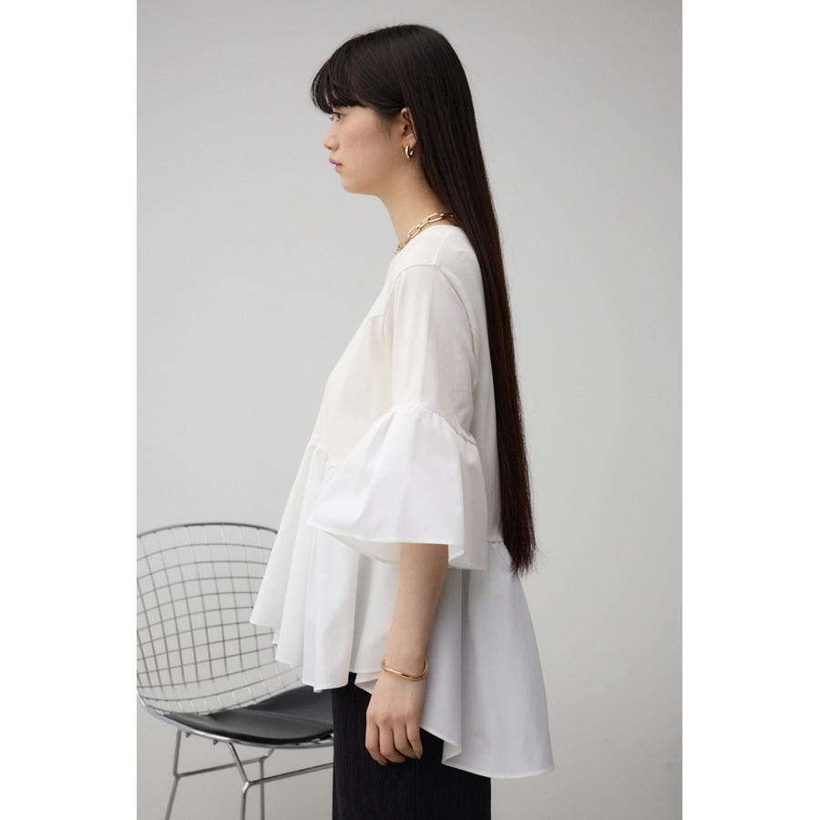 ■商品(デザイン)ポイント: フレアスリーブとペプラムデザインが1枚着るだけでサマになるトップスです。