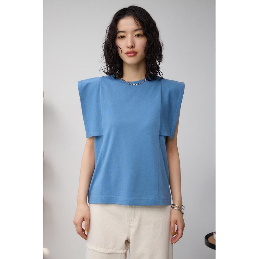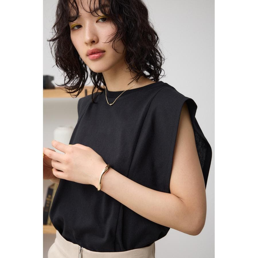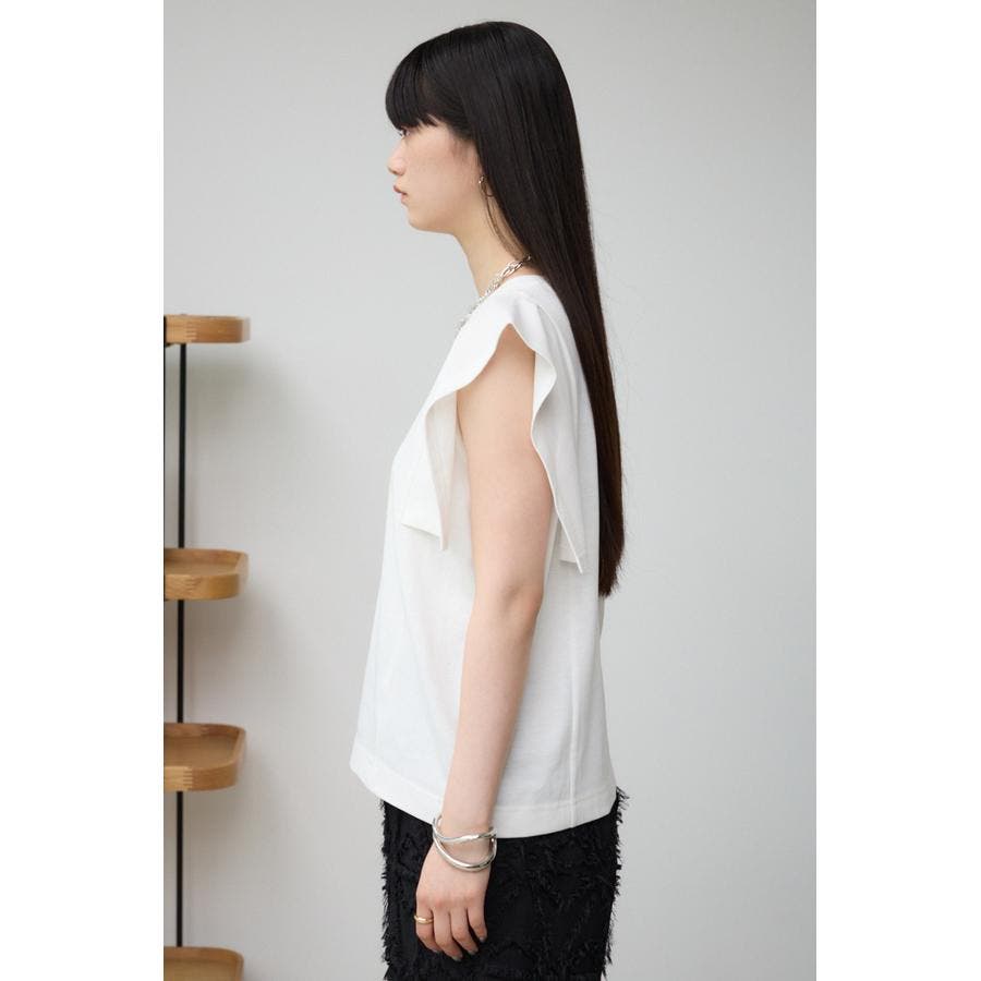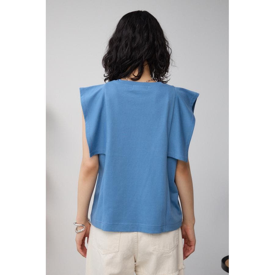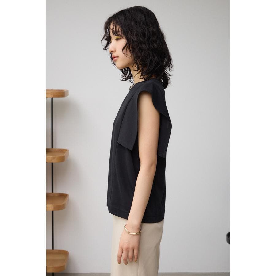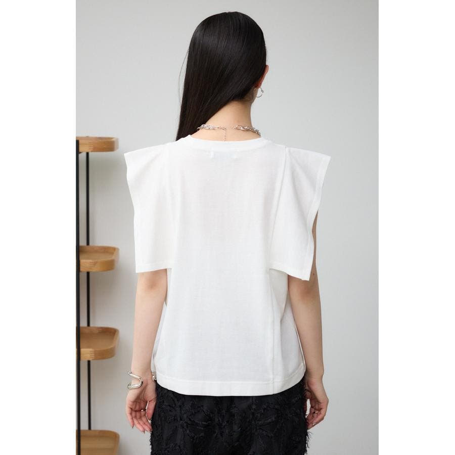 ■商品ディティール:袖部分に施したスクエアスリーブデザインが気になる肩回り、二の腕をすっきりと見せてくれるカットトップス。