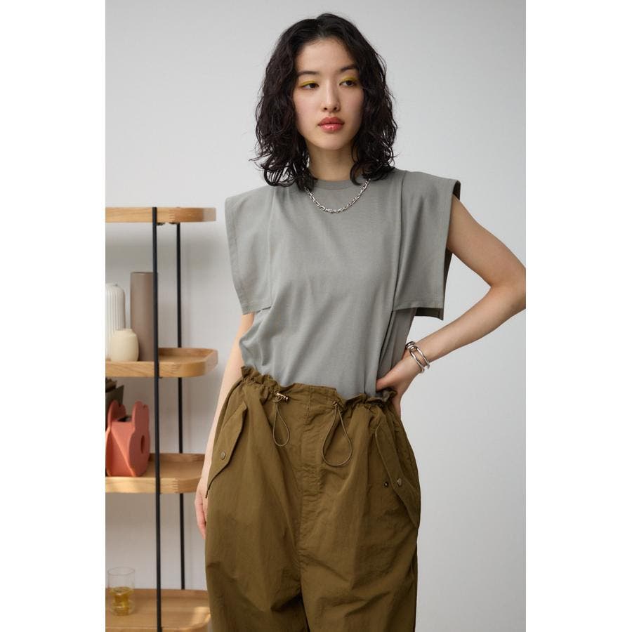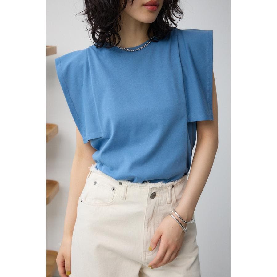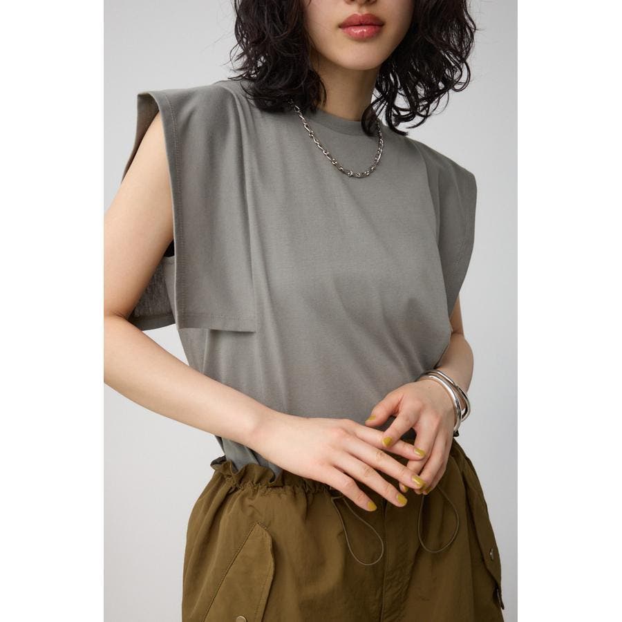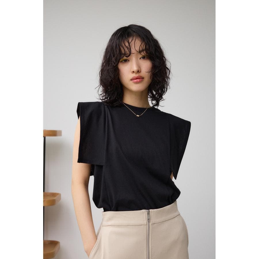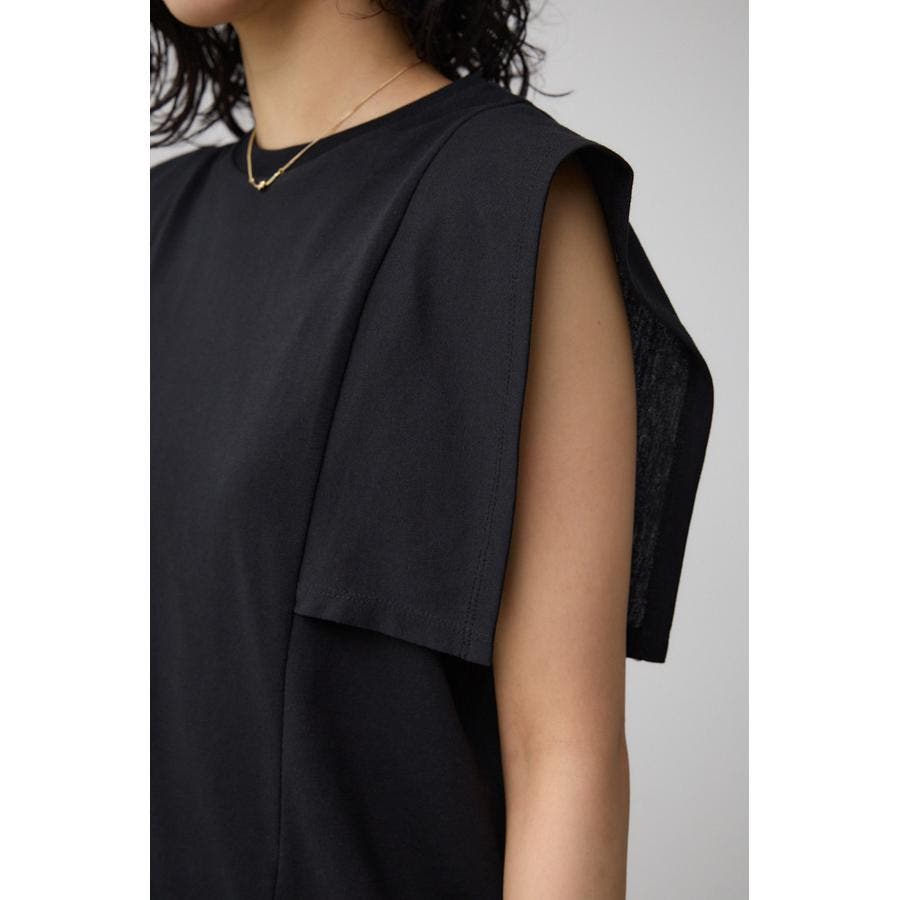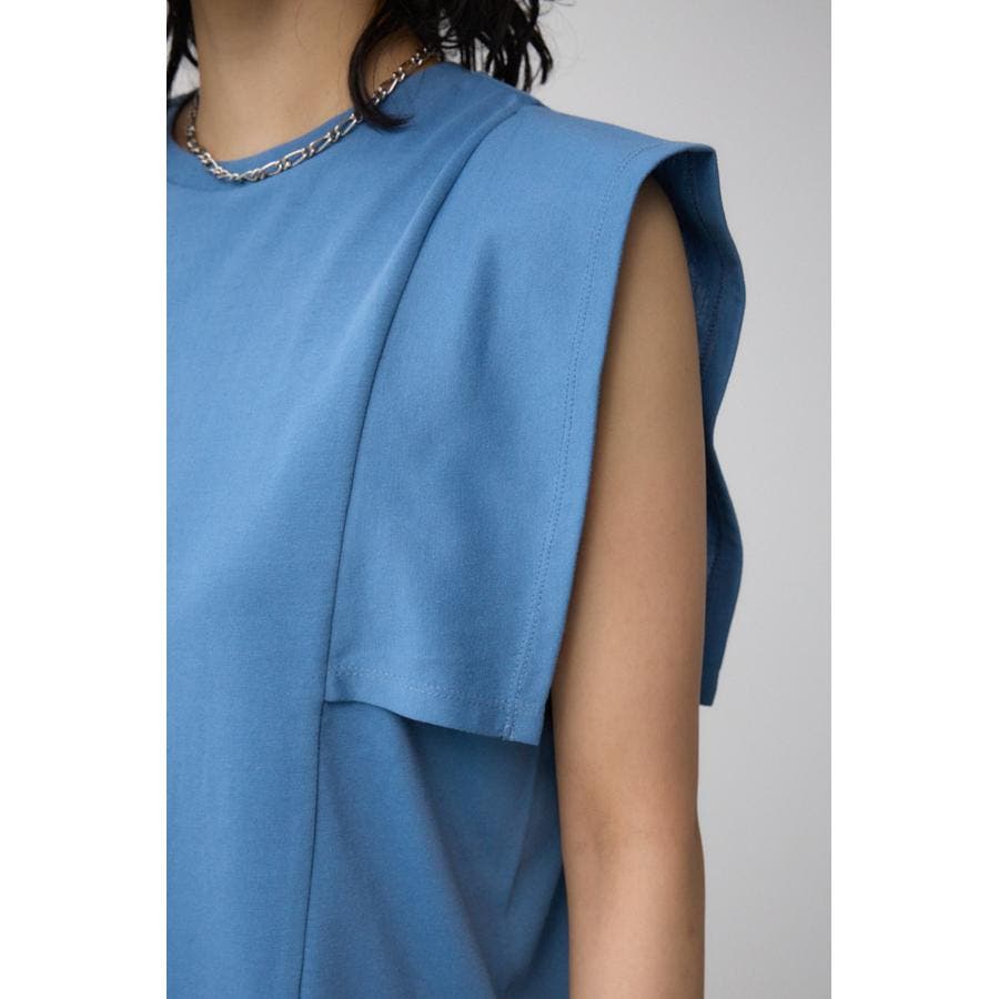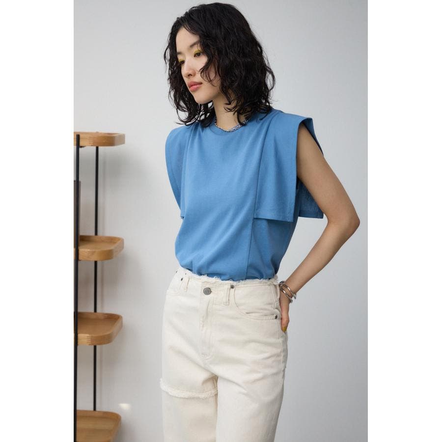 ■商品ディティール:袖部分に施したスクエアスリーブデザインが気になる肩回り、二の腕をすっきりと見せてくれるカットトップス。