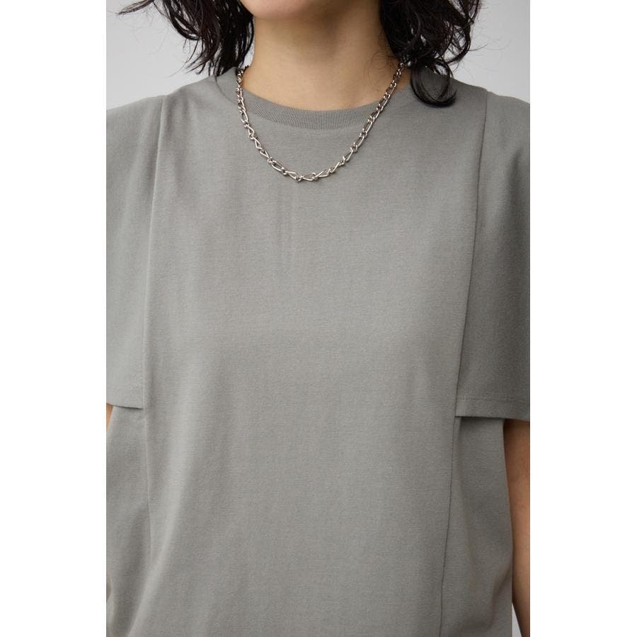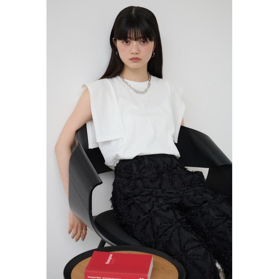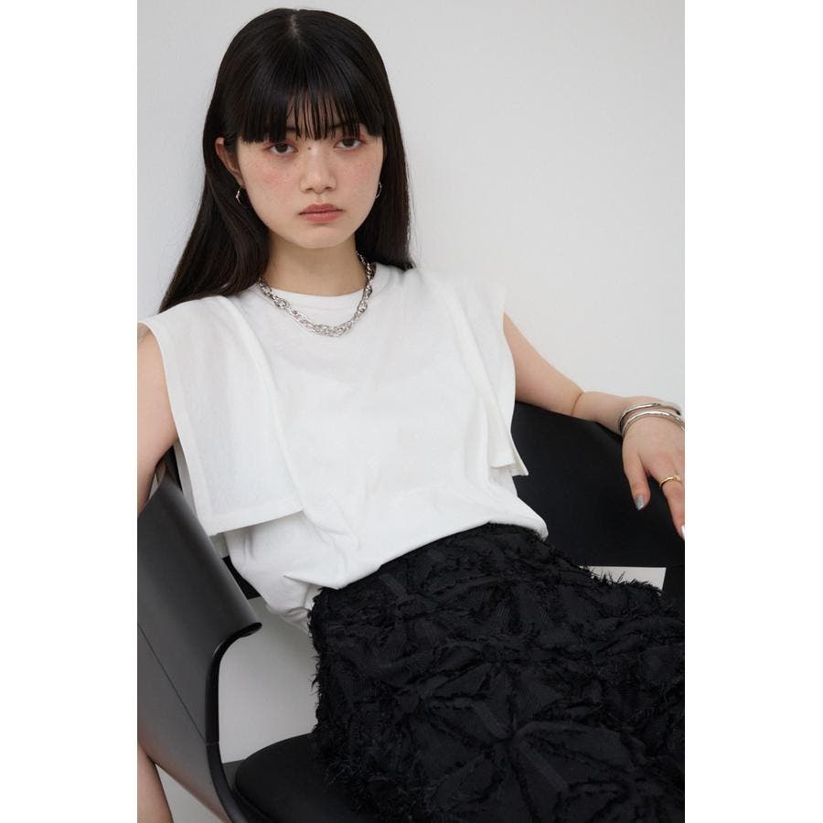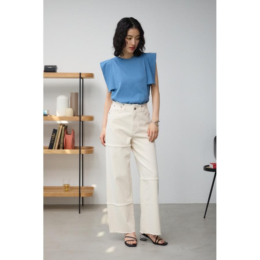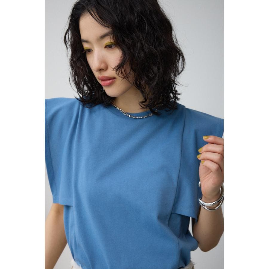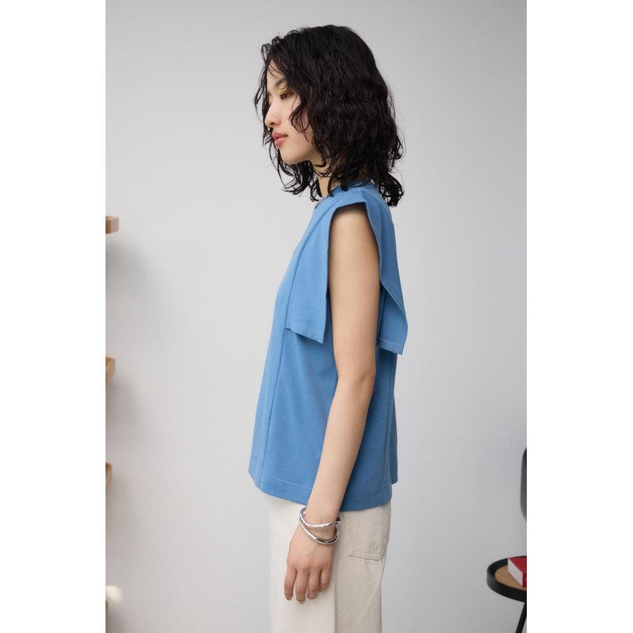■商品ディティール:袖部分に施したスクエアスリーブデザインが気になる肩回り、二の腕をすっきりと見せてくれるカットトップス。