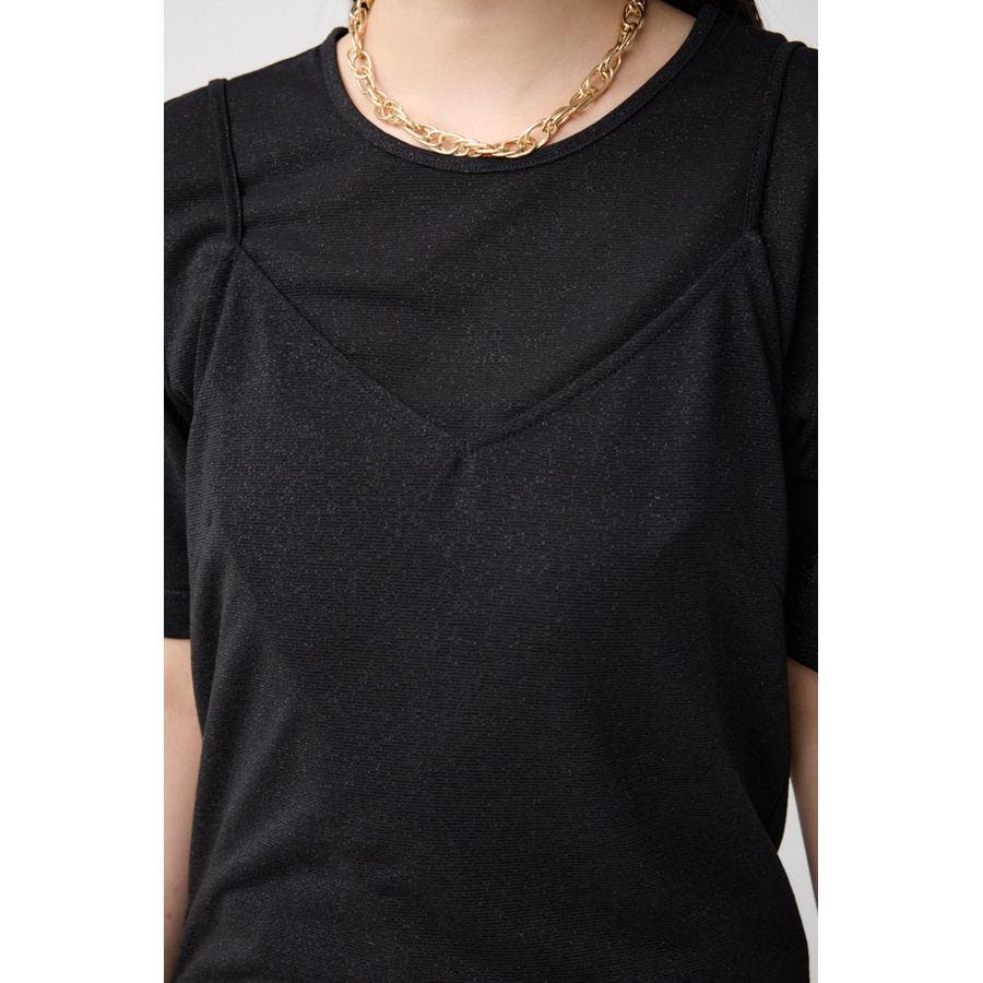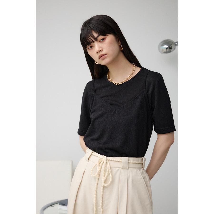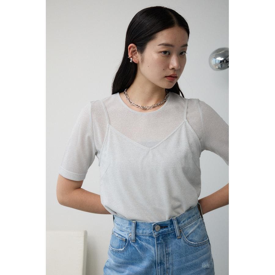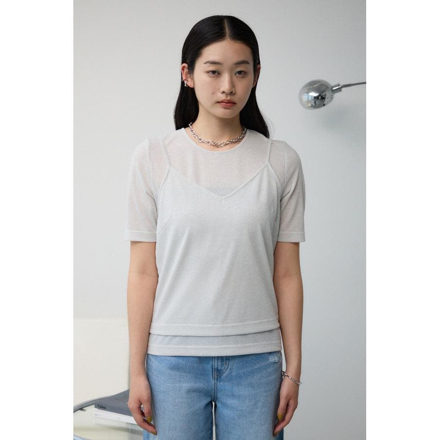 ■商品(デザイン)ポイント :トレンドのシアー×ラメ素材が可愛い、着回し抜群のレイヤードトップスです。