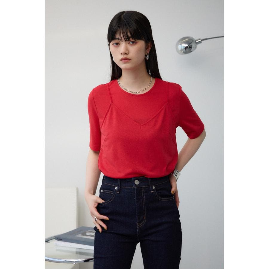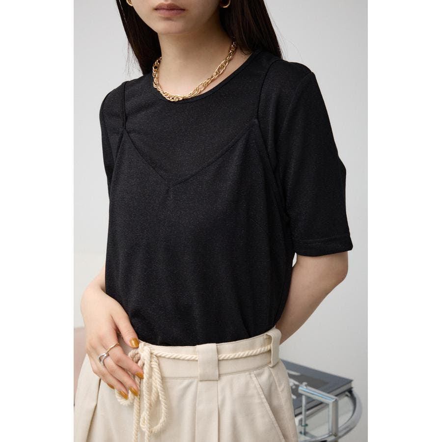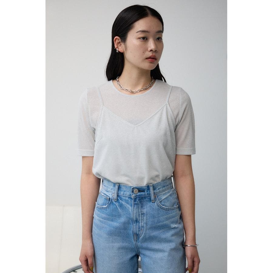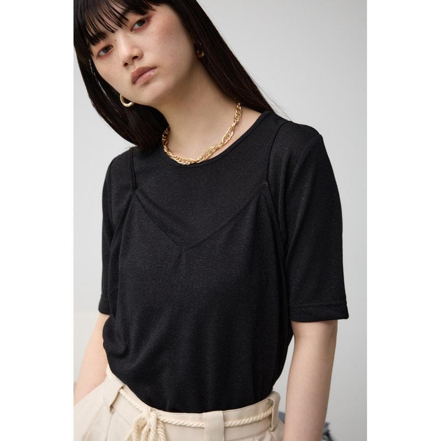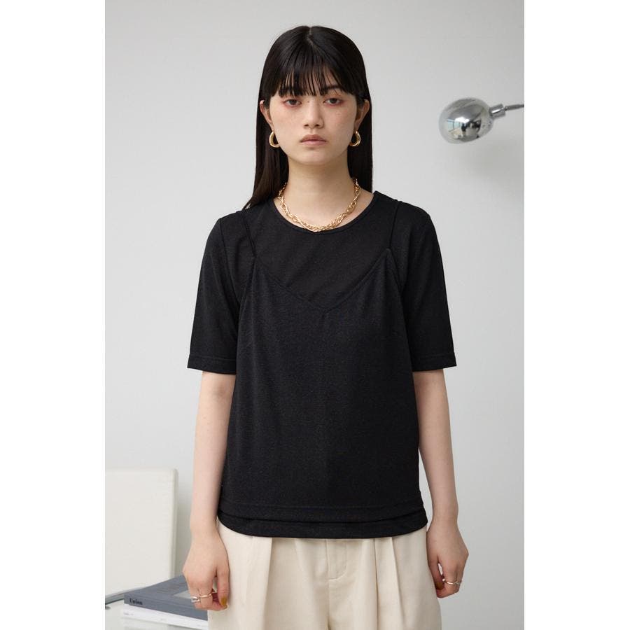 ■商品(デザイン)ポイント :トレンドのシアー×ラメ素材が可愛い、着回し抜群のレイヤードトップスです。
